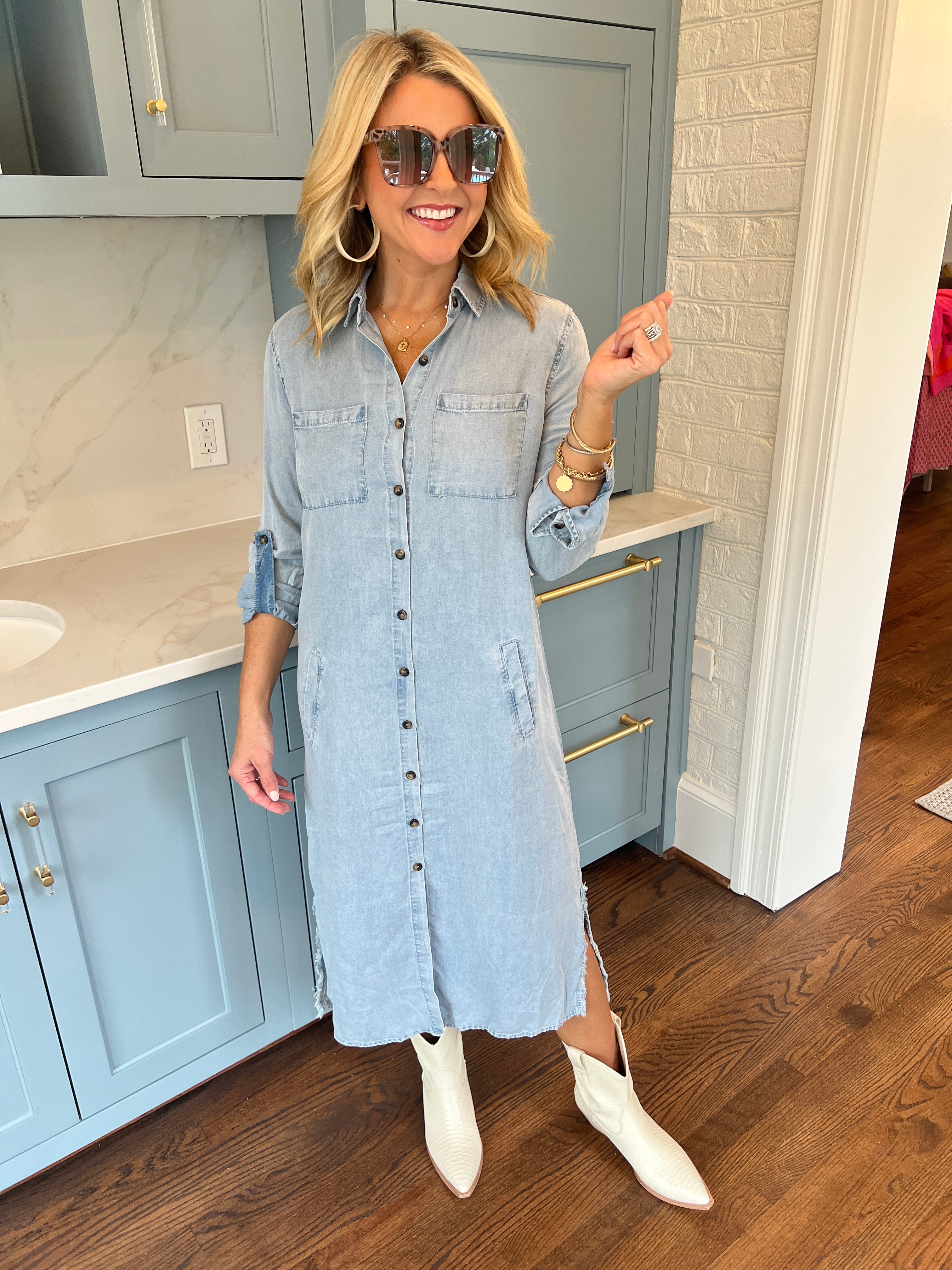 Frayed Tencel Denim Shirt Midi Dress