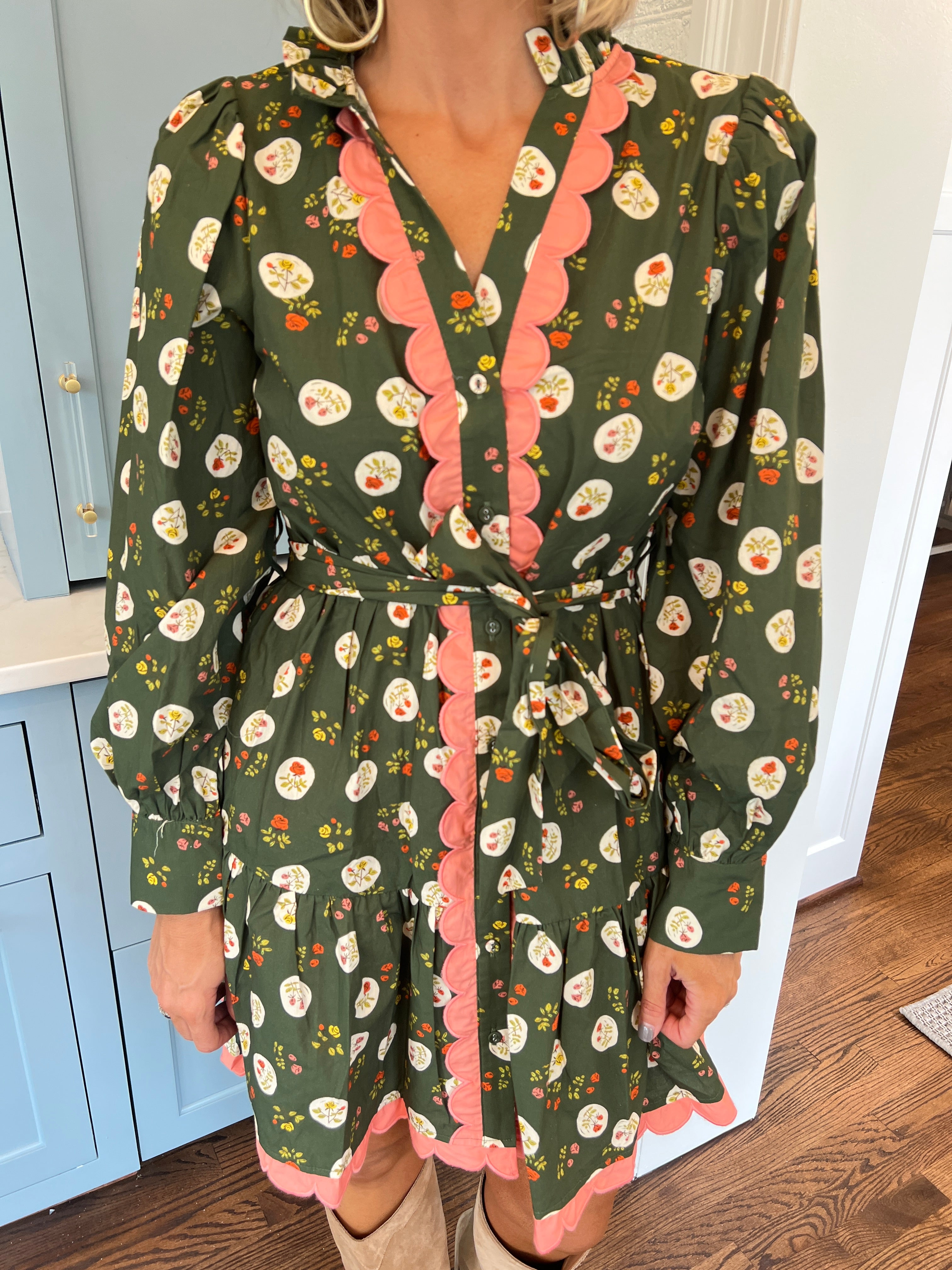 Scallop Edge Detail Button Down Floral Dress