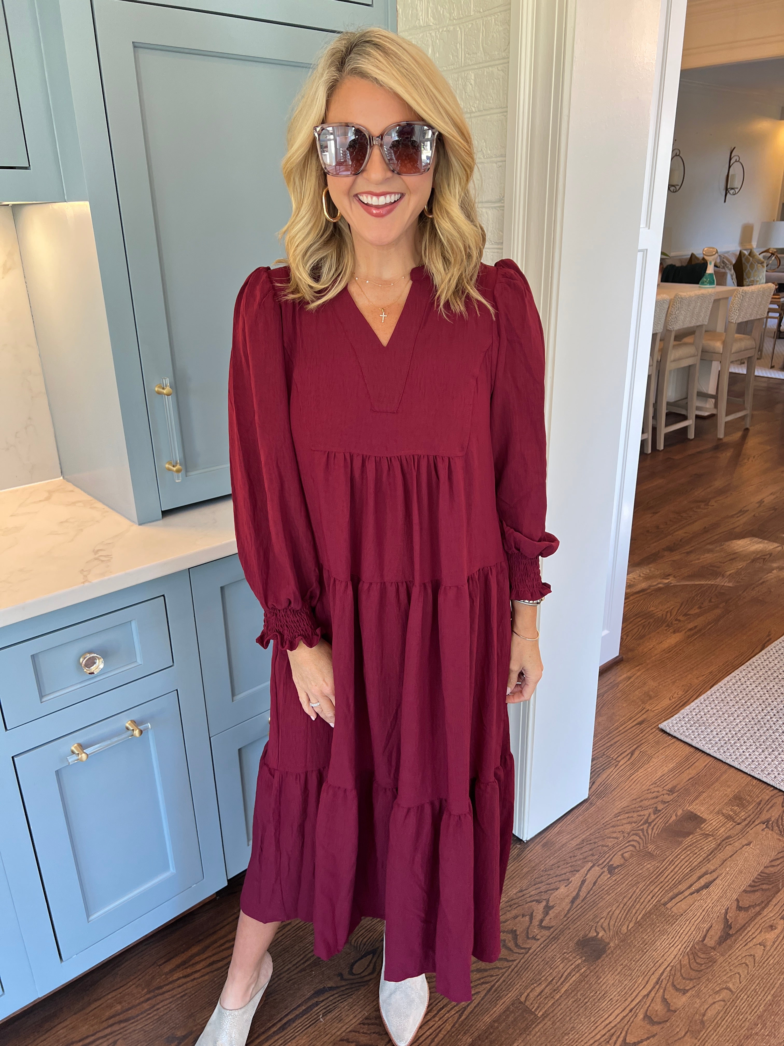 Tiered Midi Dress with Smocked Cuffs