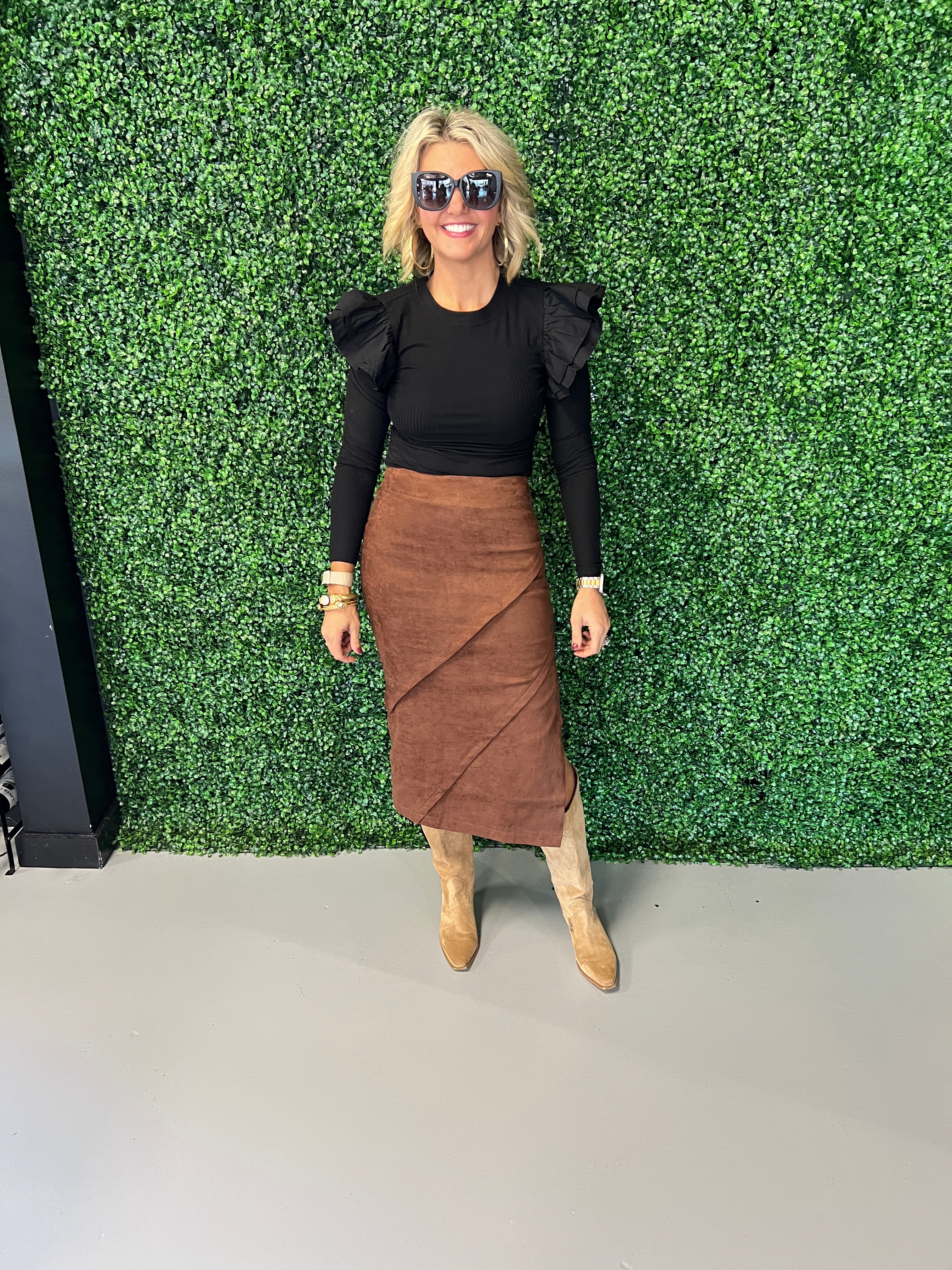 Elevate your wardrobe with this Long Suede Skirt, designed to blend timeless style with luxurious texture. Its smooth suede fabric offers a soft touch and flattering drape, creating an effortlessly chic silhouette. Perfect for both casual outings and refined occasions, this skirt pairs seamlessly with a variety of tops and shoes to enhance your look. Embrace comfort and sophistication in one versatile piece that adds a touch of elegance to any ensemble.