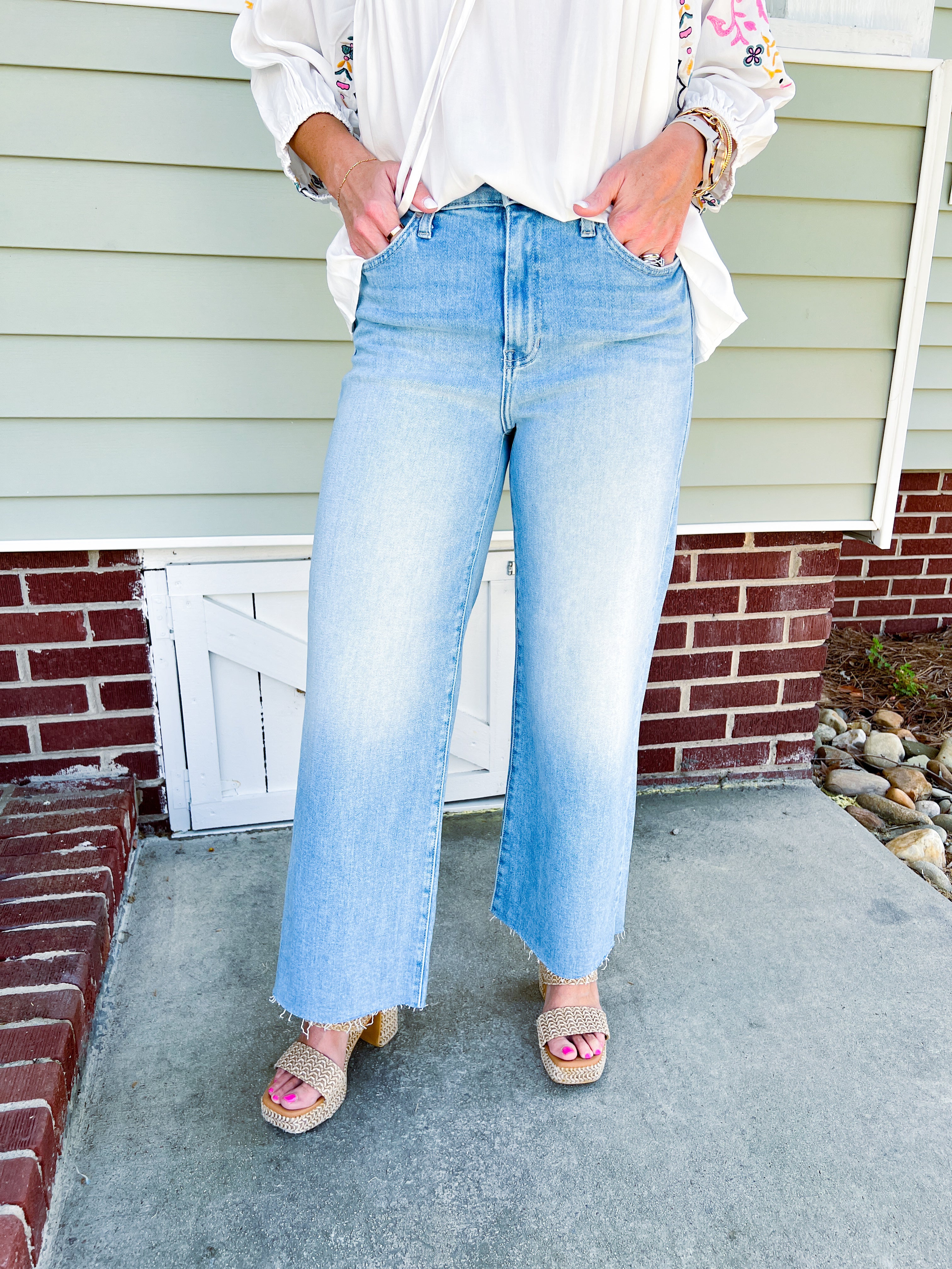 Unleash your fashion potential with our Scissor Cut Wide Leg Denim! Its unique design brings a modern twist to the classic denim look. The wide leg cut offers a comfortable and flattering fit, while the scissor cut adds a touch of edginess. Elevate your wardrobe and make a statement with these must-have jeans.