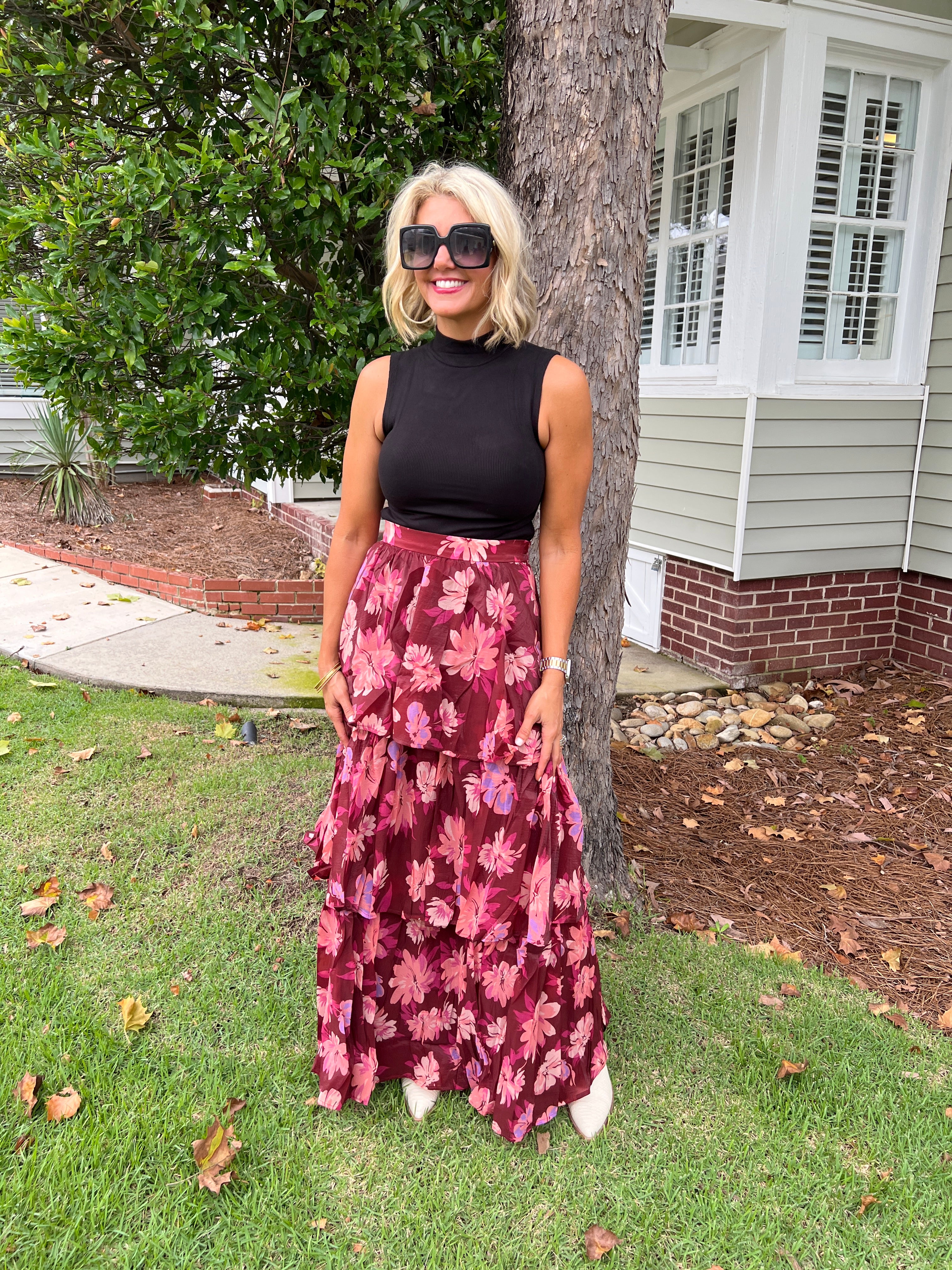 Elevate your wardrobe with this Tiered Maxi Skirt, designed for effortless style and comfort. Its layered silhouette creates graceful movement, perfect for both casual outings and special occasions. The flowing fabric drapes beautifully, offering a flattering fit that enhances your natural shape. Embrace versatile elegance that transitions seamlessly from day to night.