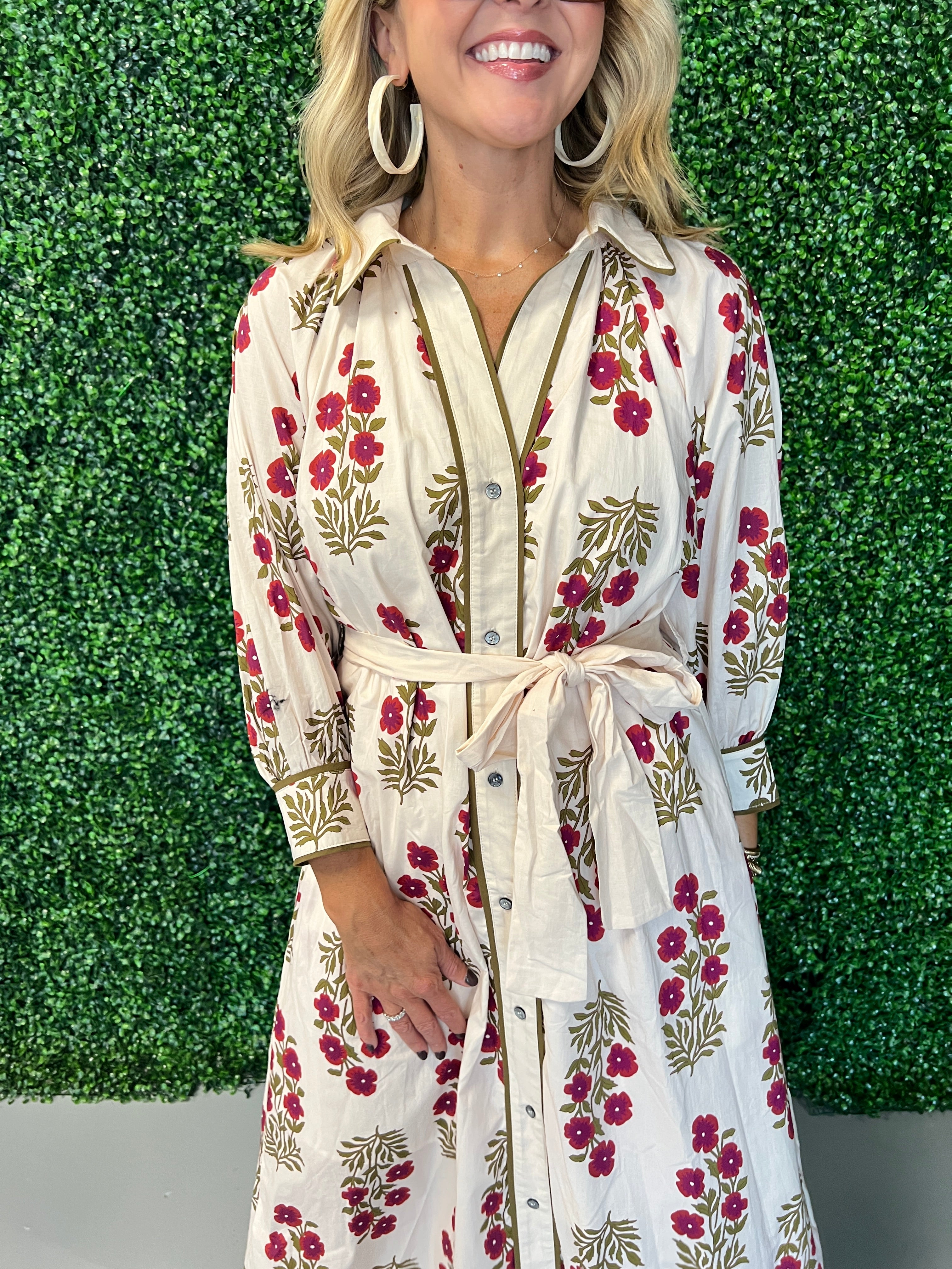 Embrace effortless elegance with the Floral Button-Front Maxi Dress with Tie. Featuring a delicate floral pattern and a flattering button-front design, this dress offers both style and comfort. The adjustable tie at the waist enhances your silhouette while adding a charming touch. Perfect for casual outings or special occasions, it’s a versatile wardrobe staple that combines feminine detail with easy wearability.