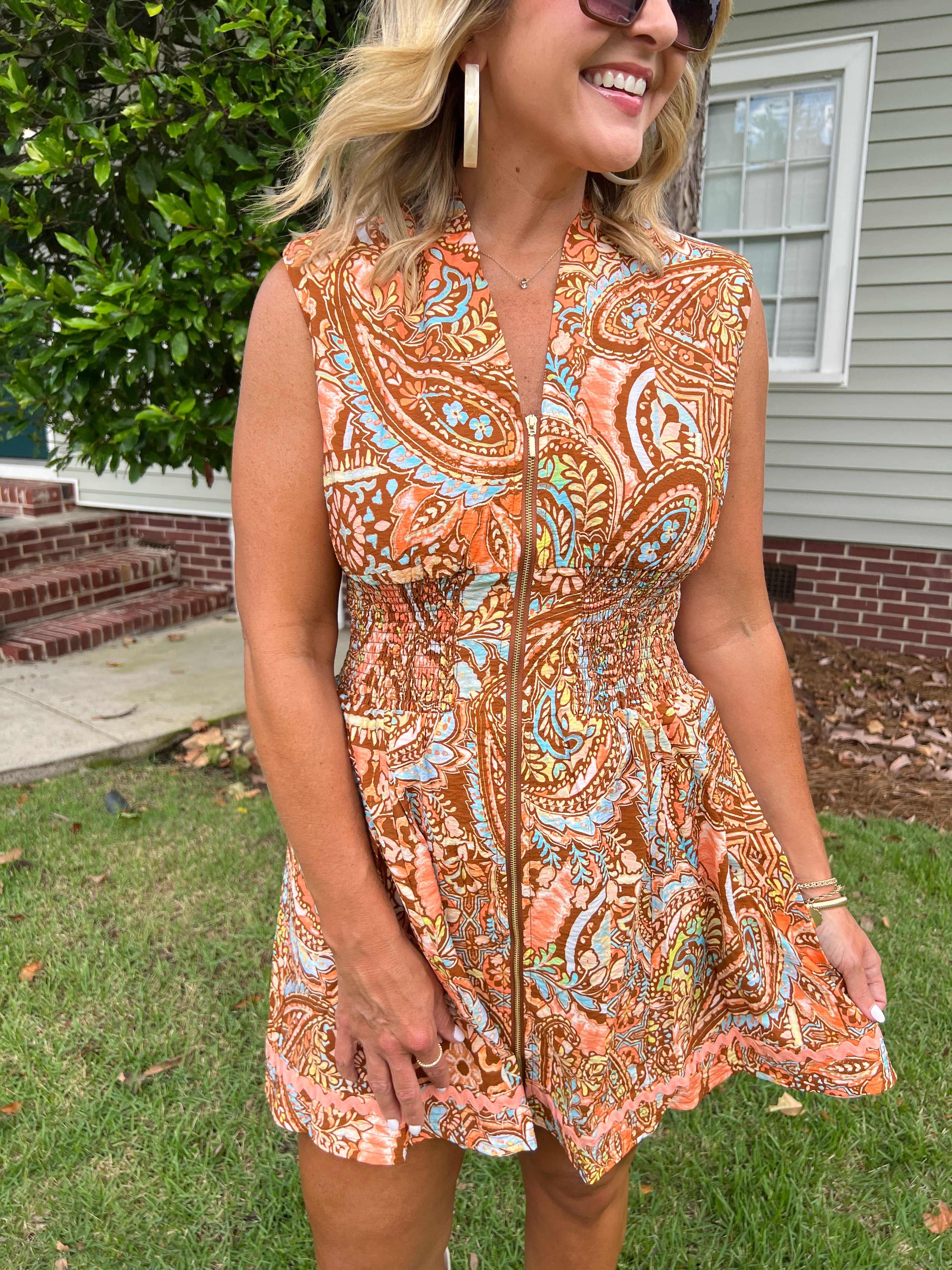 Front Zip Closure with Decorative Trim Dress