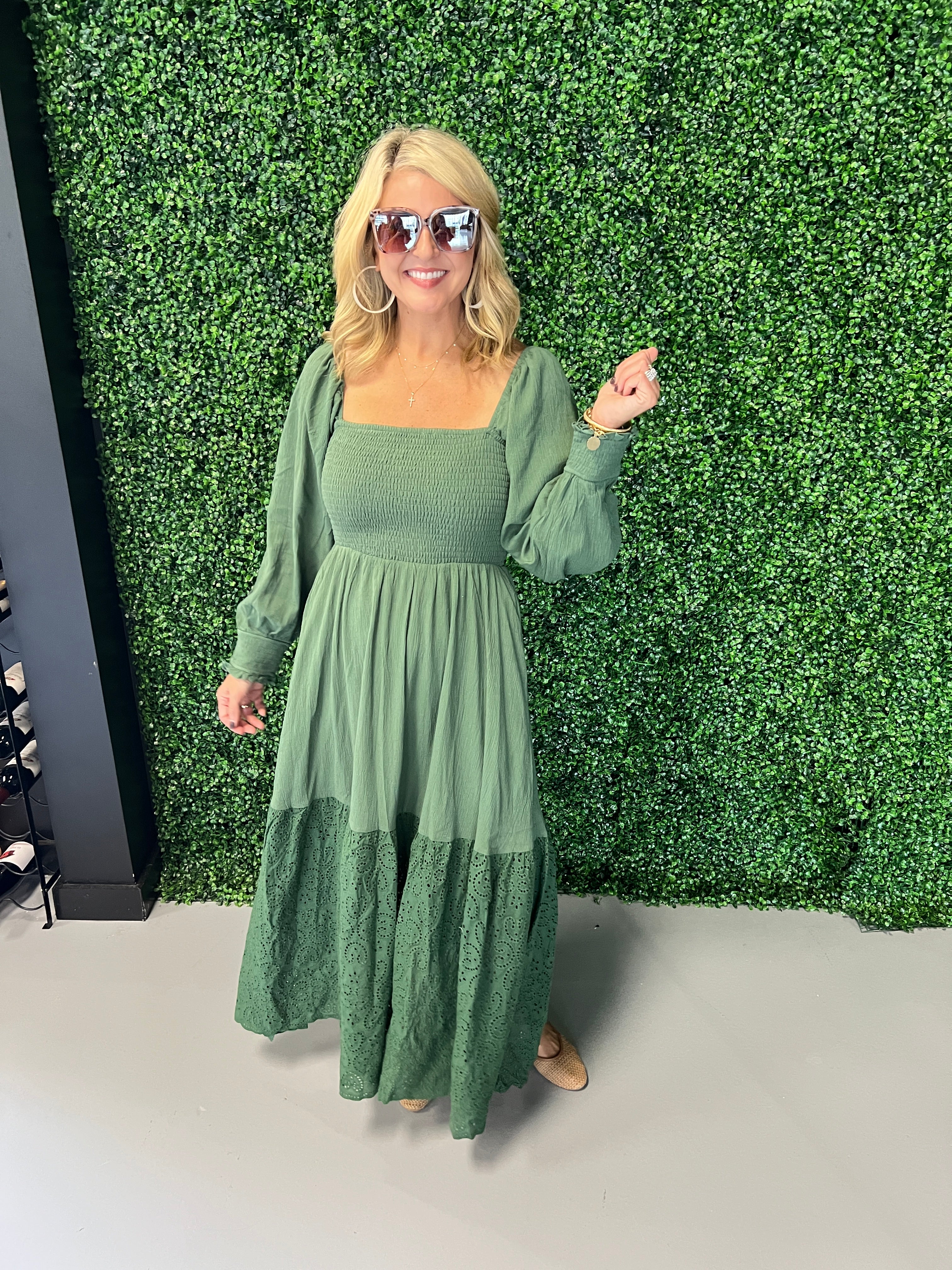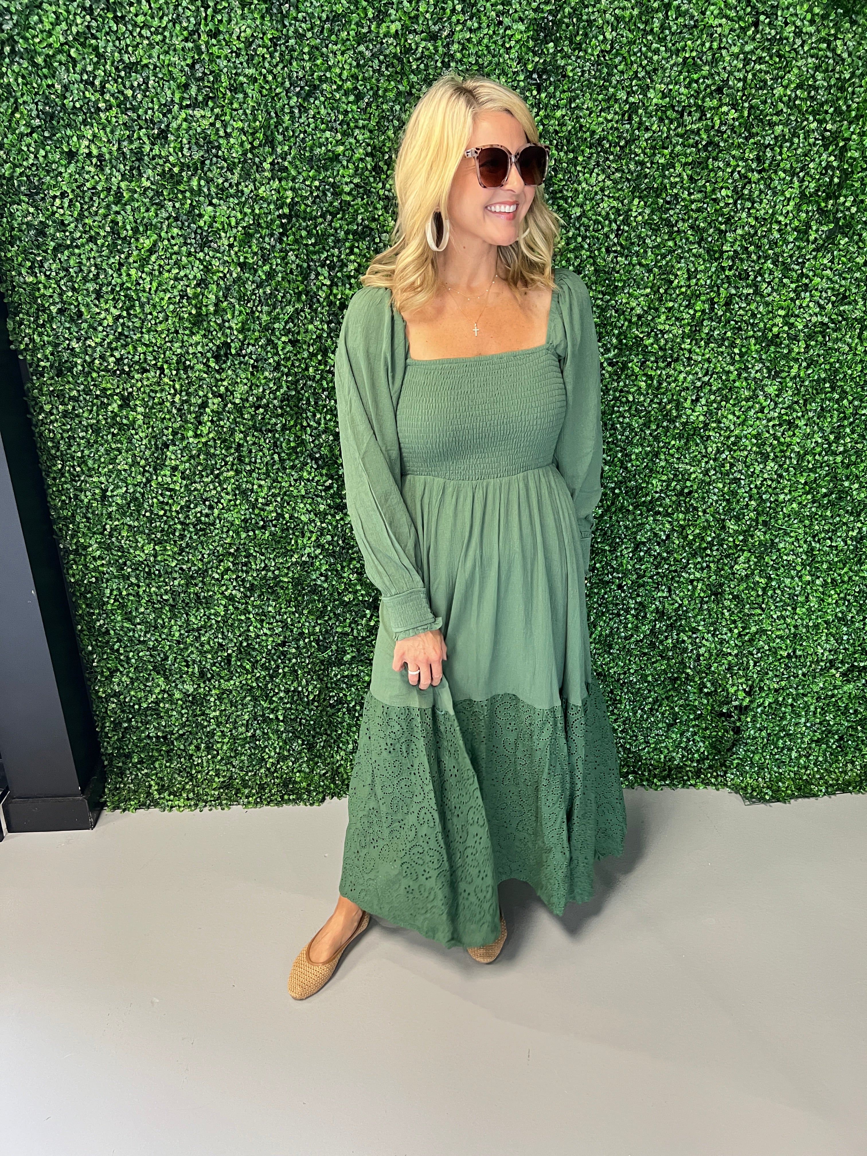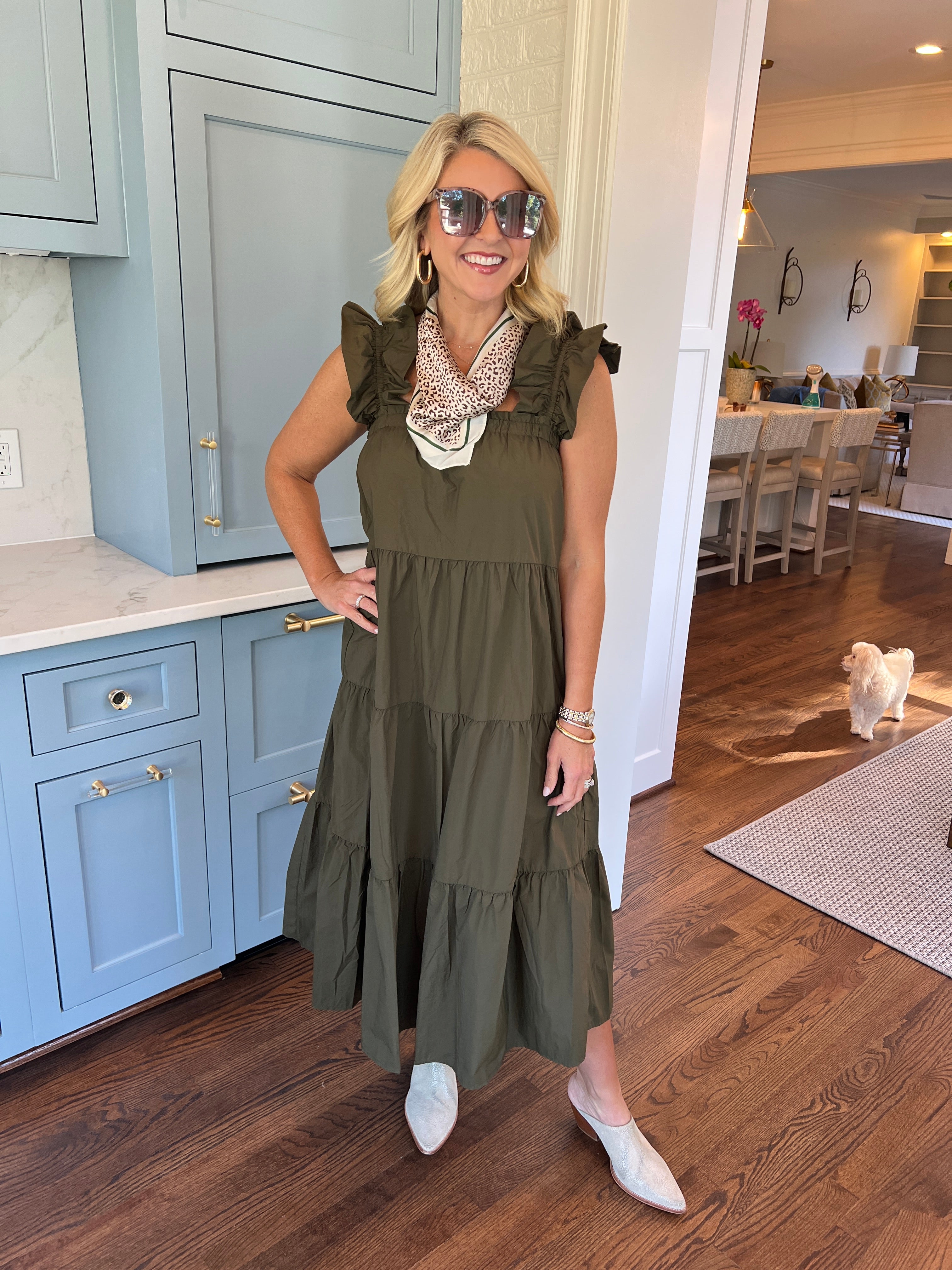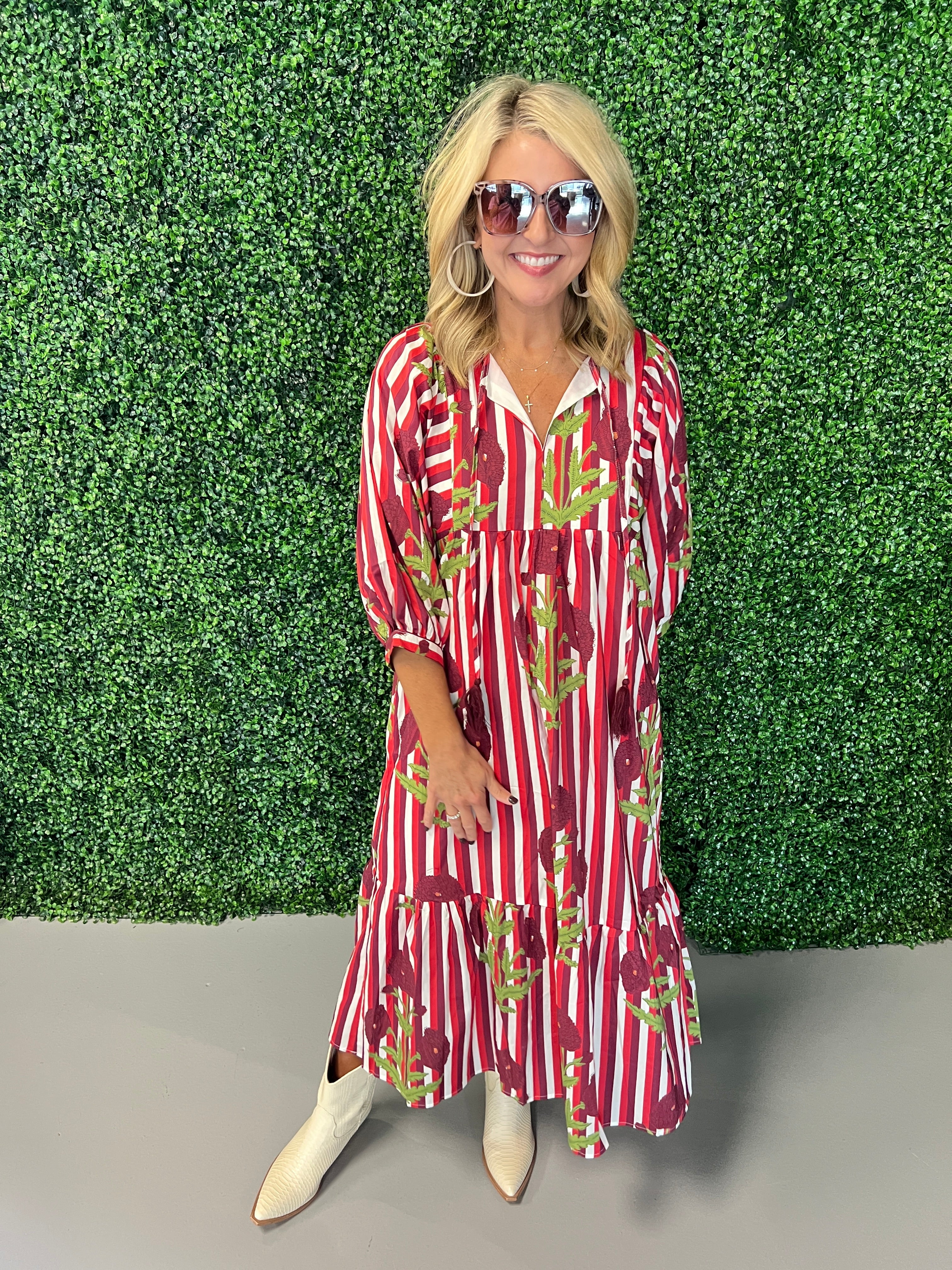 Brown Flower Patch Border Print V-Neck Midi Dress