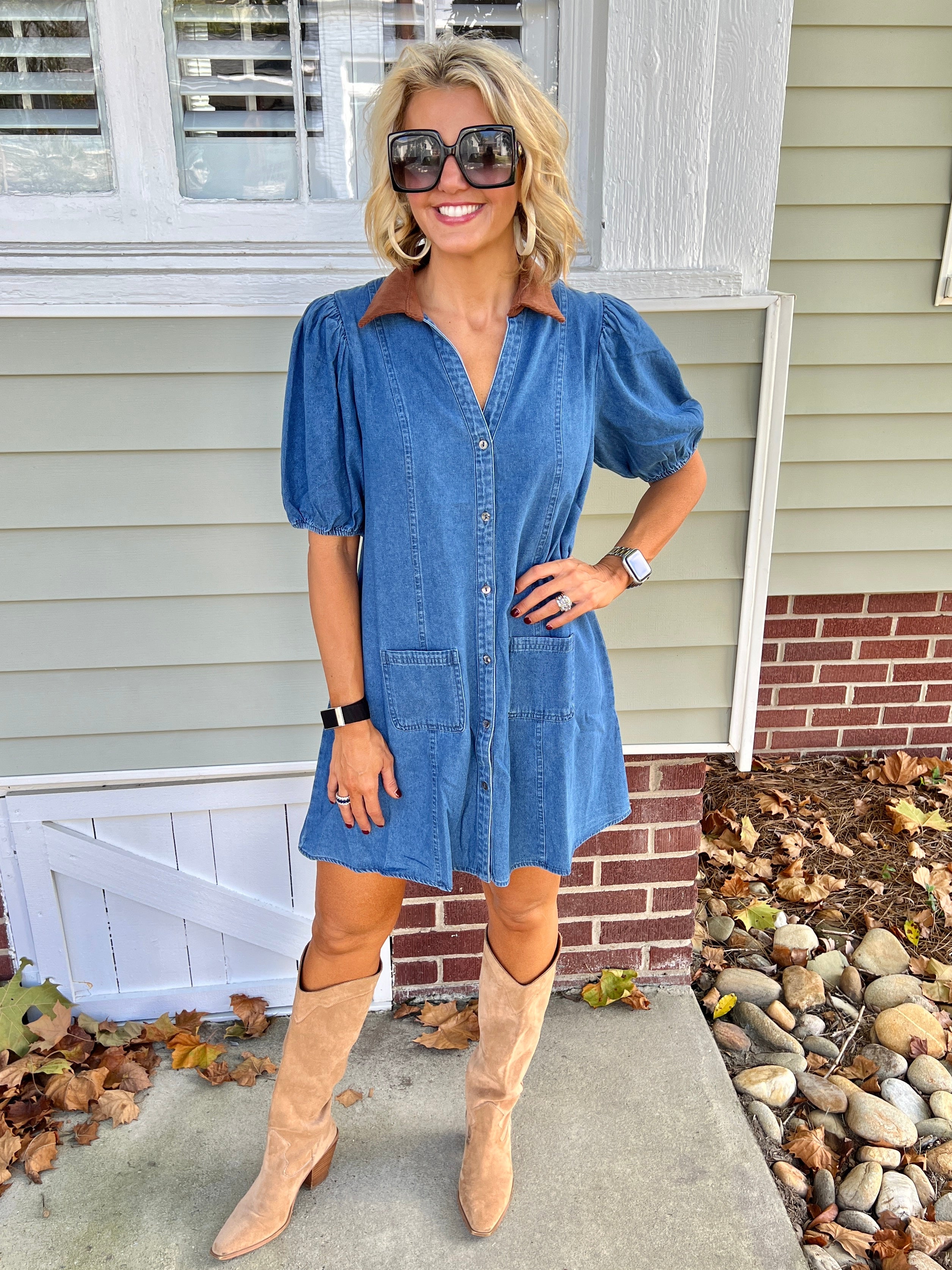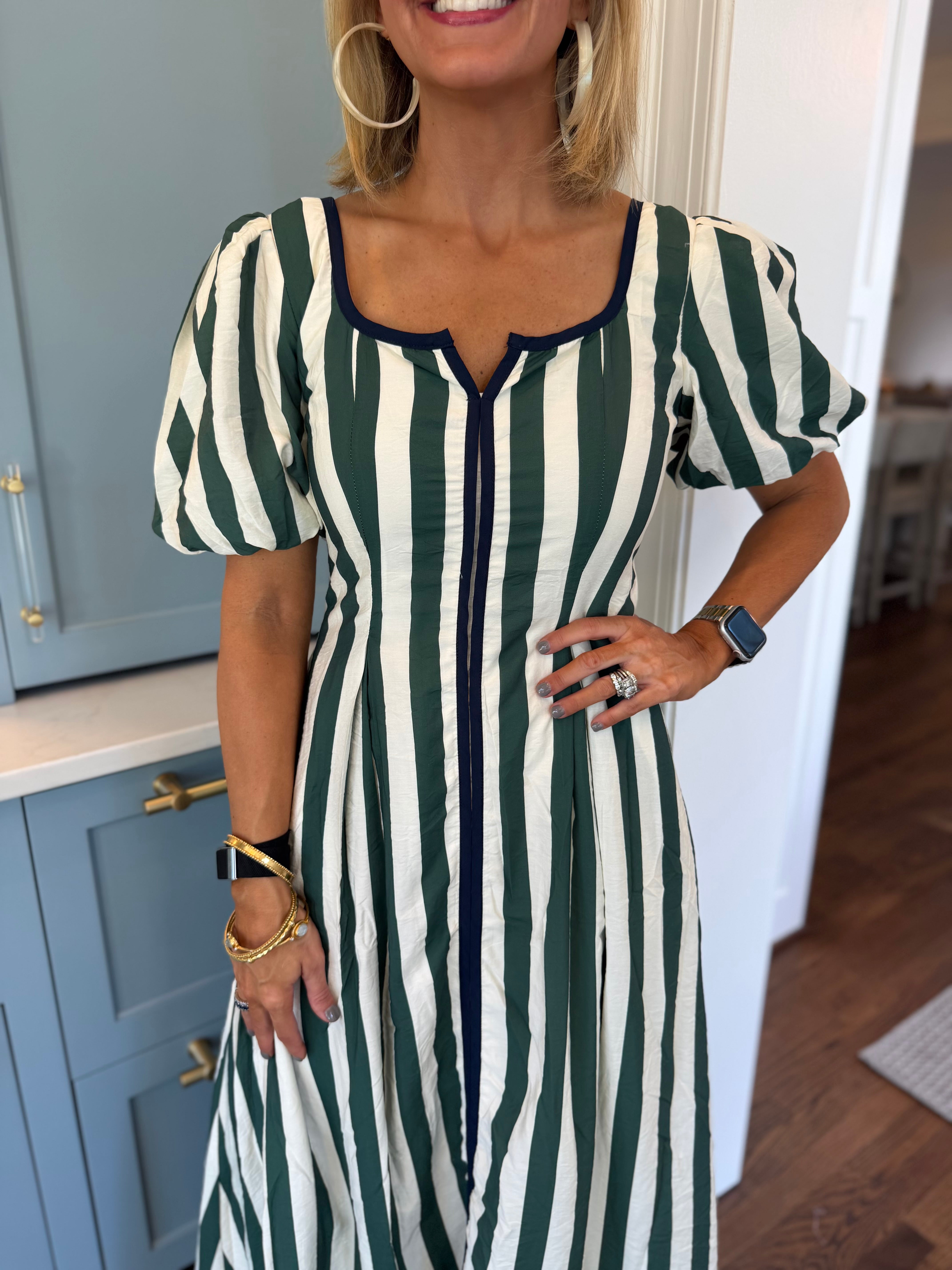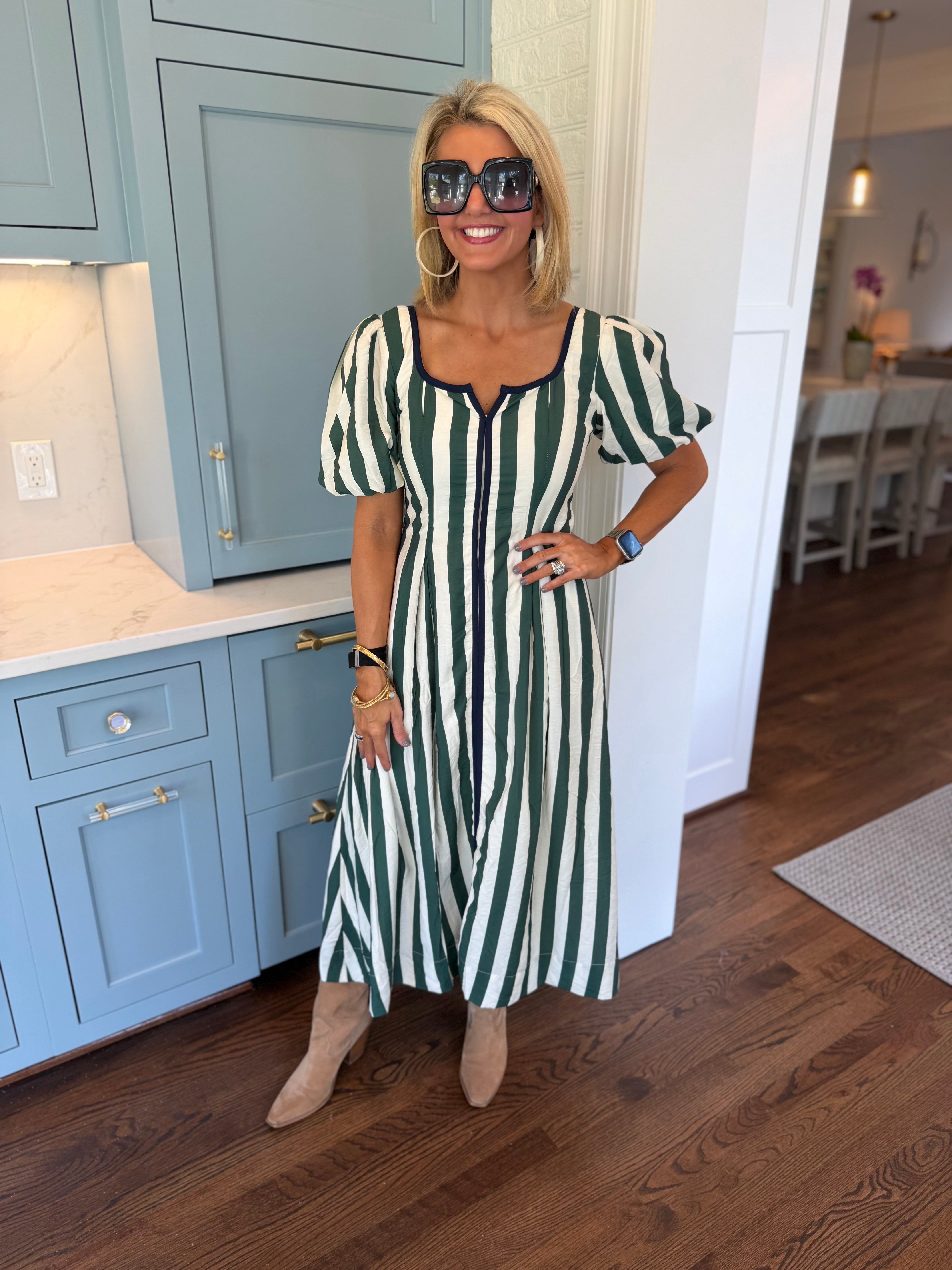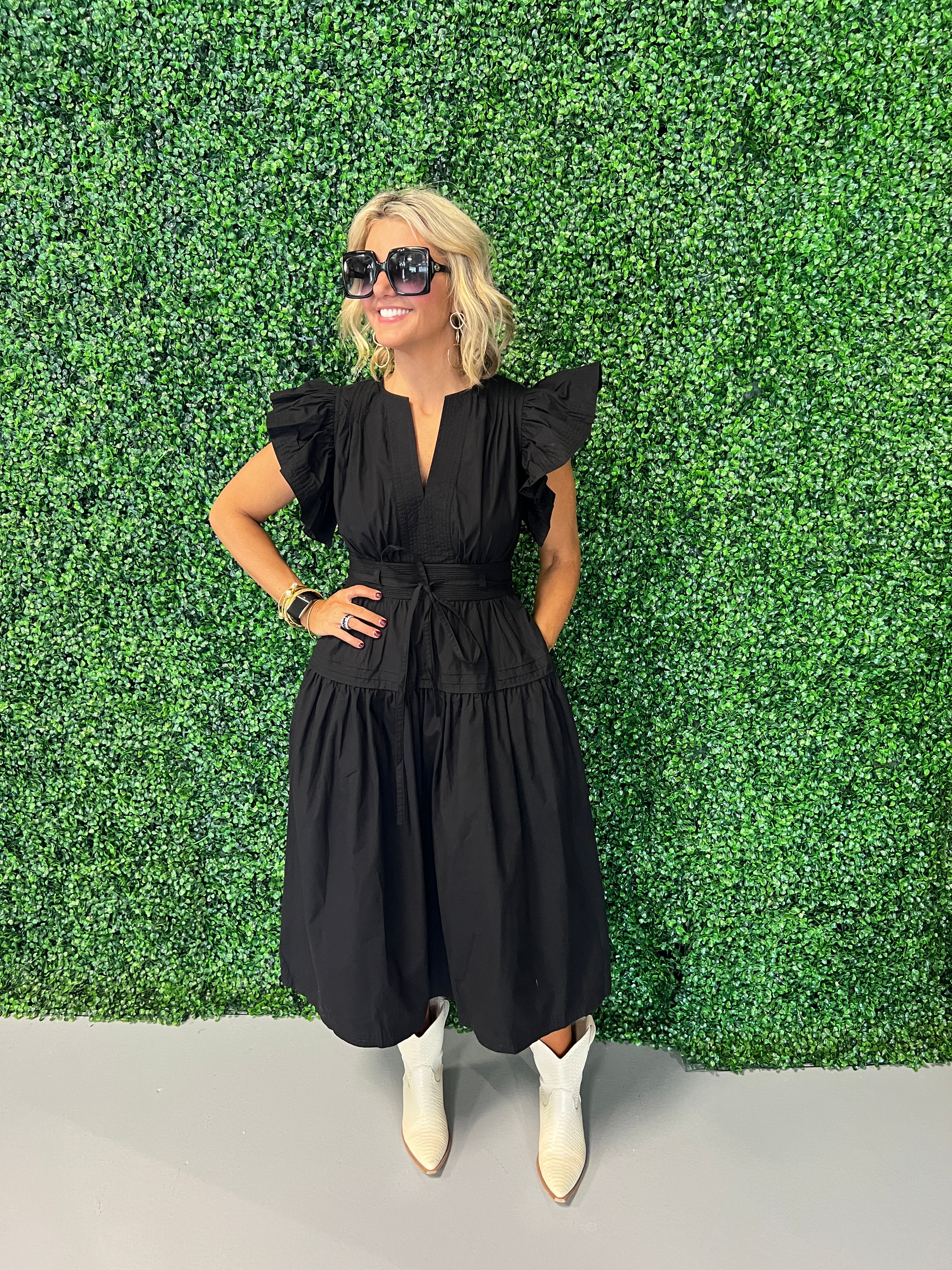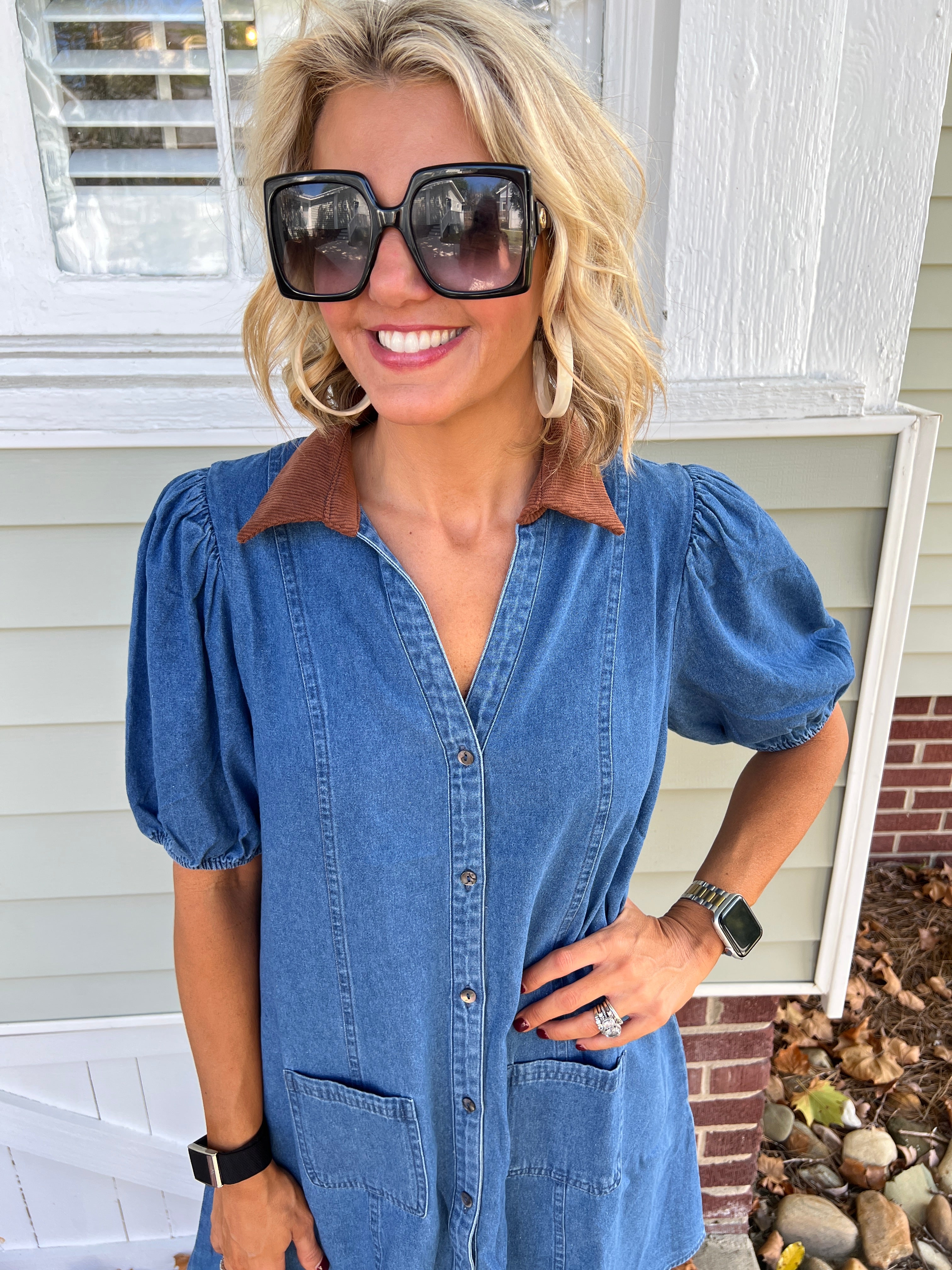 Brown Flower Patch Border Print V-Neck Midi Dress