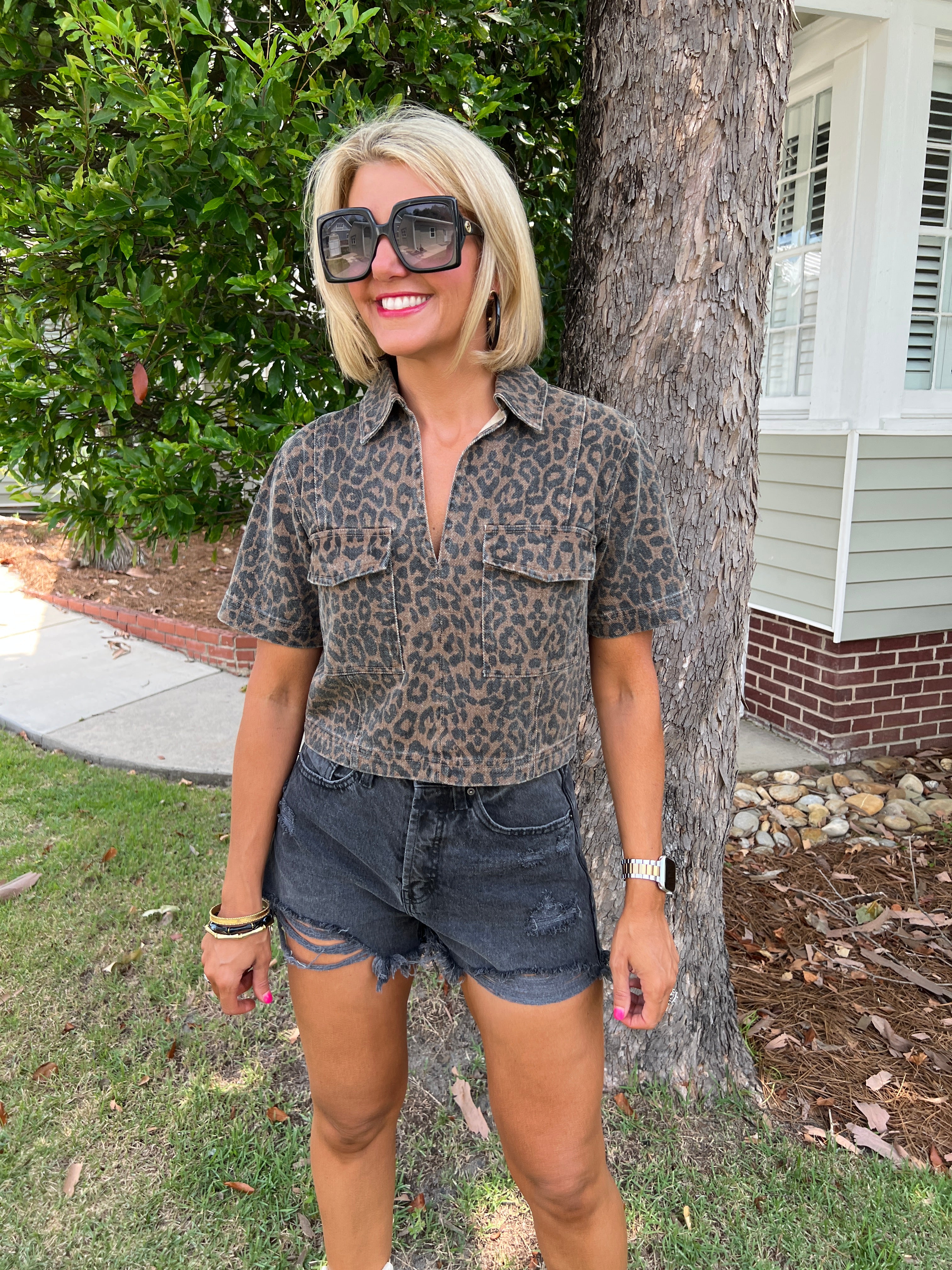 Make a bold statement with the Animal Print Skort Set, combining a flattering V-neckline top with a classic collar and handy chest patch pockets. The coordinating skort features a trendy front wrap asymmetrical overlay, stylish button accents, belt loops, and practical pockets. Sold together, this set delivers effortless, eye-catching style perfect for turning heads wherever you go.