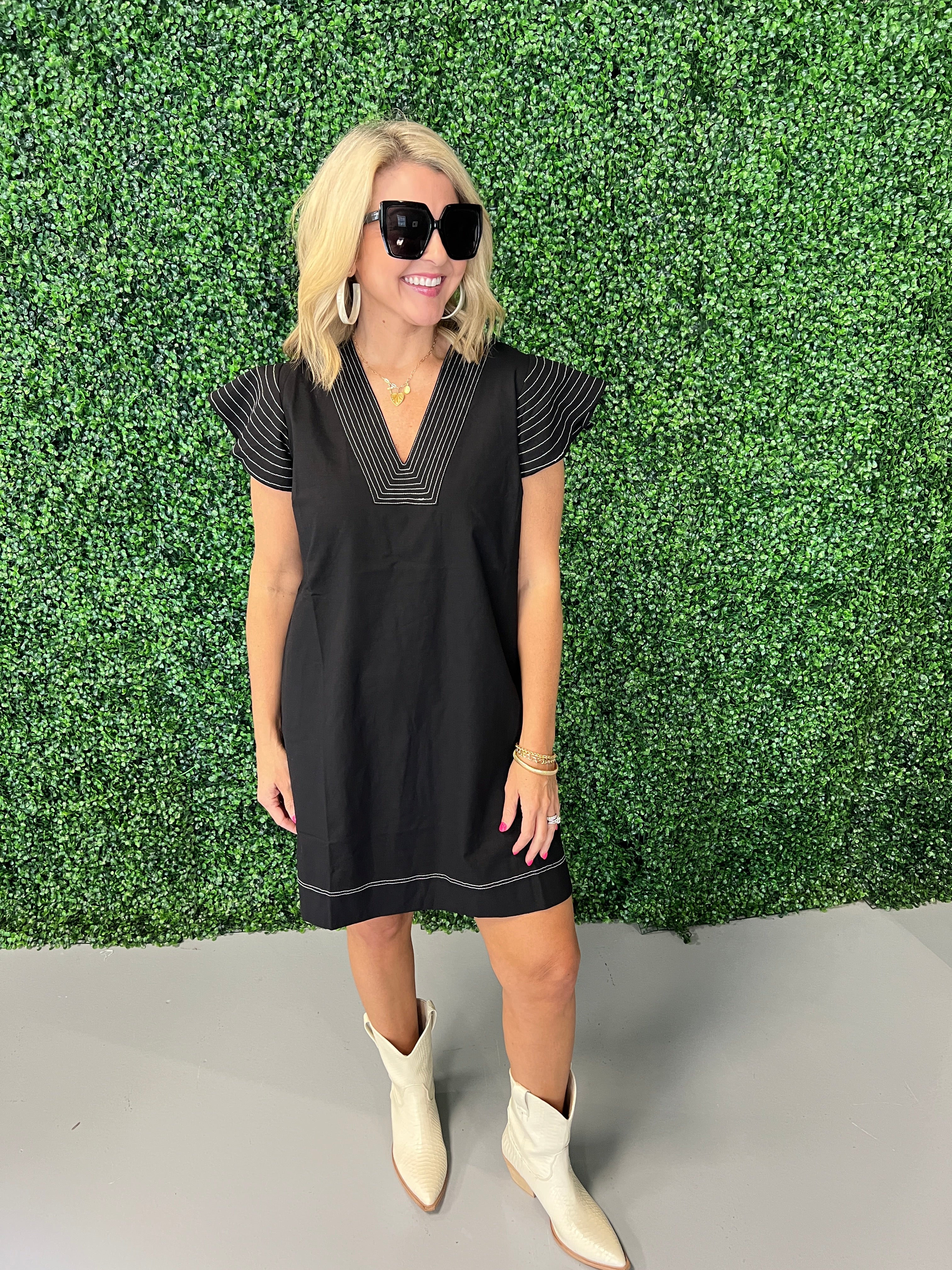 Elevate your wardrobe with this Black Flutter Sleeve Dress, designed to combine elegance and comfort effortlessly. The delicate flutter sleeves add a touch of femininity and movement, making it perfect for both casual outings and special occasions. Its classic black color ensures versatility, allowing you to dress it up with accessories or keep it simple for a chic, understated look. Experience a flattering fit that enhances your silhouette while keeping you comfortable all day or night. Make a statement with timeless style that moves with you.