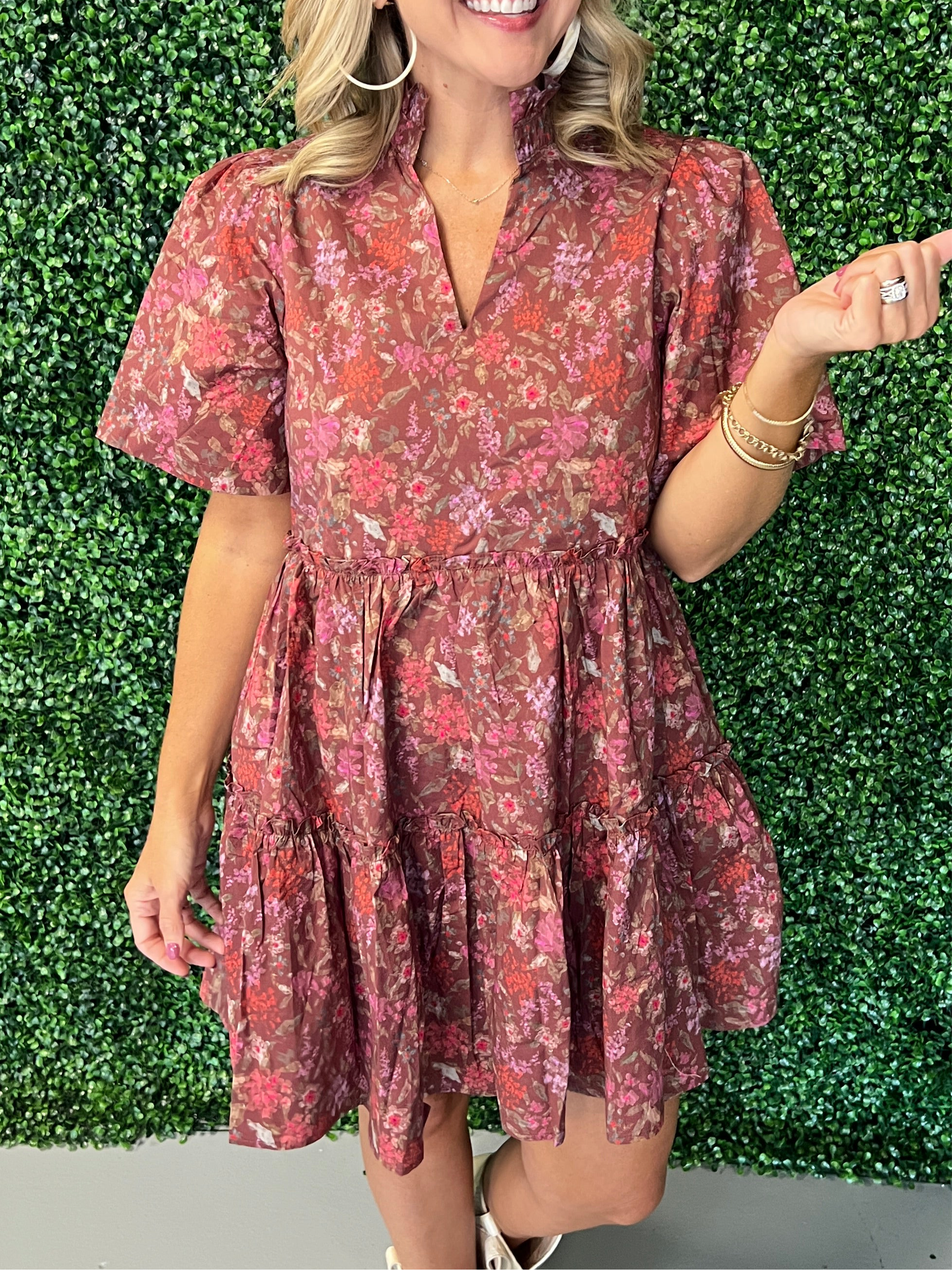 Elevate your wardrobe with this Brown Floral Tiered Dress, designed to bring effortless elegance to any occasion. Its flowing tiers create a graceful silhouette, while the warm brown tones and delicate floral pattern add a touch of natural charm. Perfect for both casual outings and special events, this dress combines comfort with style to make you feel confident and radiant all day long.