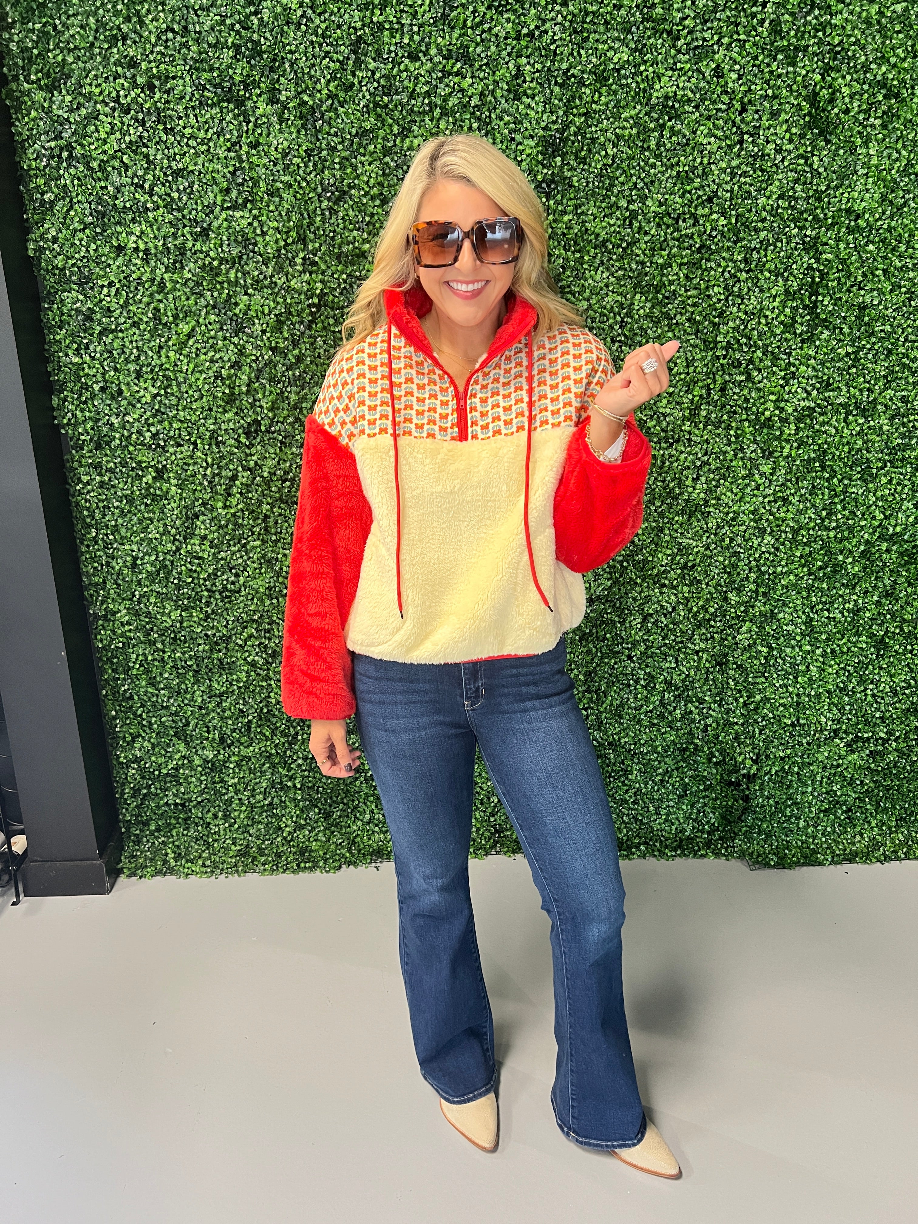 Stay cozy and stylish with the Color Blocked Fleece Top. Its soft fleece fabric provides warmth without bulk, while the bold color block design adds a modern edge to your casual wardrobe. Perfect for layering or wearing on its own, this top combines comfort and fashion effortlessly. Elevate your everyday look with a piece designed to keep you comfortable and confident all day long.