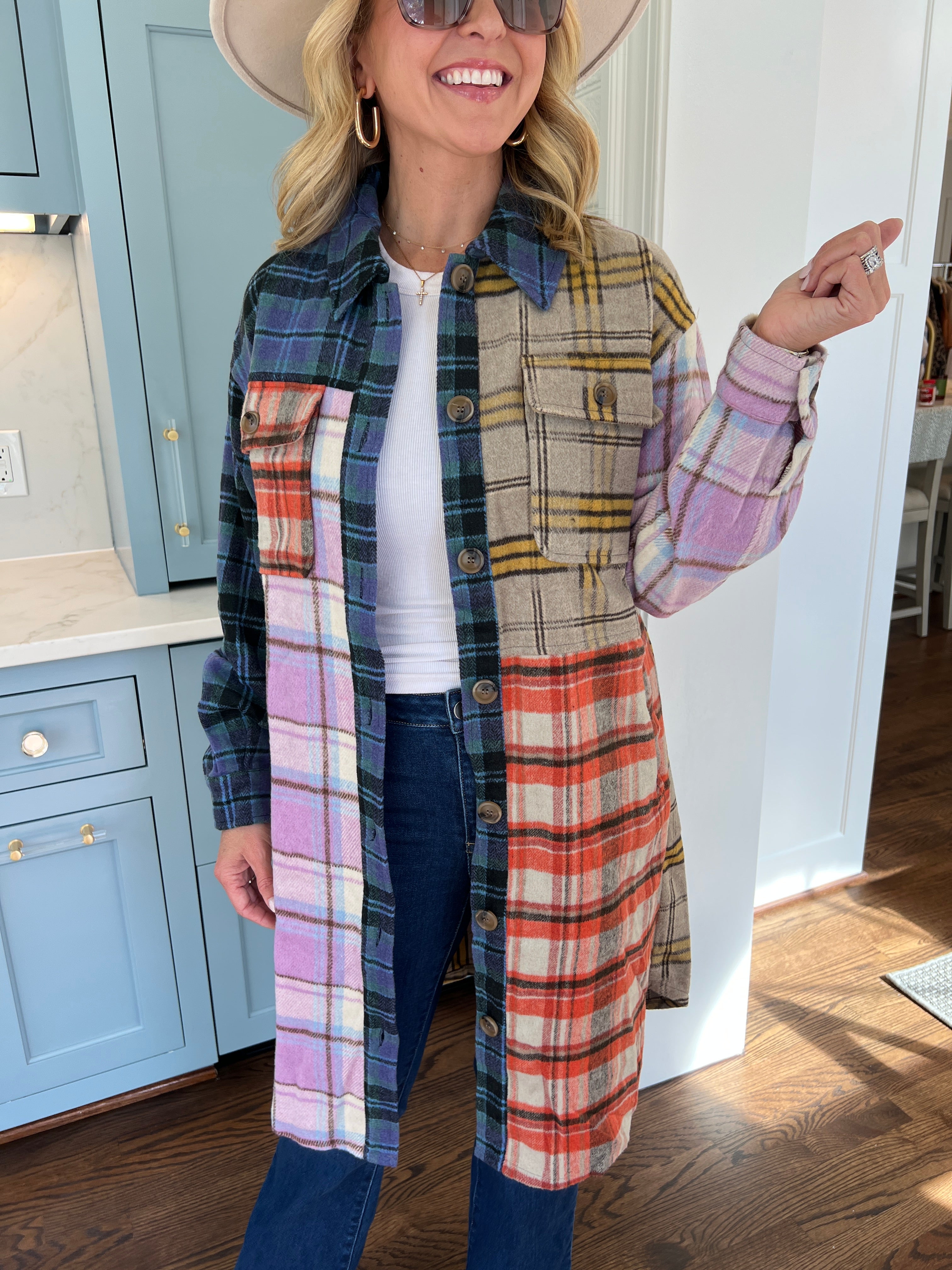 Stay stylish and cozy with the Colorblock Plaid Shacket, combining the warmth of a jacket with the comfort of a shirt. Its bold colorblock plaid design adds a trendy edge to any outfit, perfect for layering on chilly days. Crafted for both comfort and versatility, this shacket is ideal for casual outings or weekend adventures, ensuring you look effortlessly fashionable while staying warm. Elevate your wardrobe with this must-have piece that blends classic plaid with modern style.
