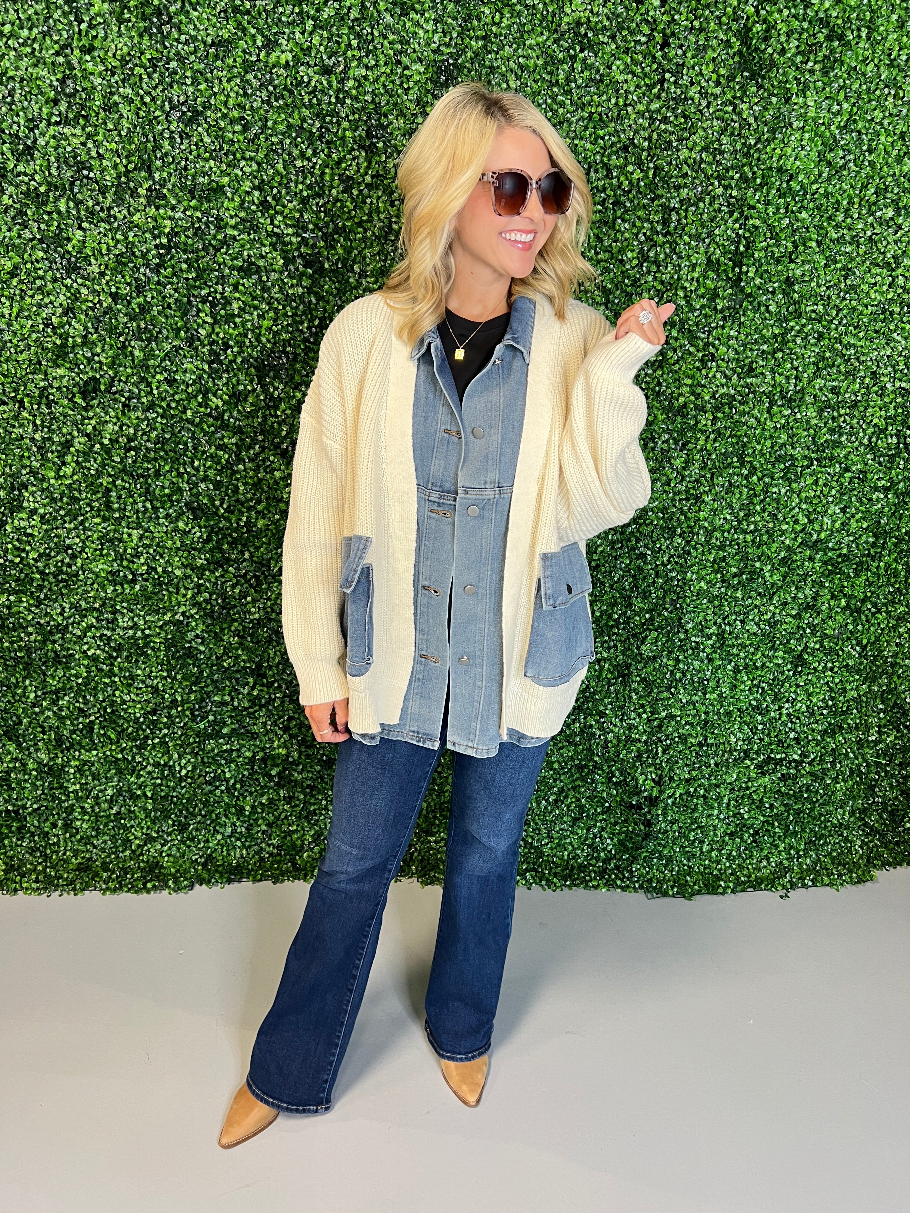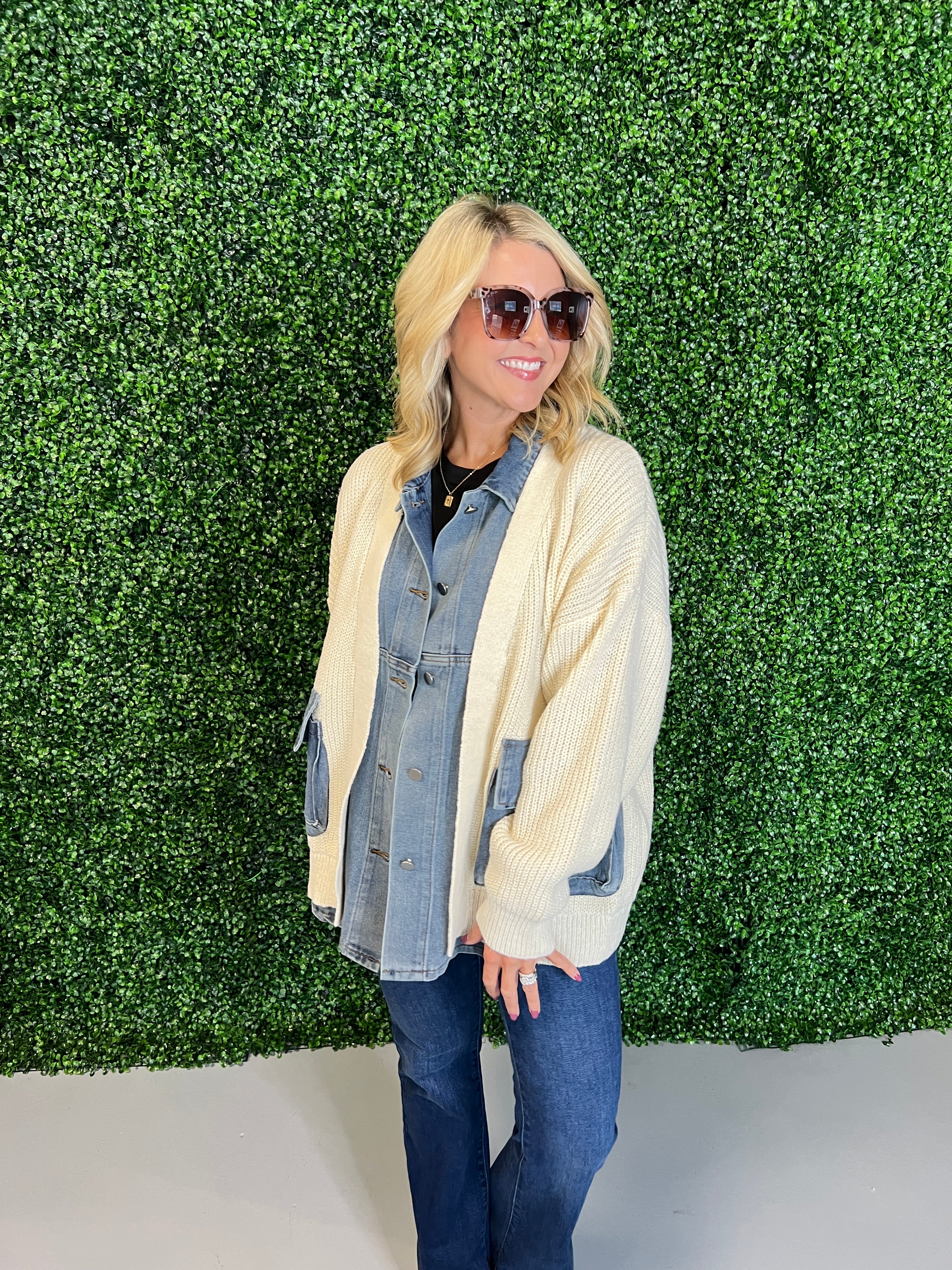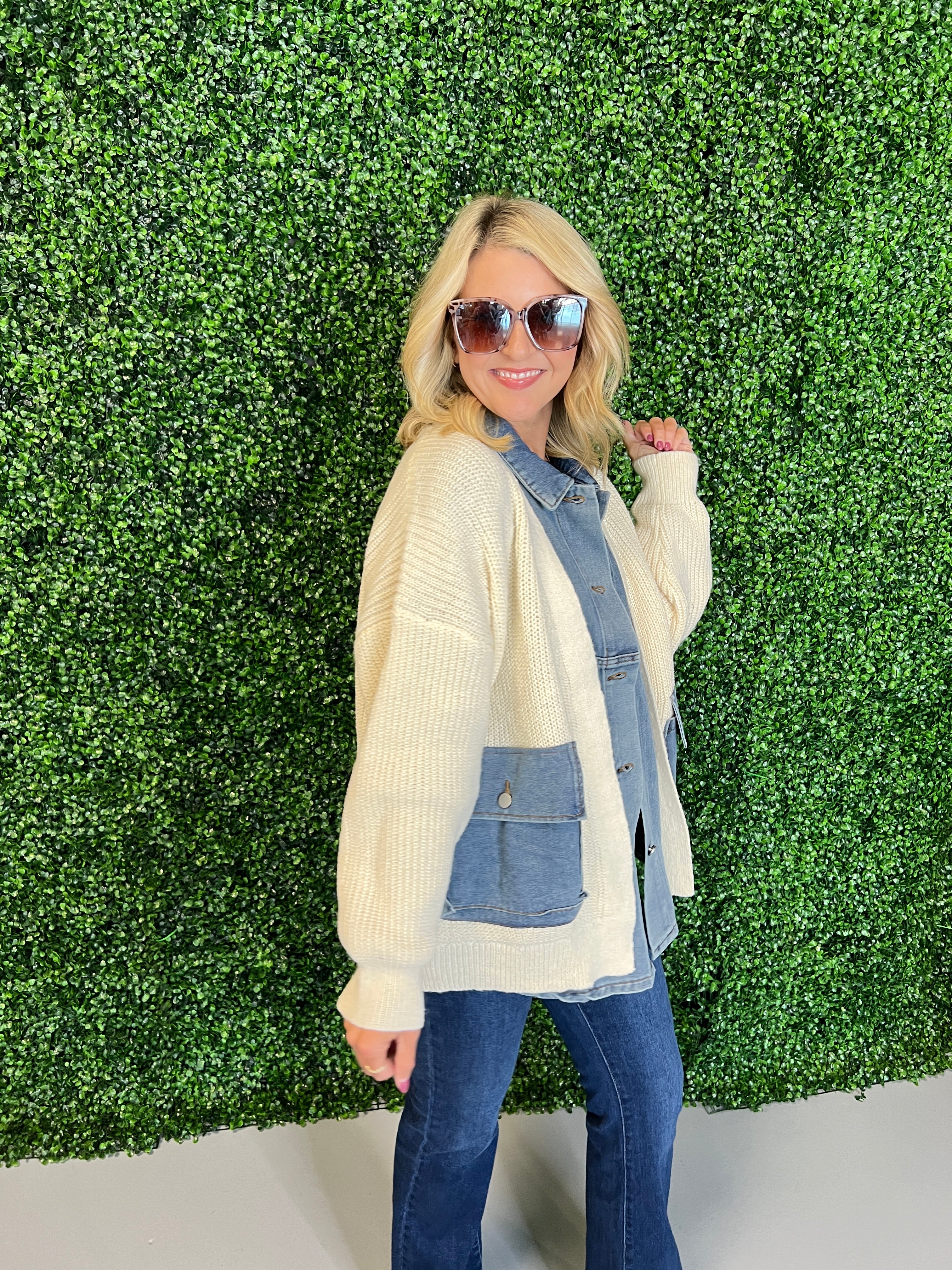 Elevate your wardrobe with the Denim Contrast Knit Jacket, blending classic denim with soft knit fabric for unmatched comfort and style. This unique jacket offers a modern twist on a timeless look, making it perfect for layering in any season. Its contrast design adds a bold edge, while the knit elements ensure flexibility and ease of movement. Ideal for casual outings or smart-casual occasions, this jacket keeps you comfortable without compromising on fashion.