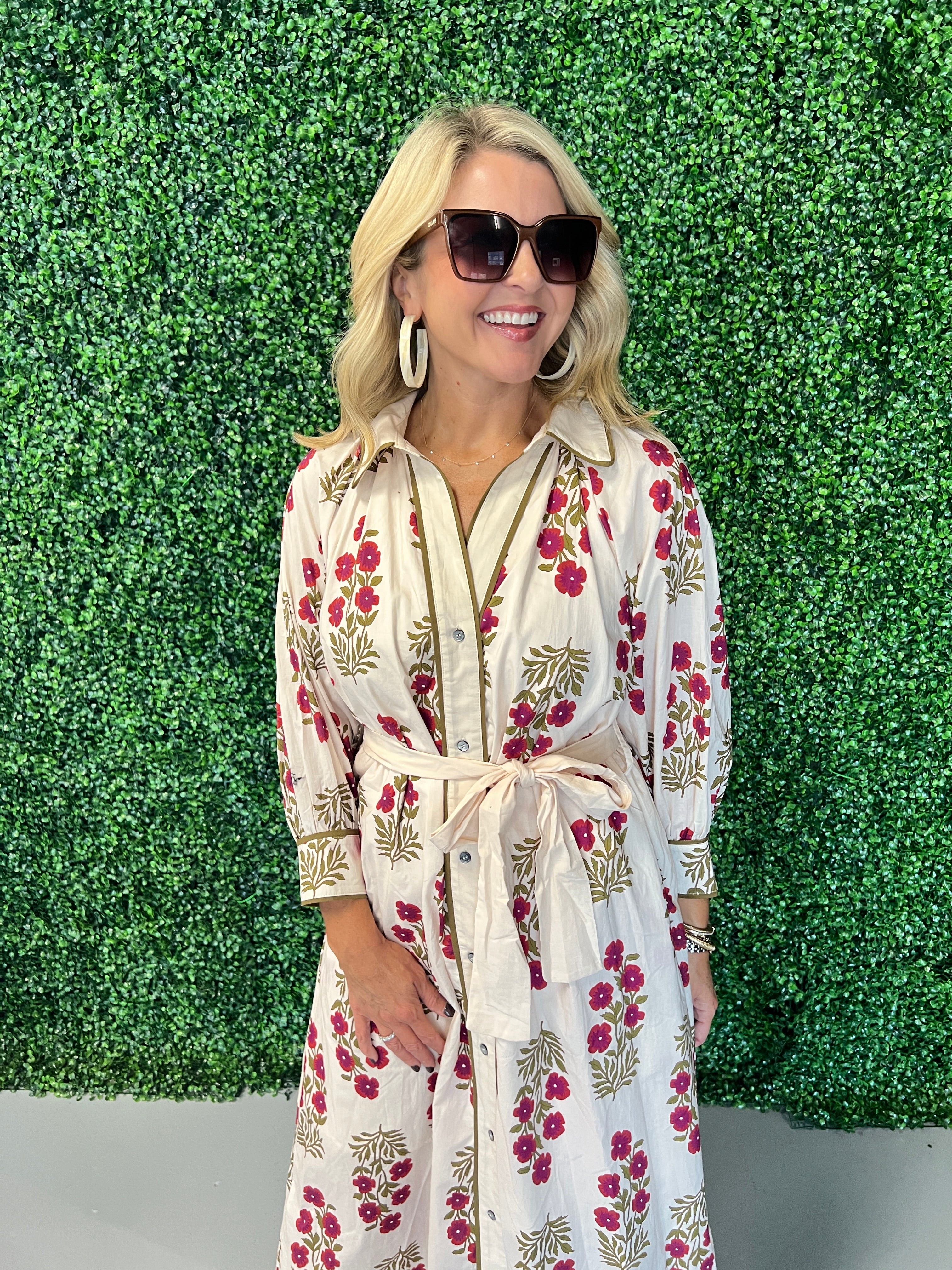 Embrace effortless elegance with the Floral Button-Front Maxi Dress with Tie. Featuring a delicate floral pattern and a flattering button-front design, this dress offers both style and comfort. The adjustable tie at the waist enhances your silhouette while adding a charming touch. Perfect for casual outings or special occasions, it’s a versatile wardrobe staple that combines feminine detail with easy wearability.