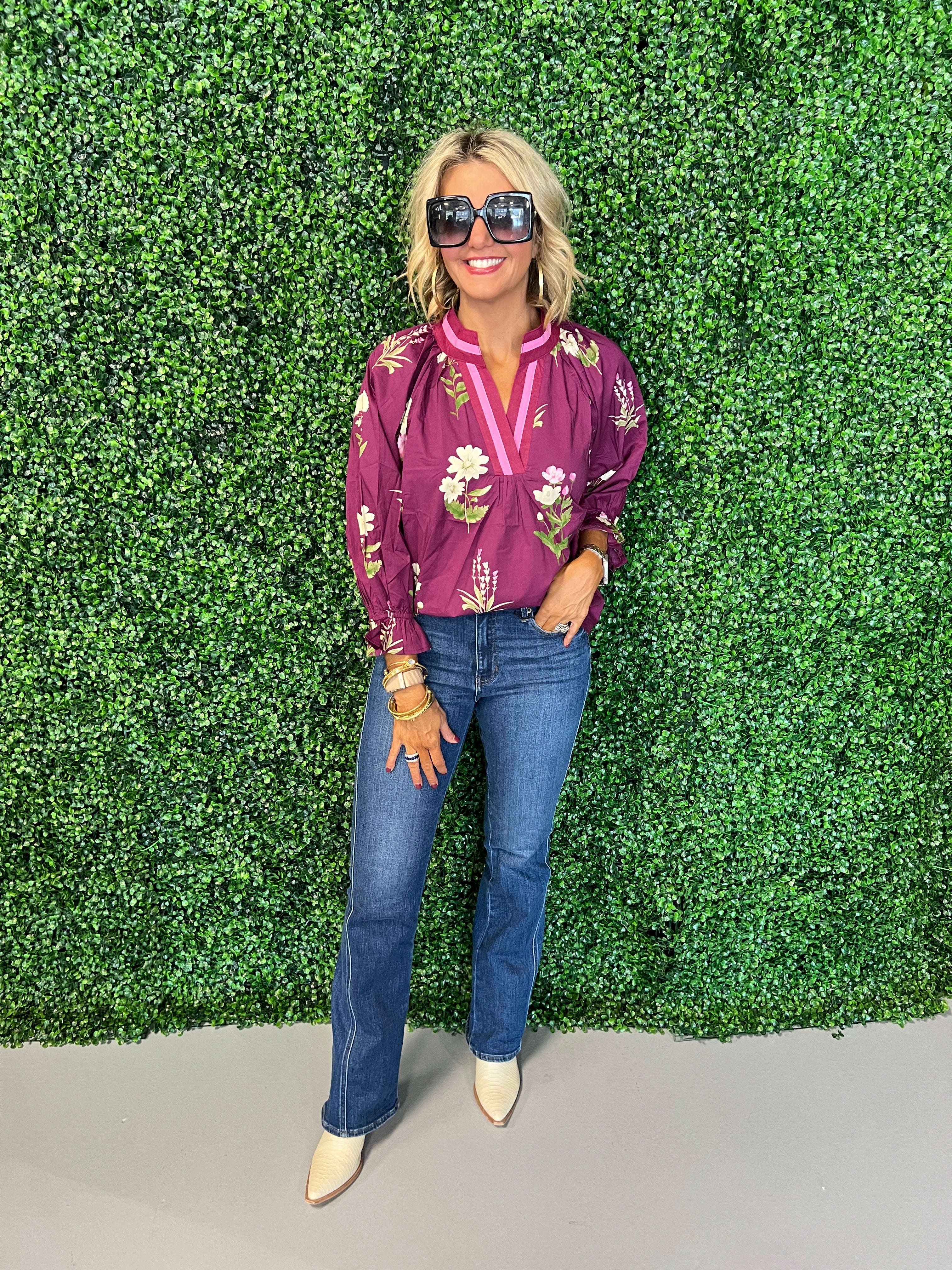 Elevate your wardrobe with the Floral Contrast Trim Blouse, designed to bring a fresh, stylish touch to any outfit. The delicate floral pattern pairs beautifully with bold contrast trims, creating a look that’s both eye-catching and elegant. Perfect for work or weekend wear, this blouse adds a refined flourish while keeping you comfortable throughout the day. Make a lasting impression with a piece that blends timeless femininity and modern details effortlessly.
