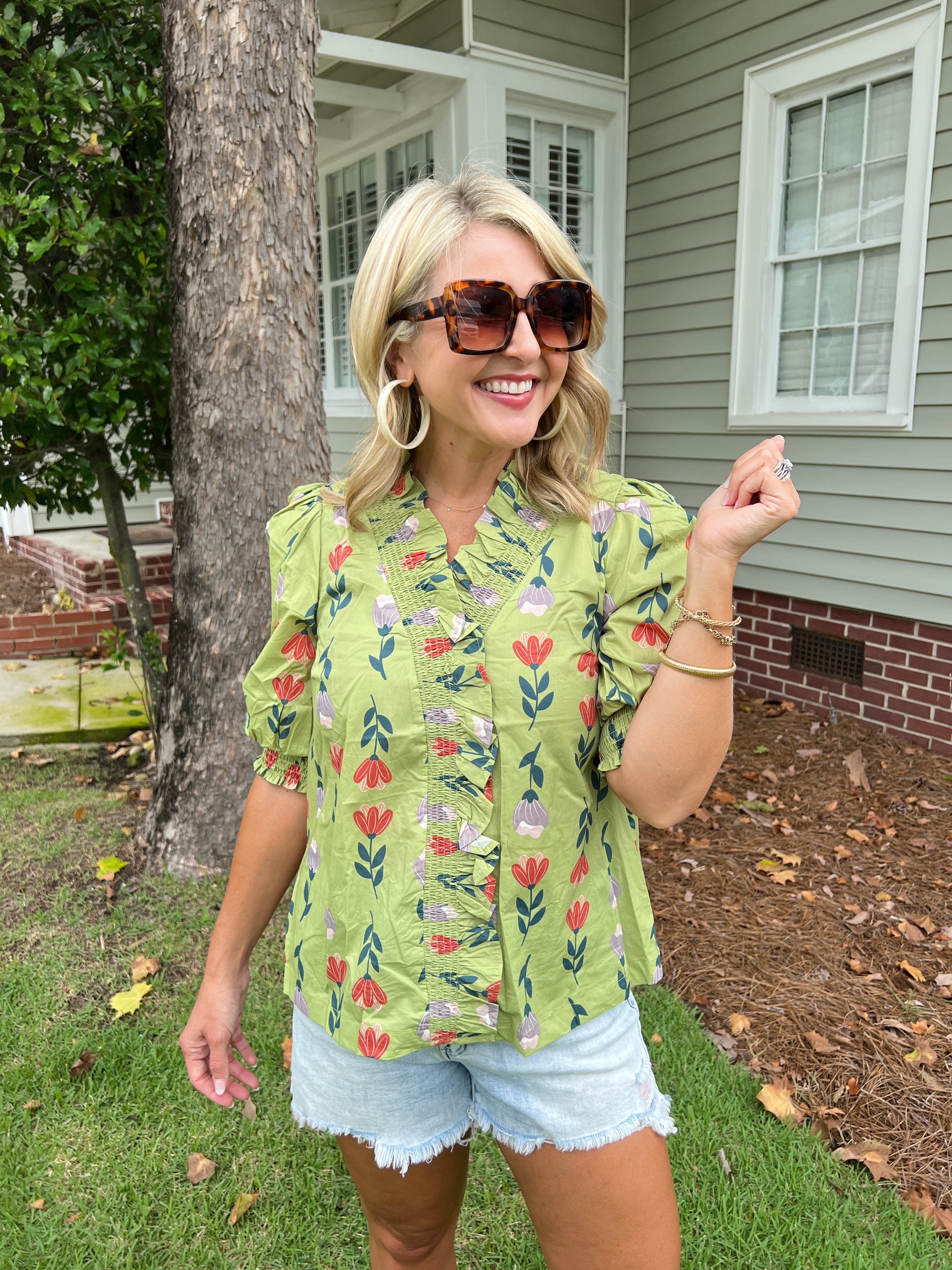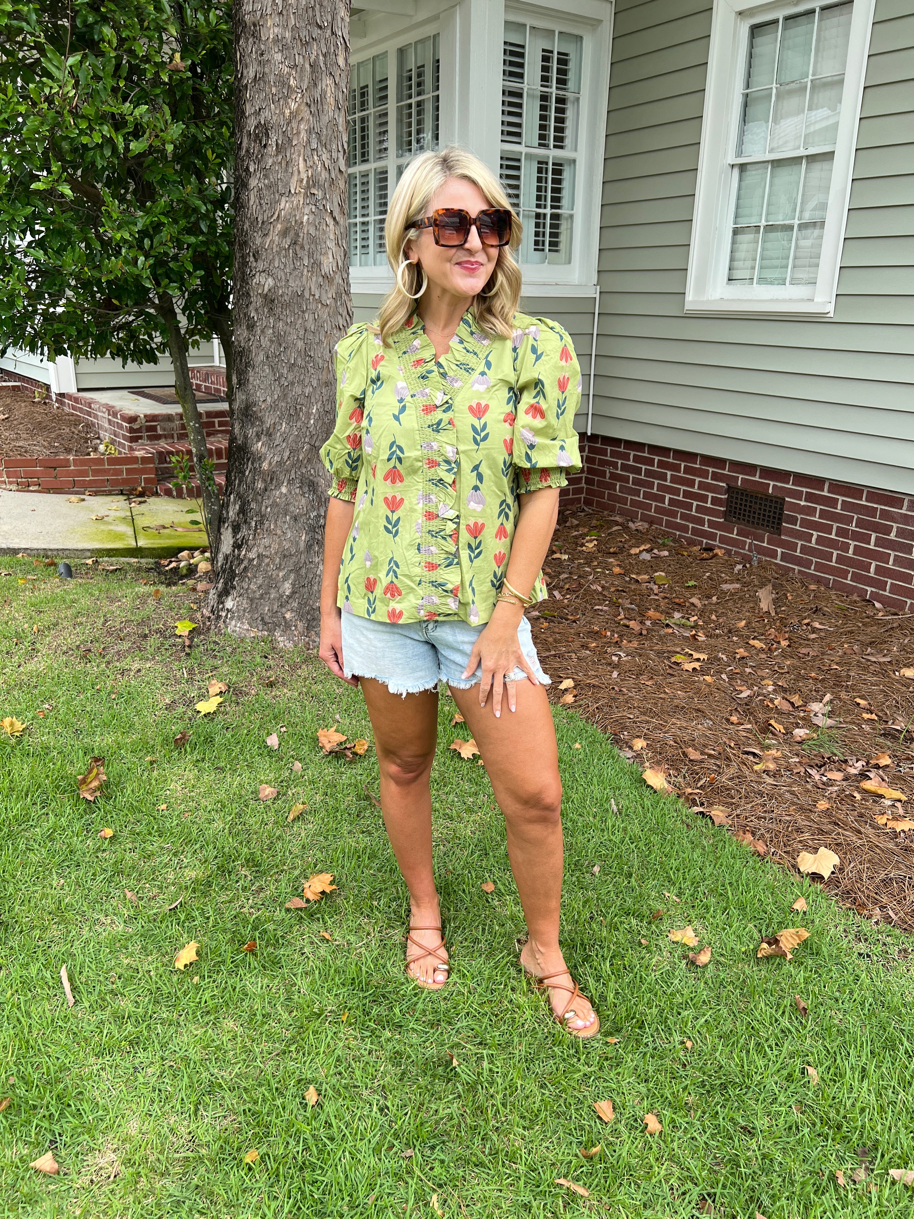 Elevate your wardrobe with the Floral Ruffle Trim Puff Sleeve Blouse, designed to blend delicate femininity with effortless style. Its soft floral pattern and charming ruffle trim add a romantic touch, while the puff sleeves create a flattering silhouette. Perfect for both casual outings and special occasions, this blouse offers comfort without compromising on elegance. Make a statement with a piece that’s as graceful as it is versatile.