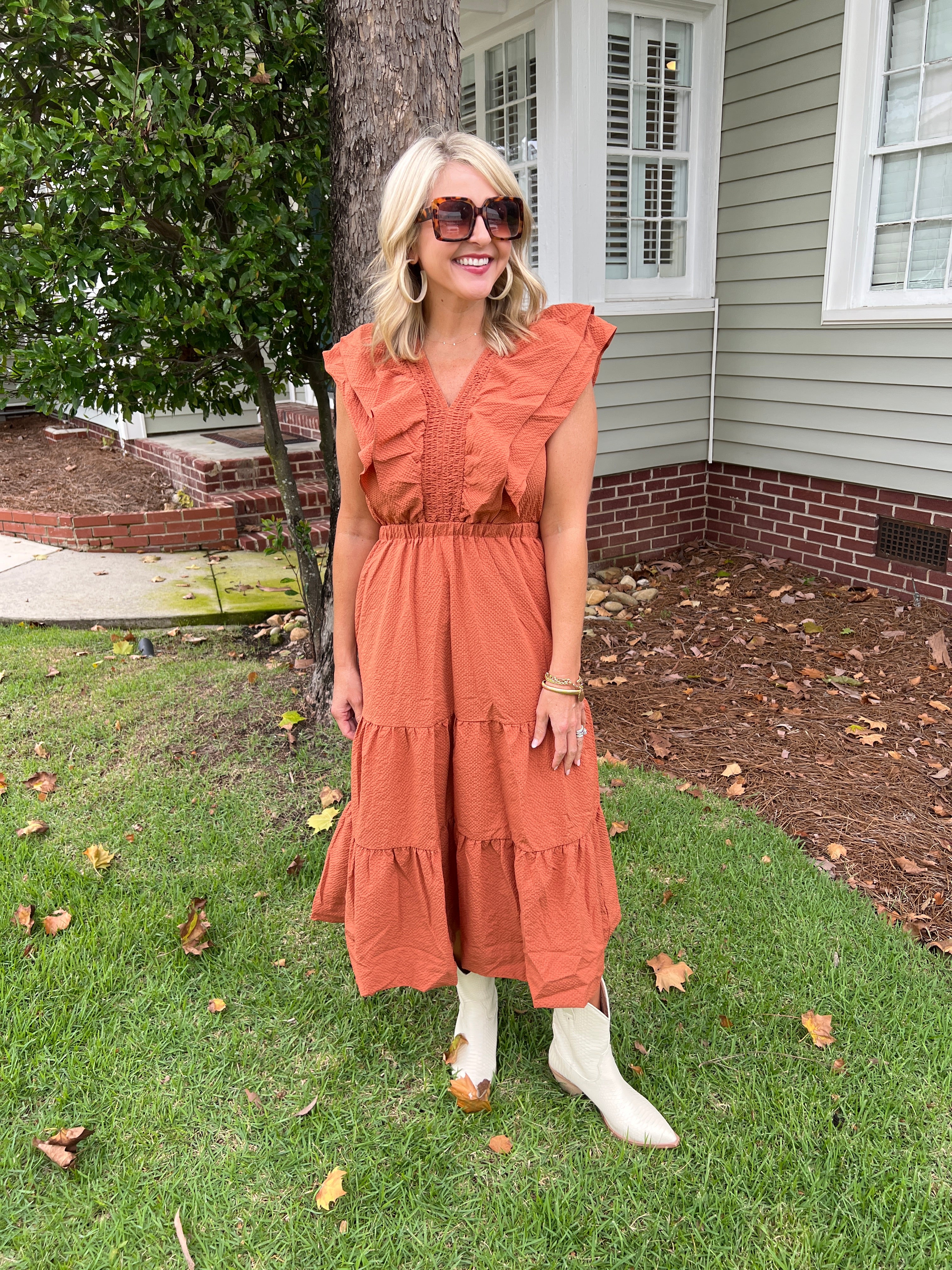 Elevate your wardrobe with the Flutter Sleeve Tiered Maxi Dress, designed to combine comfort and style effortlessly. Its flowing silhouette and tiered layers create a graceful, flattering look, while the flutter sleeves add a delicate, feminine touch. Perfect for any occasion, this dress offers both ease of movement and a timeless elegance that ensures you stand out wherever you go.