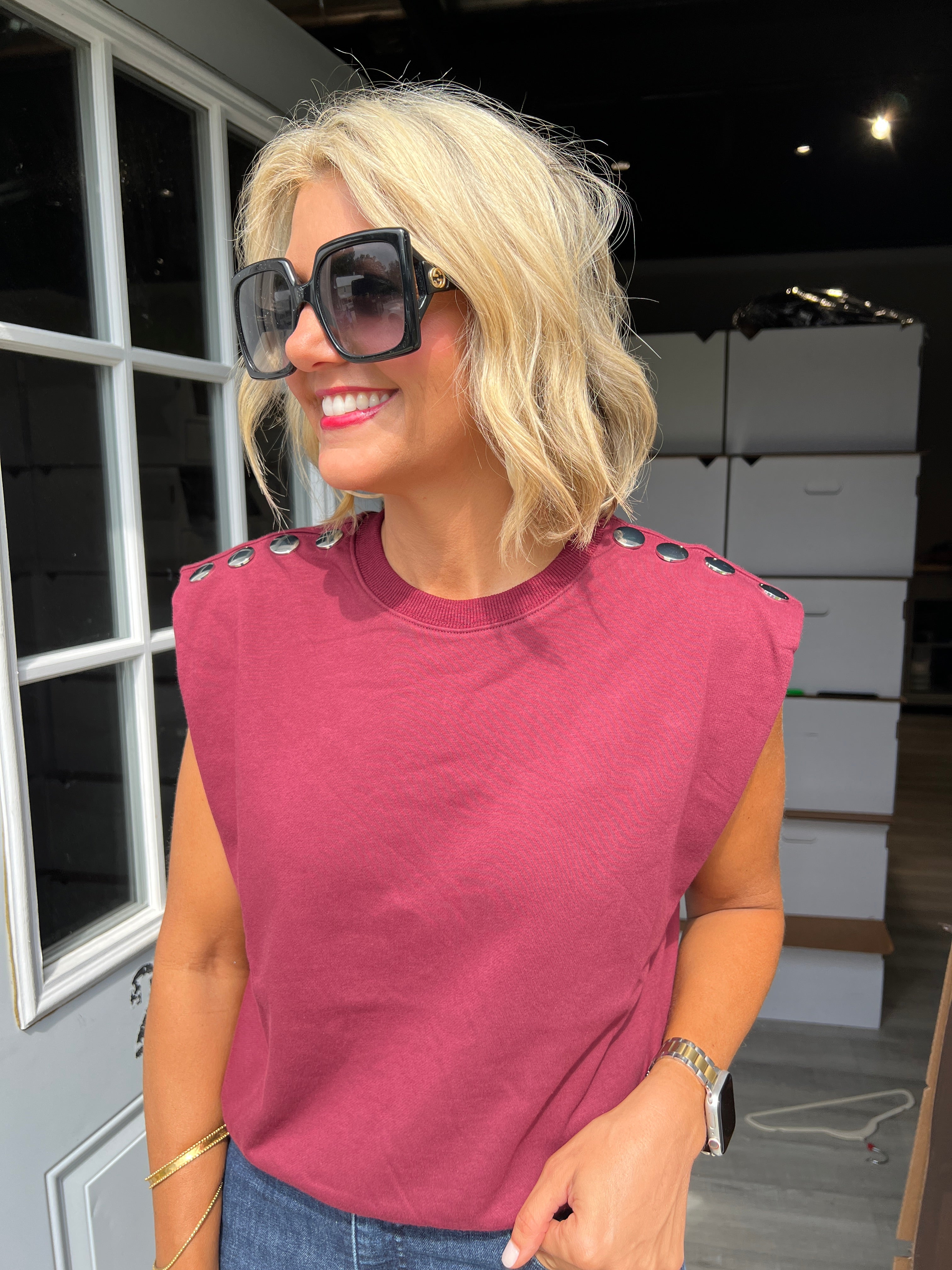 Elevate your wardrobe with the Metal Button Sleeveless Top, designed to combine edgy style with effortless comfort. Featuring sleek metal buttons and a sleeveless cut, this top offers a modern, versatile look perfect for layering or wearing solo. Its breathable fabric keeps you comfortable from day to night, making it an essential piece for any fashion-forward closet.