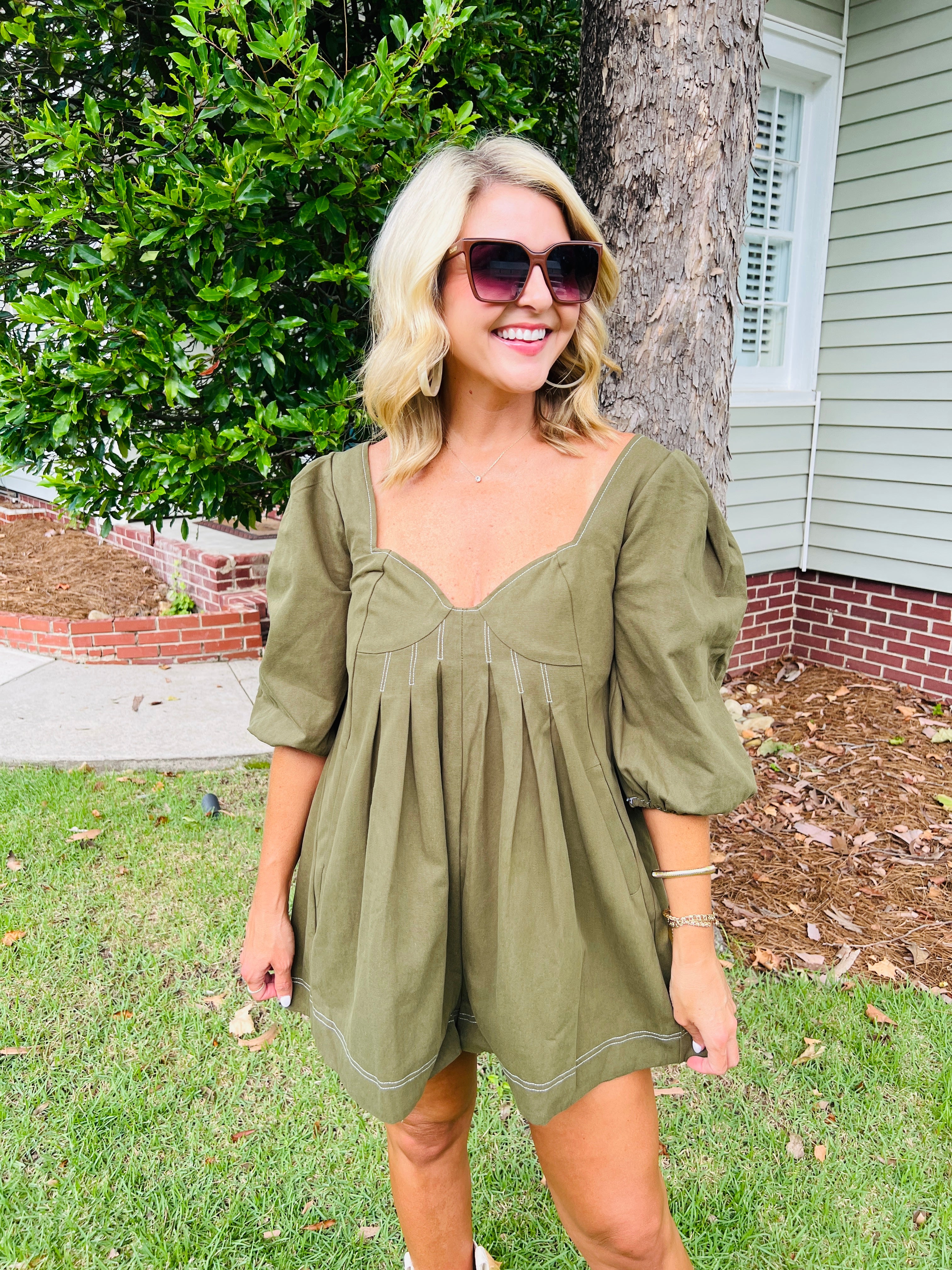 Olive Green Puff Sleeve Romper