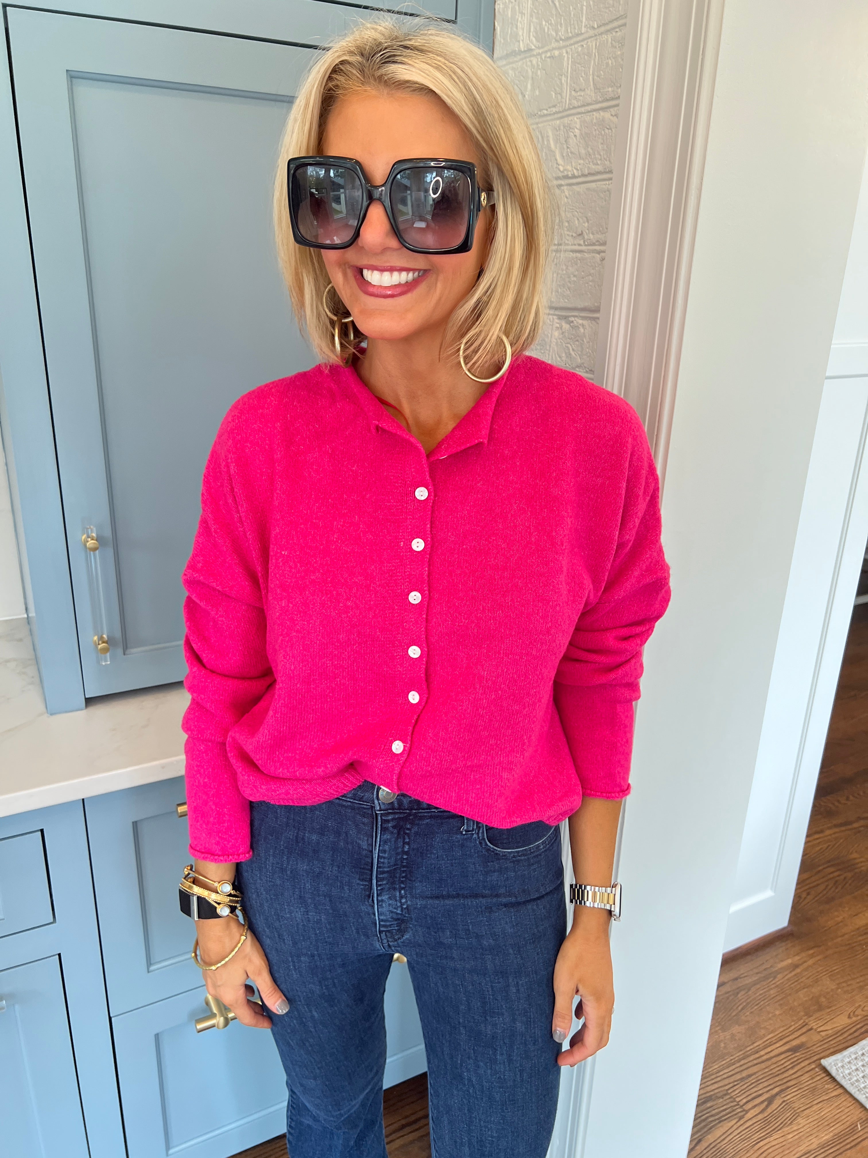 This pink long sleeve cardigan blends comfort and style effortlessly. Its soft fabric keeps you cozy while the vibrant pink hue adds a fresh pop of color to any outfit. Perfect for layering, it enhances your look with a flattering fit that moves with you throughout the day. Elevate your wardrobe essentials with this versatile and charming piece.