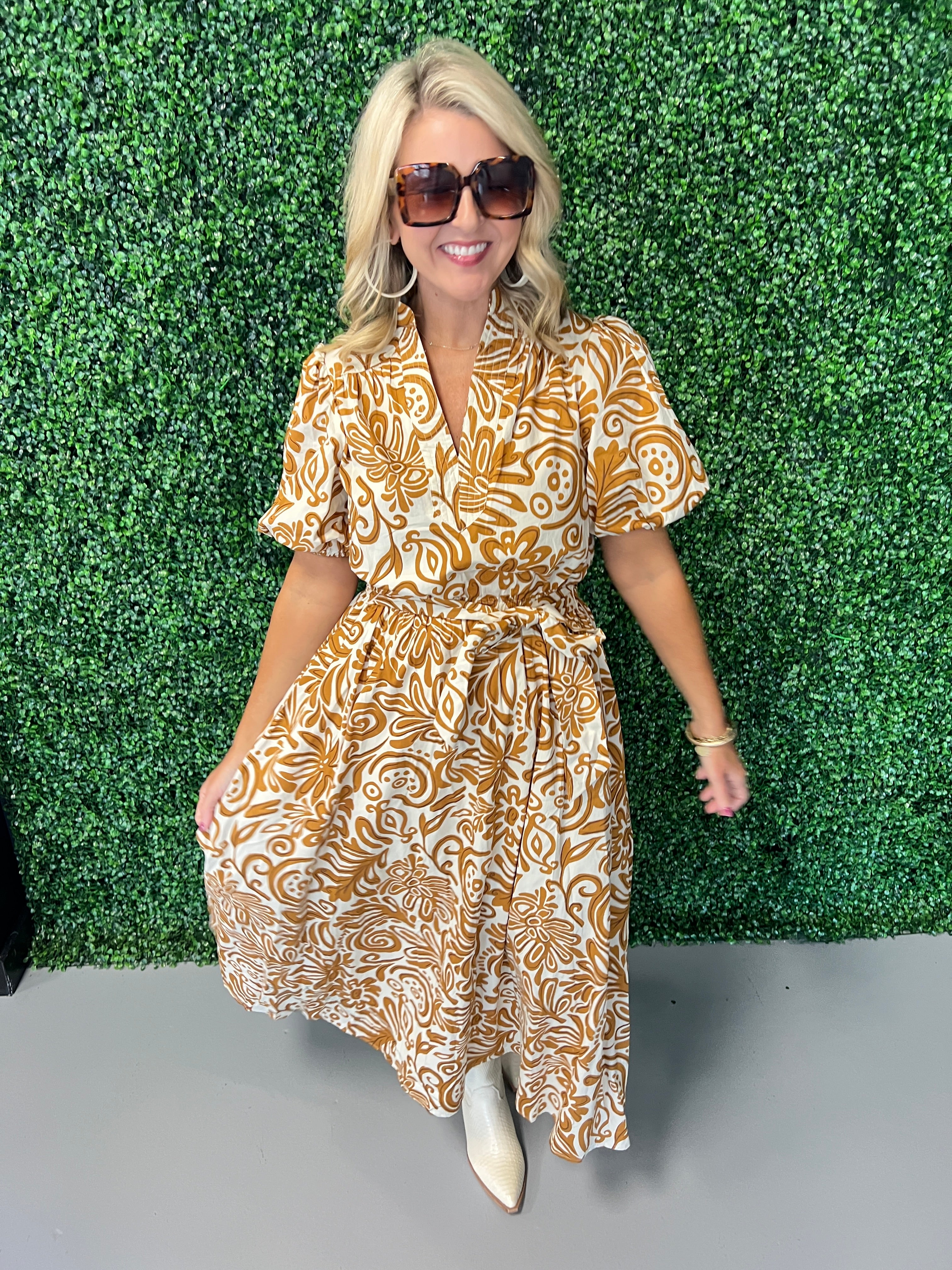 Elevate your wardrobe with the Puff Sleeve Collar Midi Dress, designed to blend classic charm with modern elegance. Its softly gathered puff sleeves add a touch of romance, while the structured collar brings refined detail. Perfect for day-to-night wear, this midi dress flatters your silhouette and offers effortless style for any occasion. Step out confidently in a dress that feels as good as it looks.
