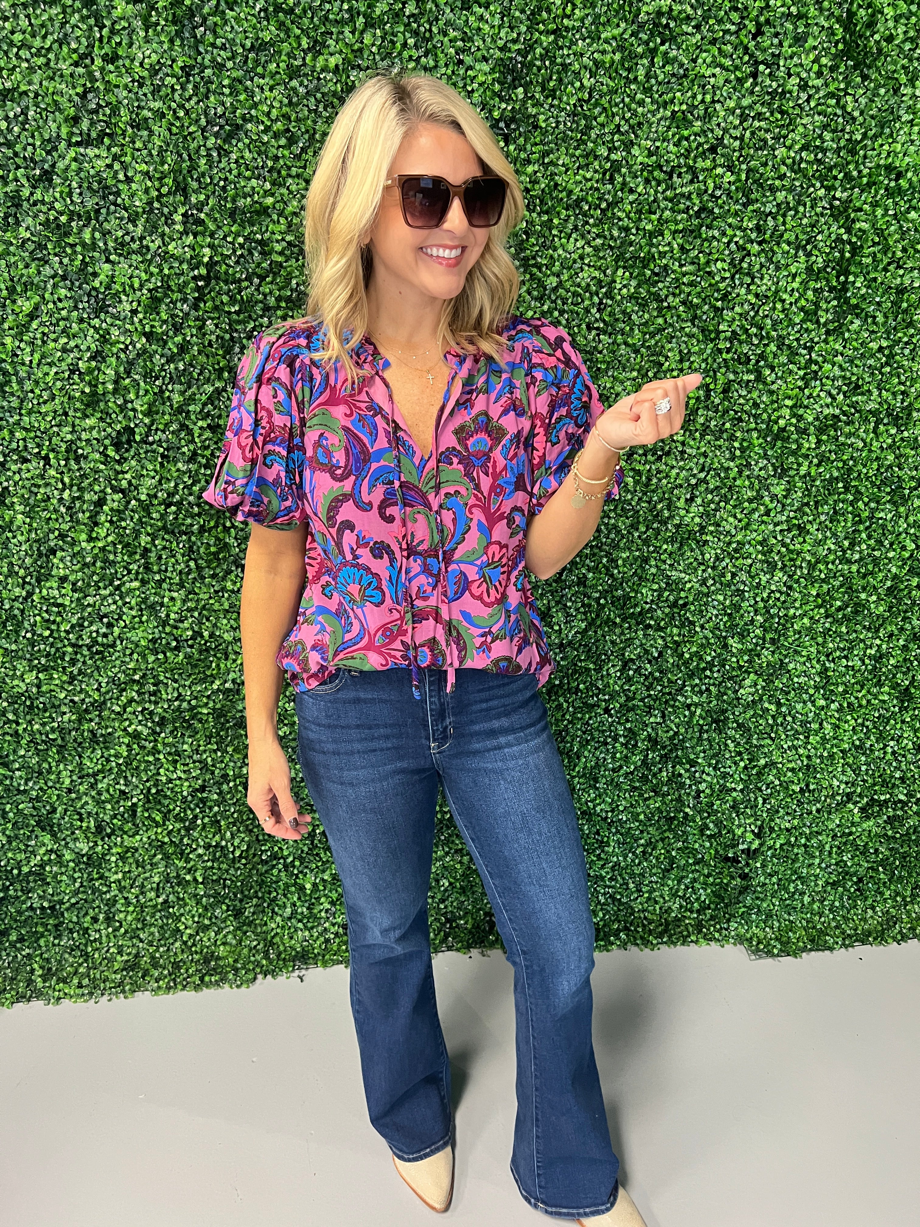 Elevate your wardrobe with the Purple Floral Puff Sleeve Blouse, designed to blend feminine charm with modern style. Its delicate floral pattern and voluminous puff sleeves create a flattering silhouette that stands out for any occasion. Crafted for comfort and elegance, this blouse pairs effortlessly with jeans or skirts, making it a versatile choice you'll reach for again and again. Add a touch of sophistication and playfulness to your look with this must-have statement piece.