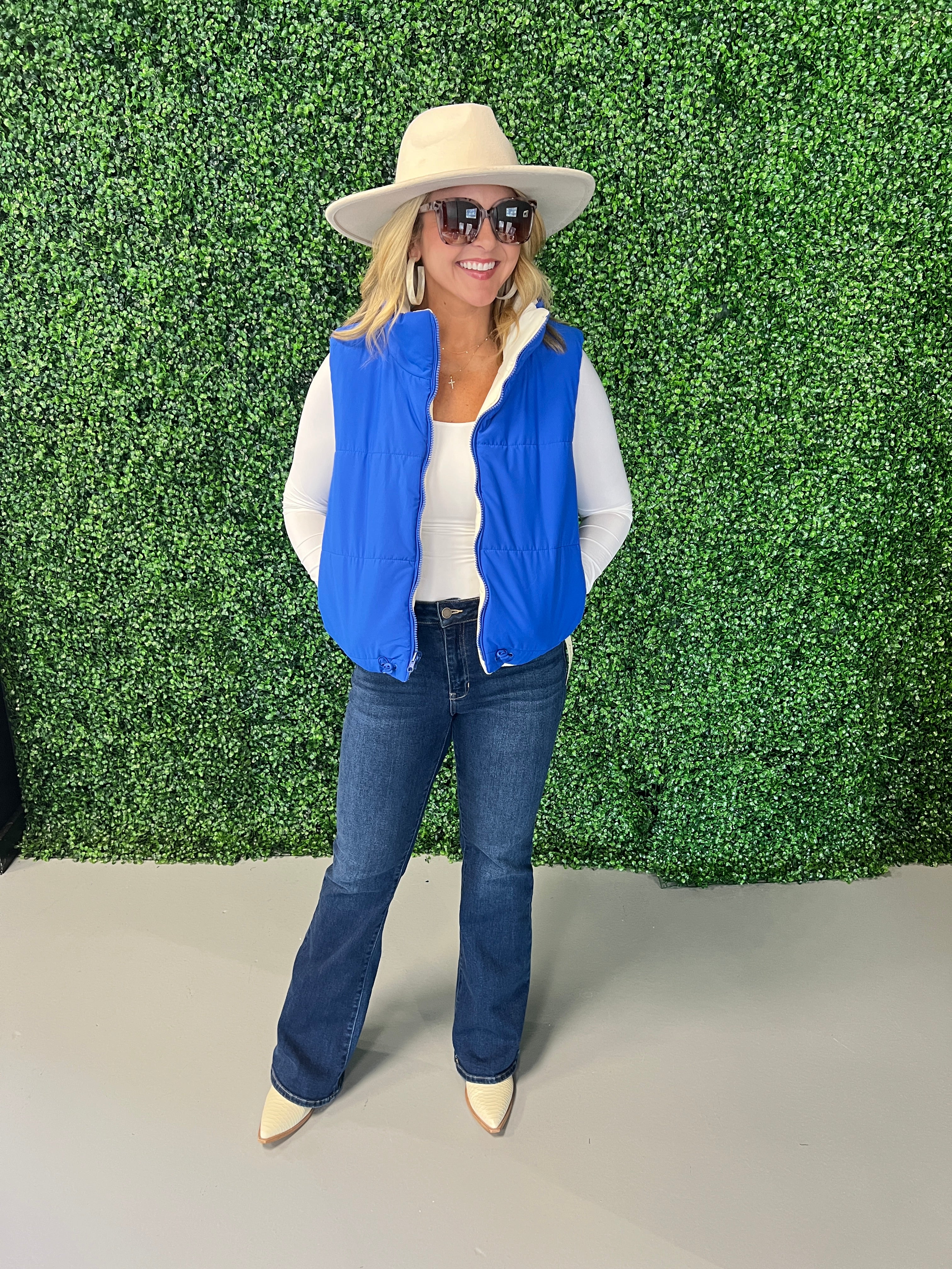Stay versatile and stylish with this Reversible Zip Up Puffer Vest. Designed for warmth and convenience, it offers two looks in one, easily switching to match your mood or outfit. Lightweight yet cozy, its zip-up design ensures quick layering on any brisk day. Perfect for adding a functional edge to your wardrobe while keeping you comfortable wherever you go.