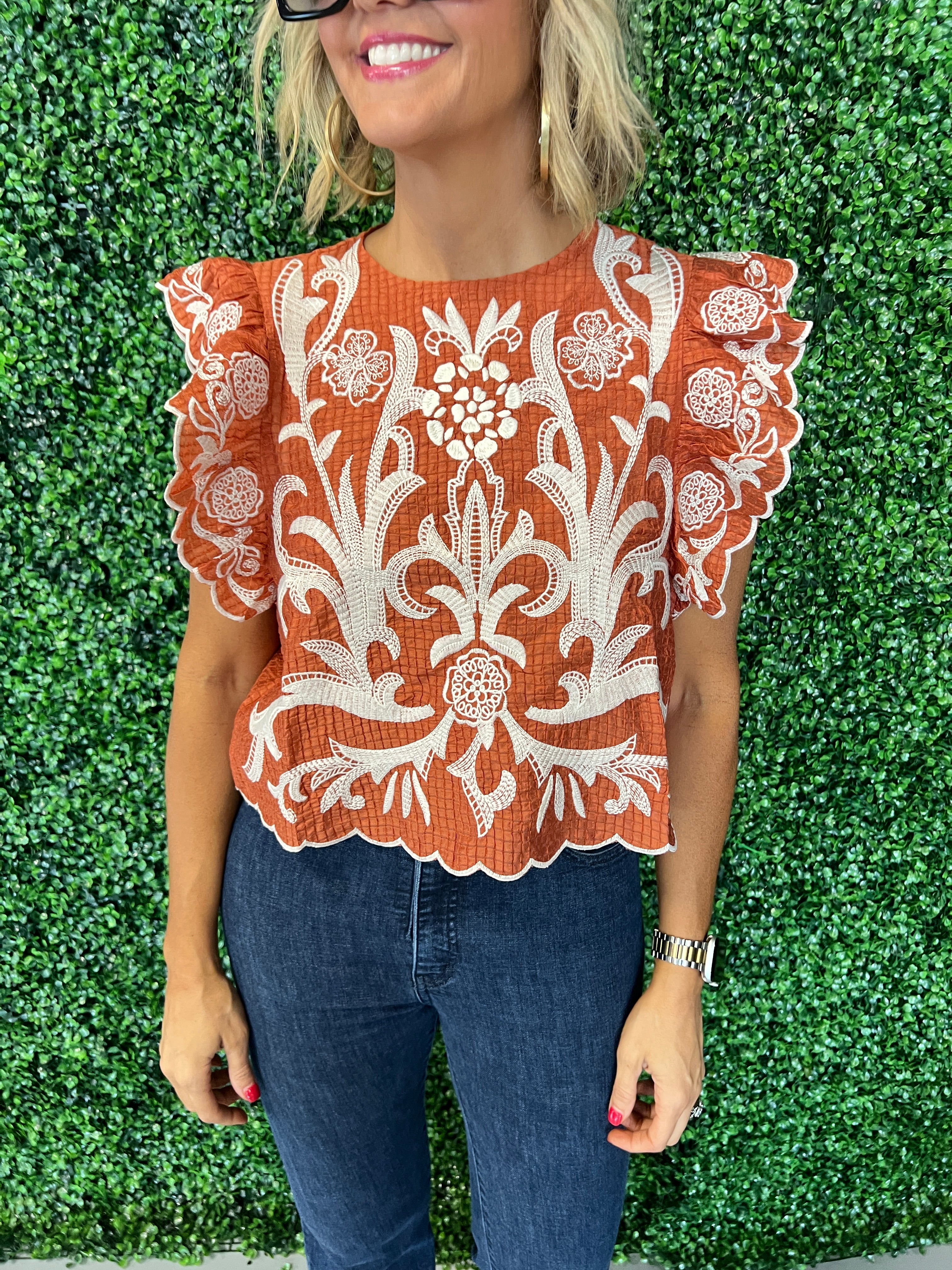 Elevate your wardrobe with the Smocked Sleeve Textured Top, designed to blend comfort and style effortlessly. The smocked sleeves add a delicate, fitted detail while the textured fabric brings subtle sophistication, making it perfect for both casual outings and dressier occasions. Its flattering silhouette ensures you look polished and feel confident all day. This top is an essential piece to refresh your collection with timeless charm and modern appeal.