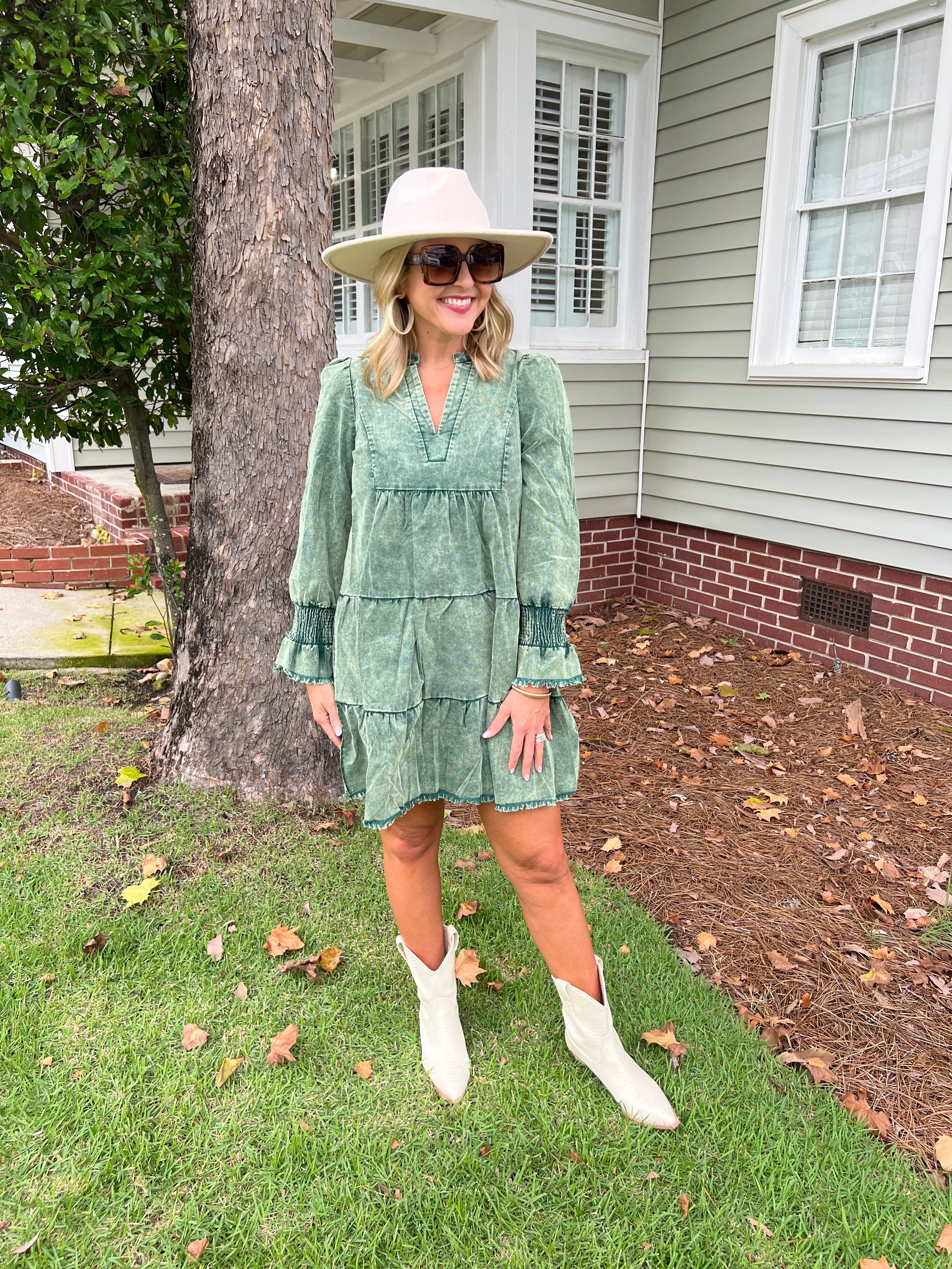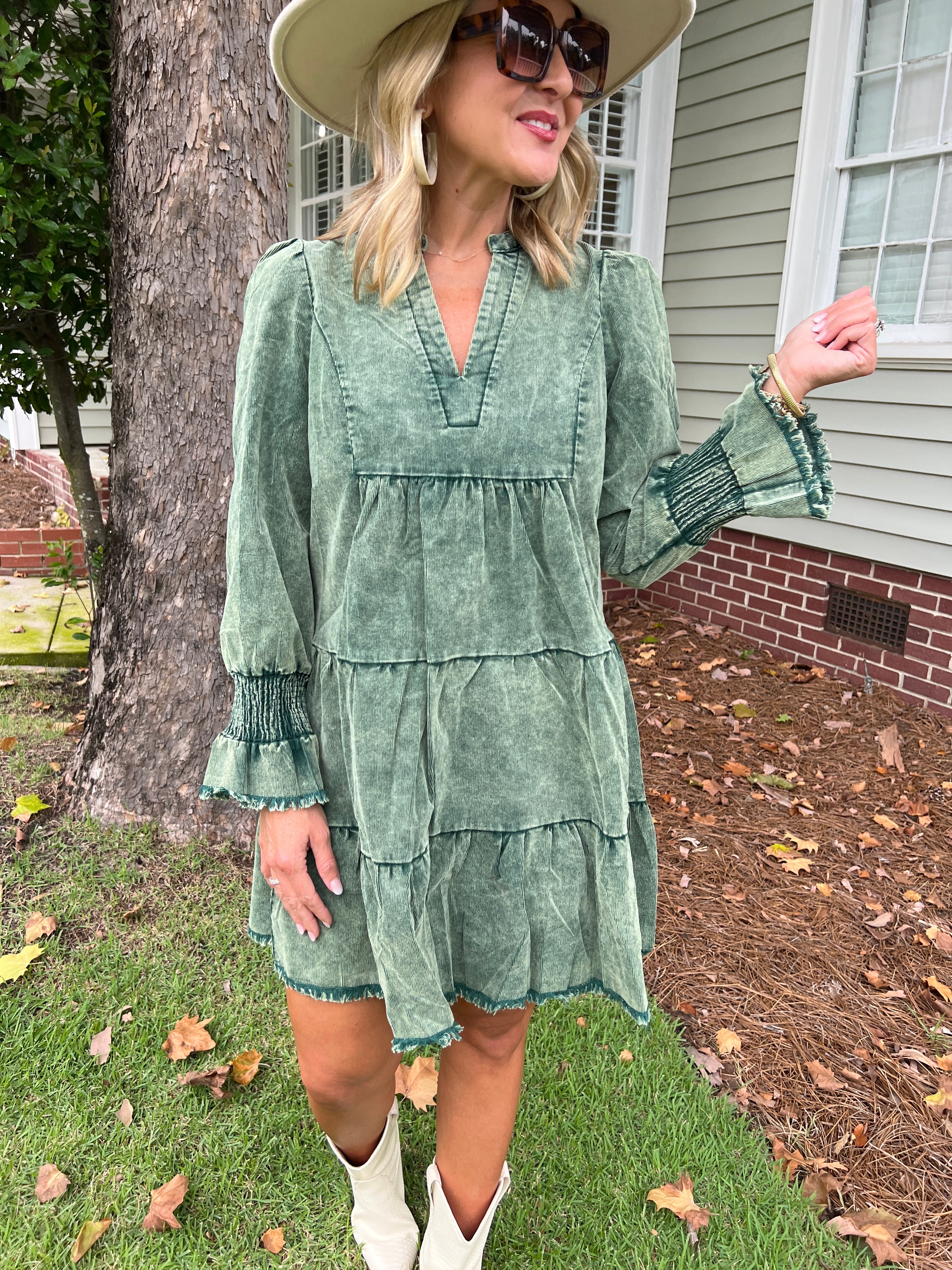 Stone Washed V-Neck Dress