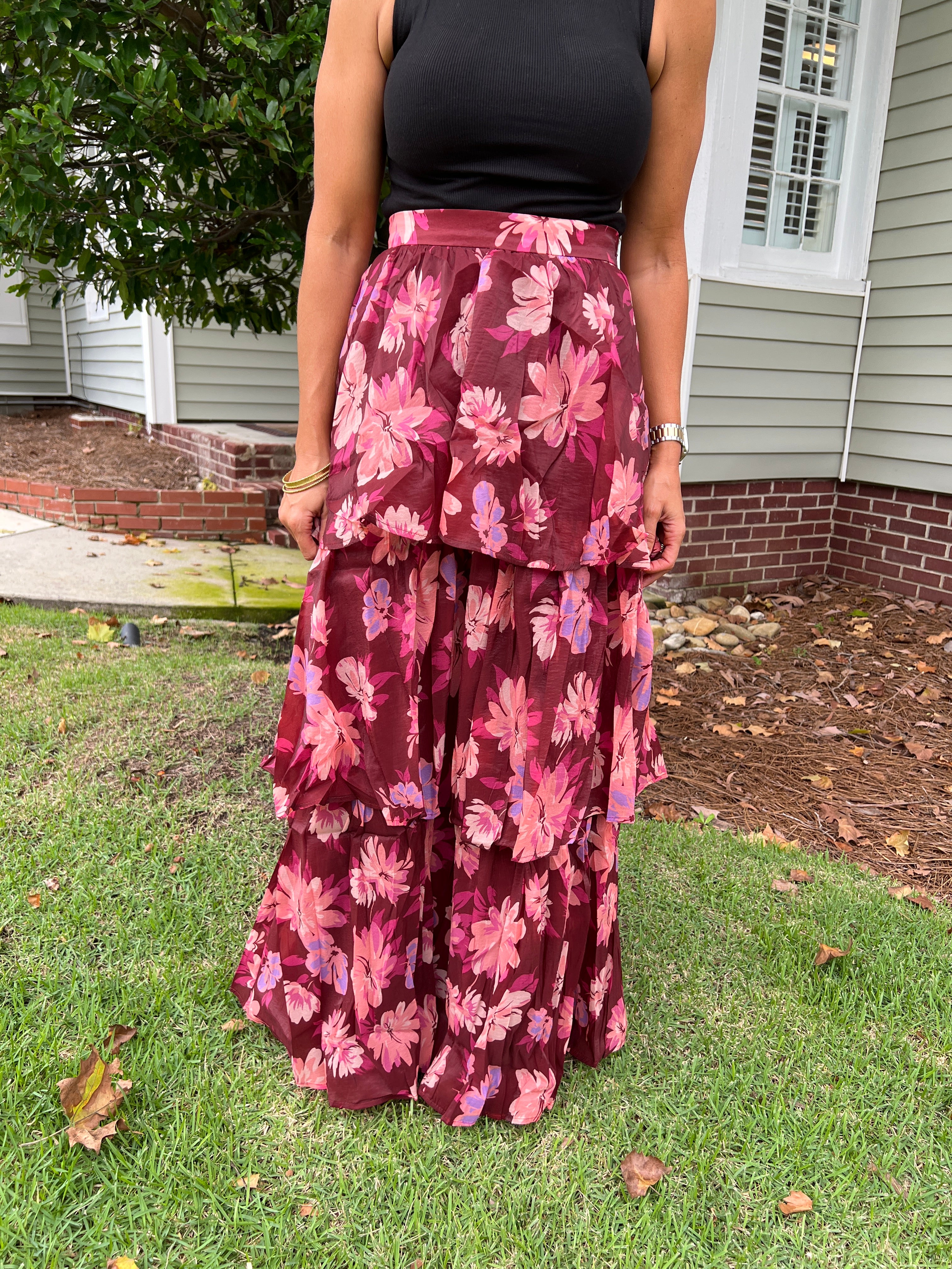 Elevate your wardrobe with this Tiered Maxi Skirt, designed for effortless style and comfort. Its layered silhouette creates graceful movement, perfect for both casual outings and special occasions. The flowing fabric drapes beautifully, offering a flattering fit that enhances your natural shape. Embrace versatile elegance that transitions seamlessly from day to night.