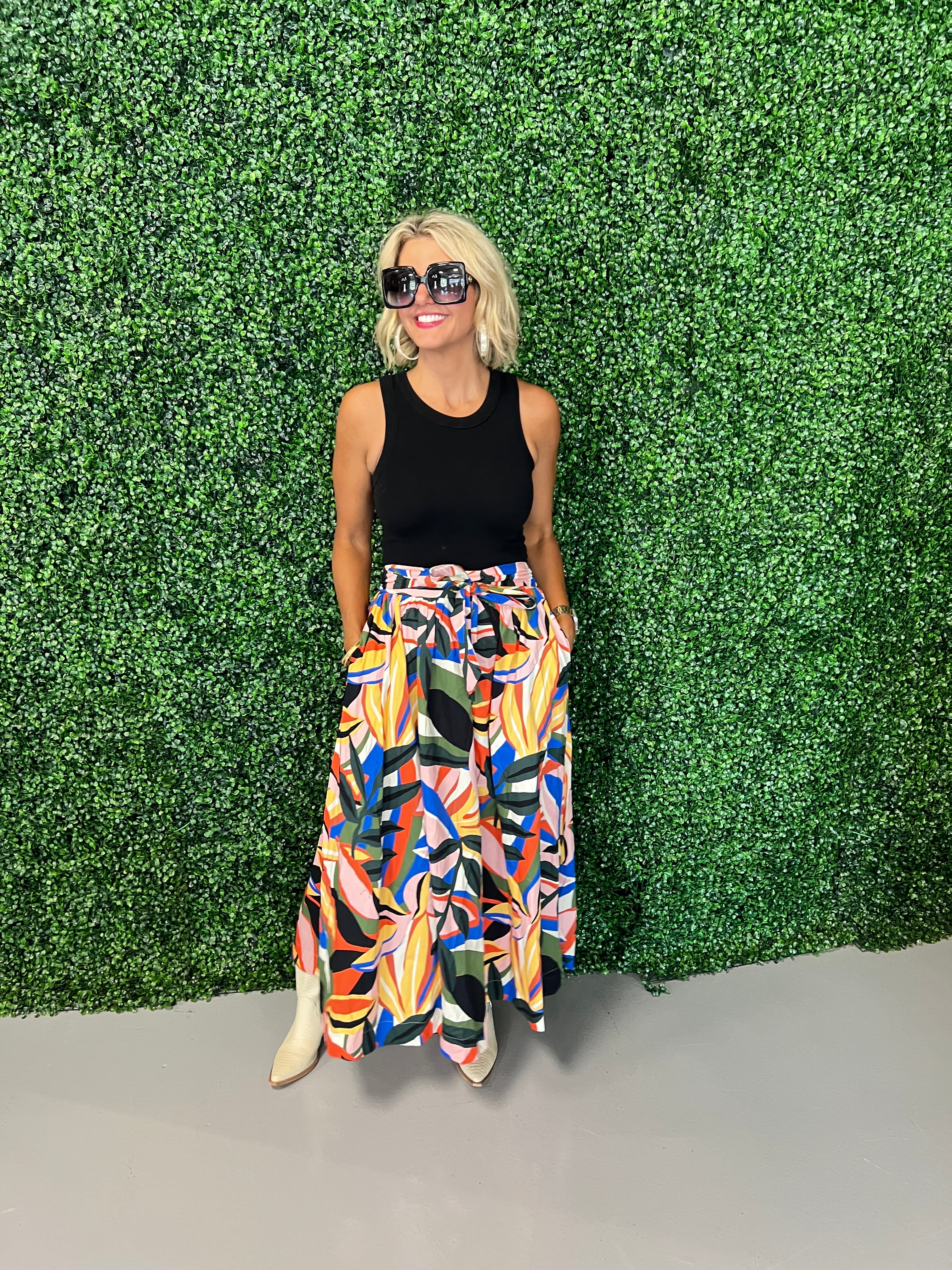 Escape to paradise with our stunning Tropical Print Maxi Skirt. The vibrant, eye-catching pattern transports you to exotic destinations while the flowing silhouette ensures all-day comfort and effortless style. Perfect for beach vacations, summer parties, or elevating your everyday wardrobe. This versatile piece pairs beautifully with simple tops, letting the tropical design take center stage. Don't miss your chance to make a statement this season.