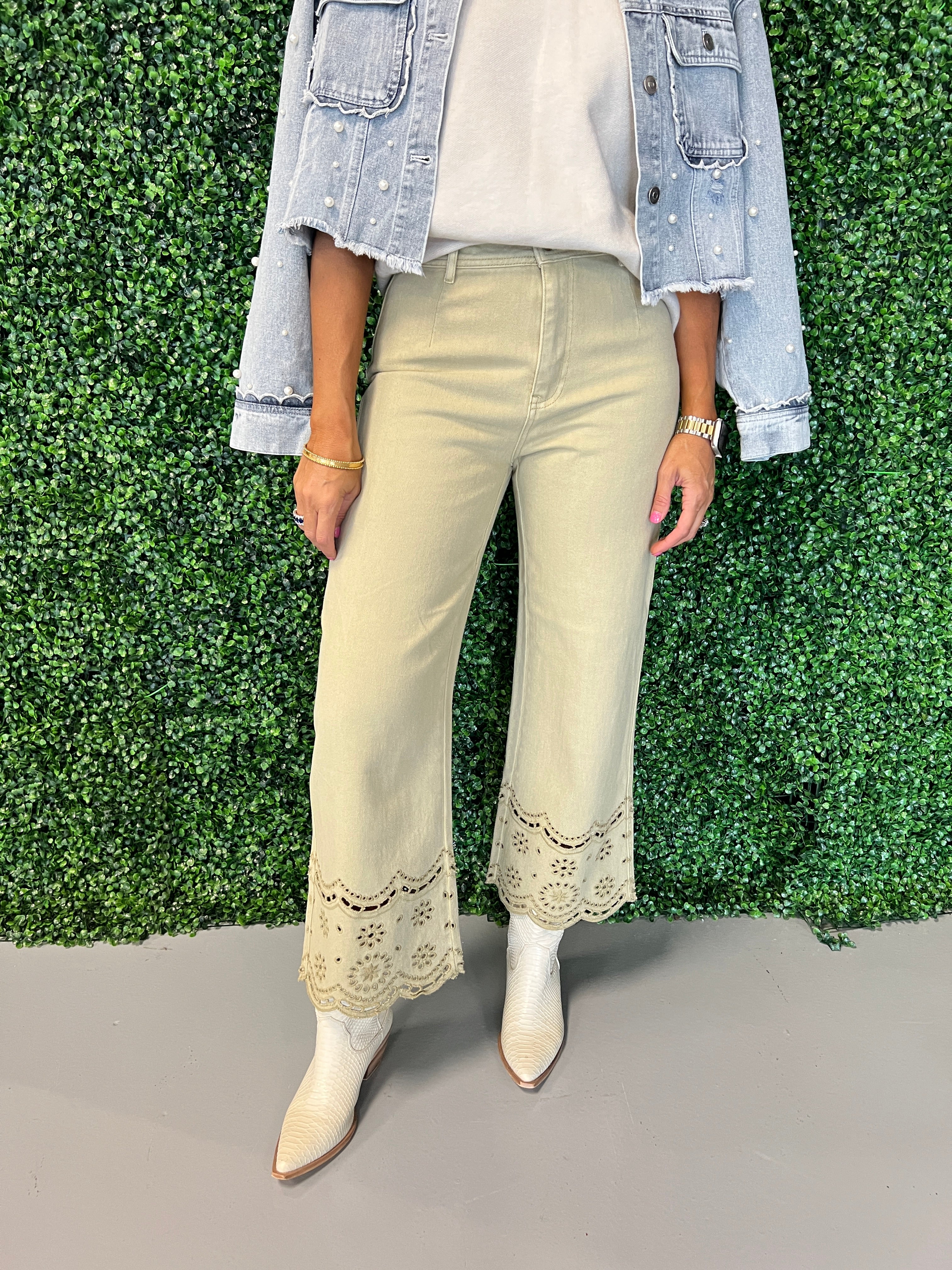 Experience comfort and style with our Washed Olive Embroidery Pants. Made with high-quality fabric, these pants showcase intricate embroidery for a unique touch. Perfect for any occasion, these pants bring an effortless elegance to your wardrobe. Elevate your look and make a statement with our Washed Olive Embroidery Pants.