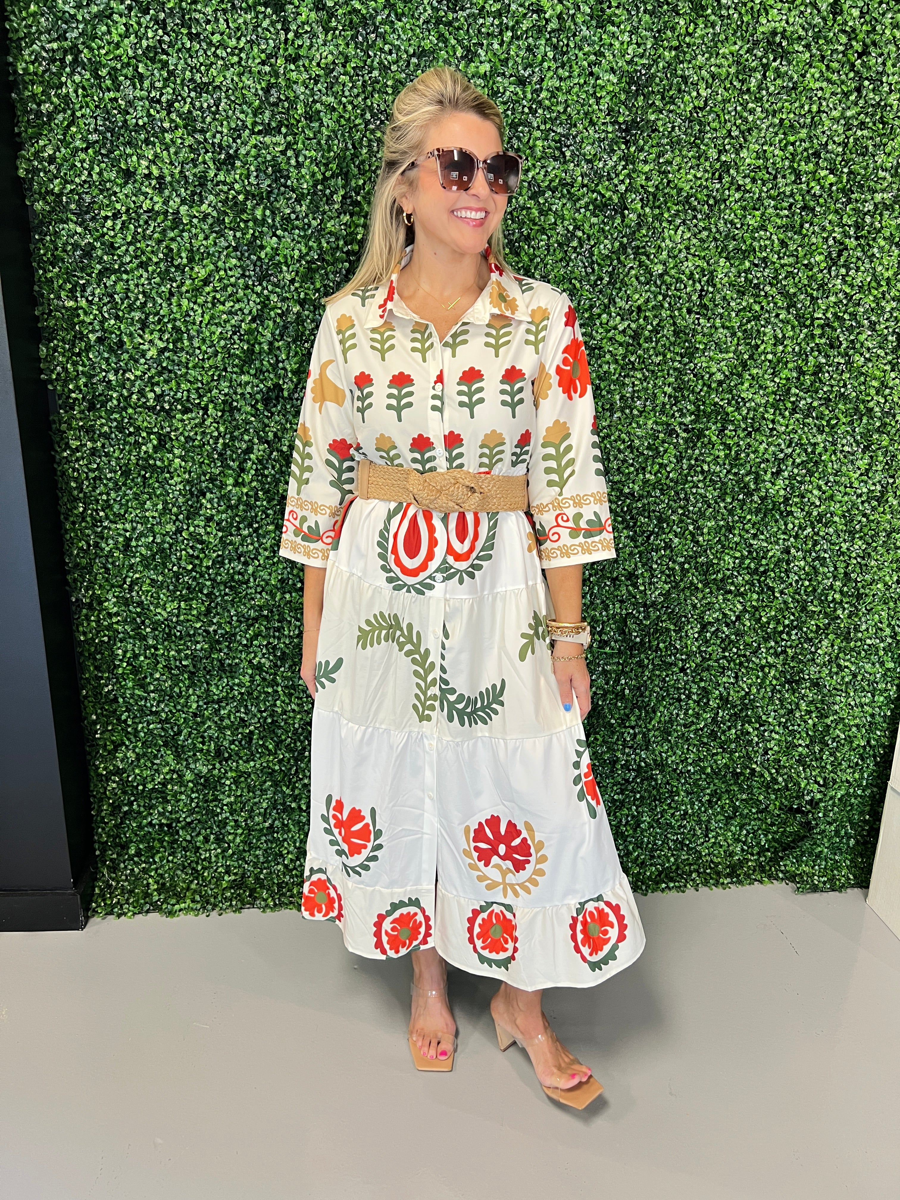 This stunning White Floral Maxi Dress features a beautiful design that will turn heads wherever you go. The vibrant floral pattern adds a touch of elegance and the maxi length is perfect for any occasion. Made with high-quality materials, this dress offers both comfort and style. Experience the beauty and confidence that comes with wearing this dress!