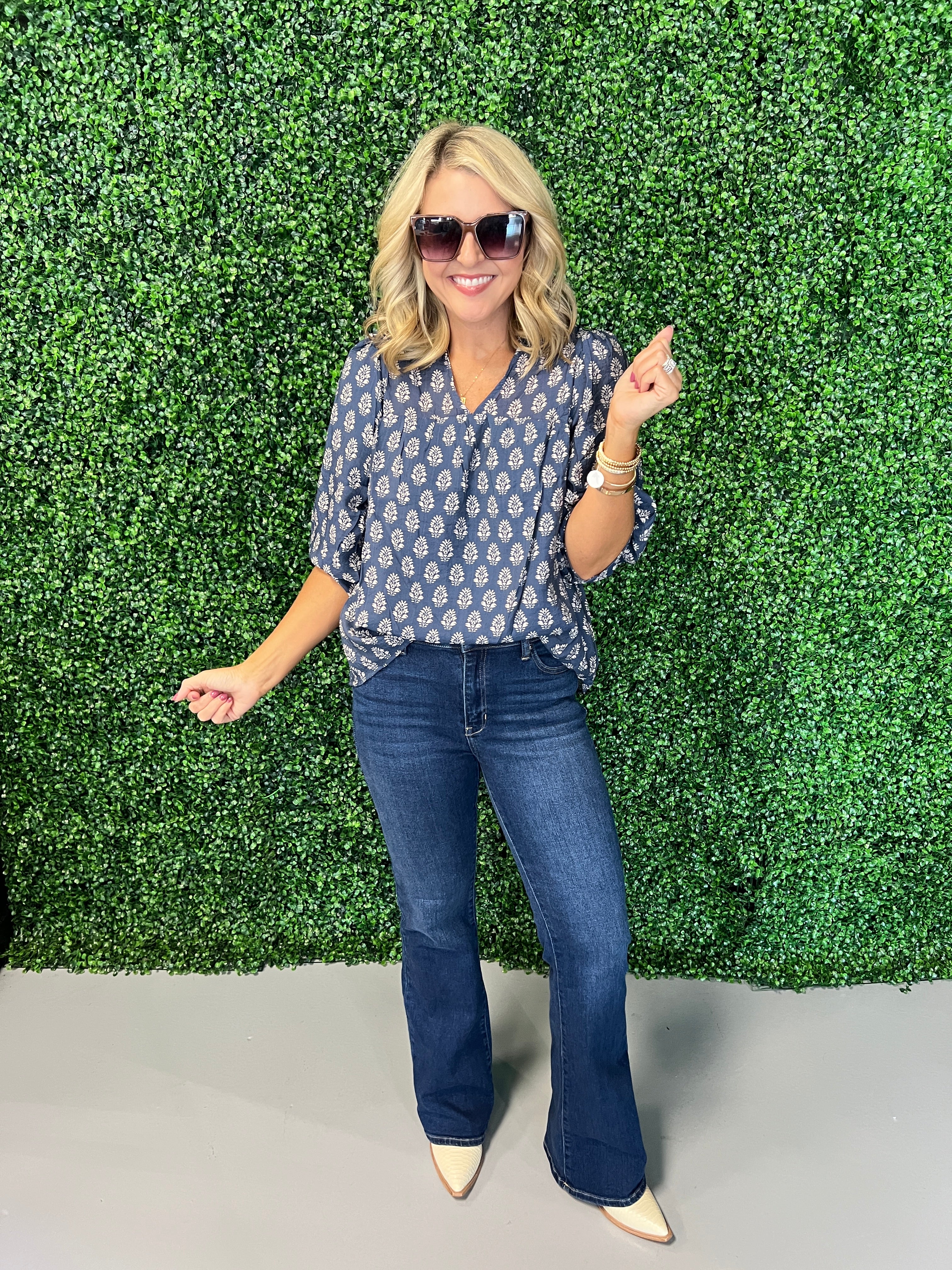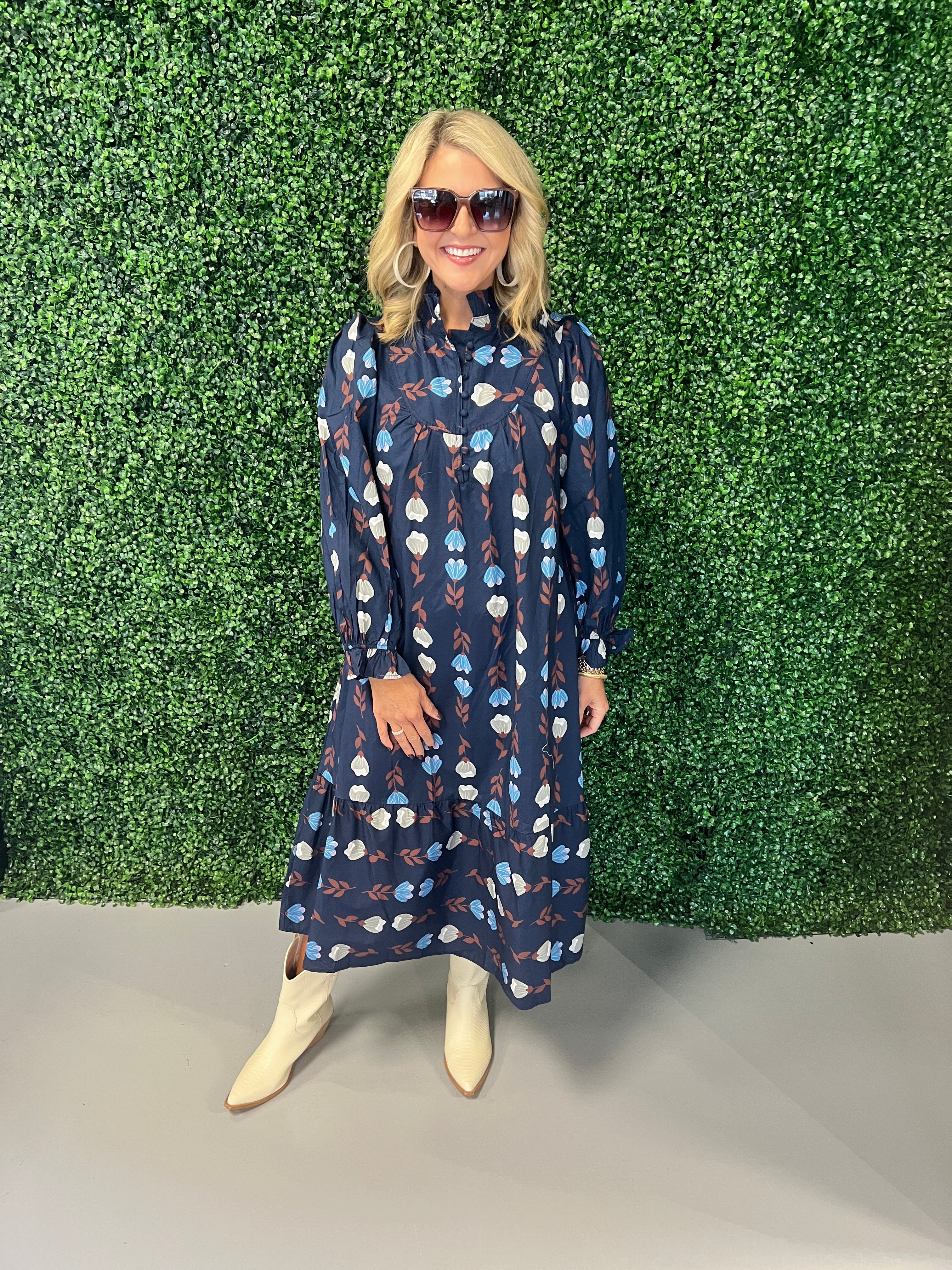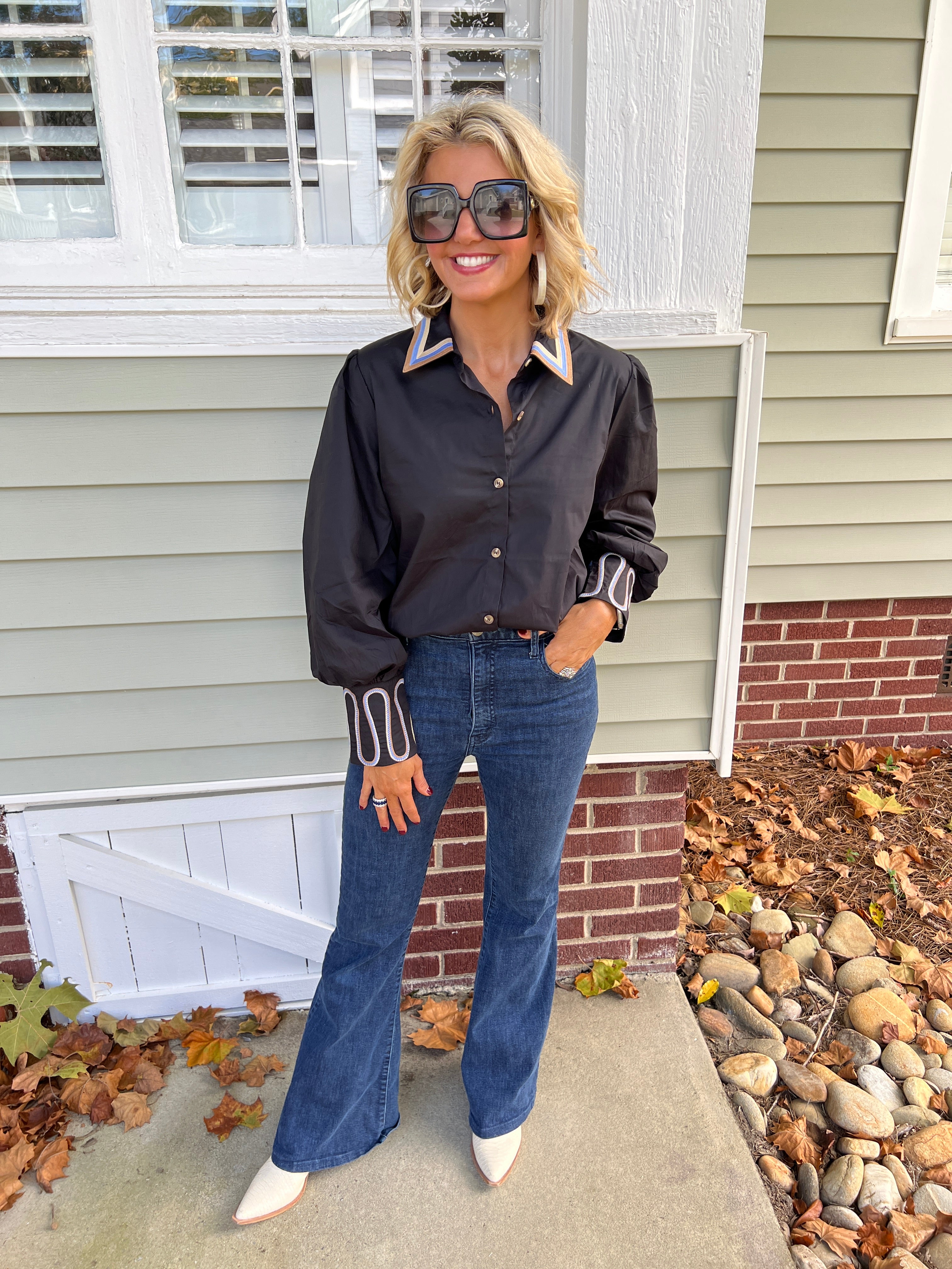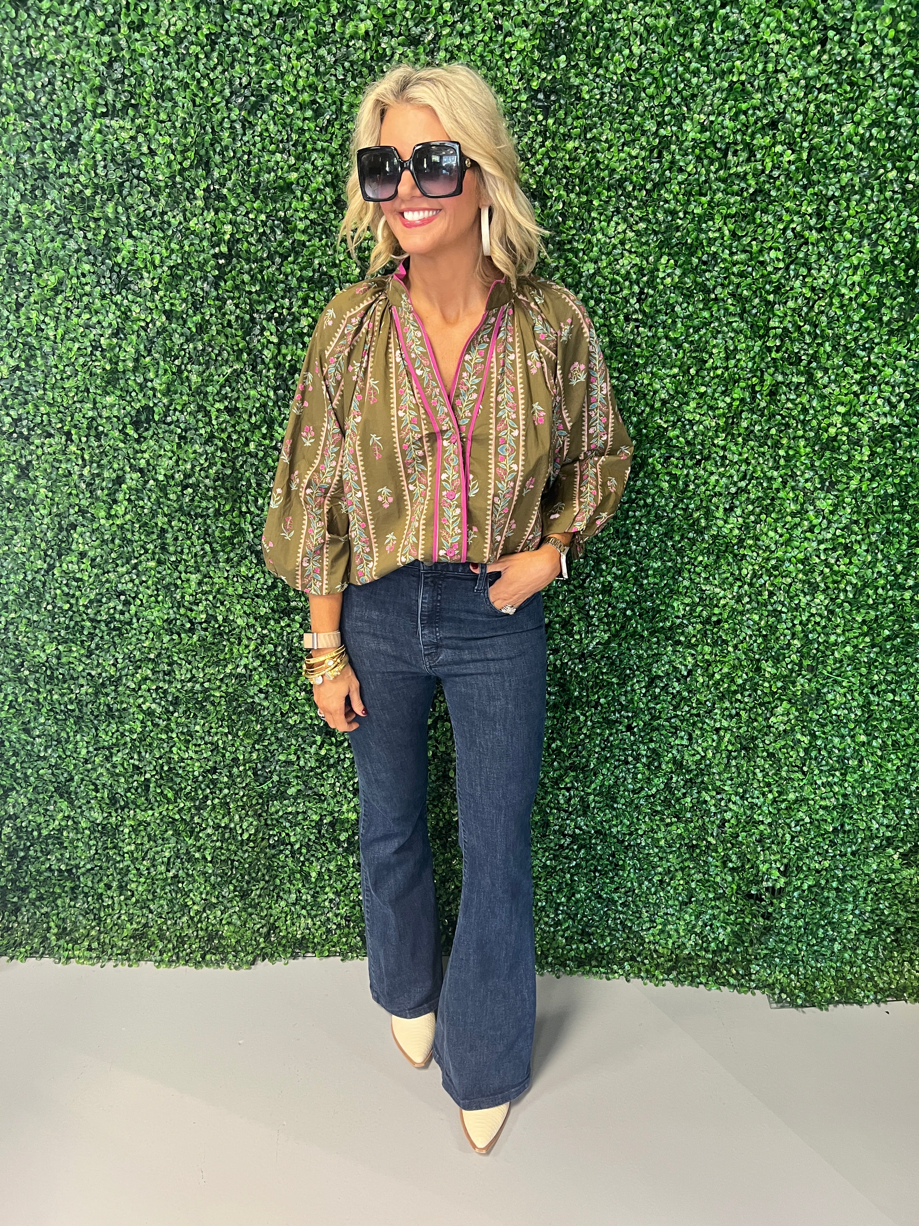 Brown & Blue Mock Neck Striped Cropped Sweater