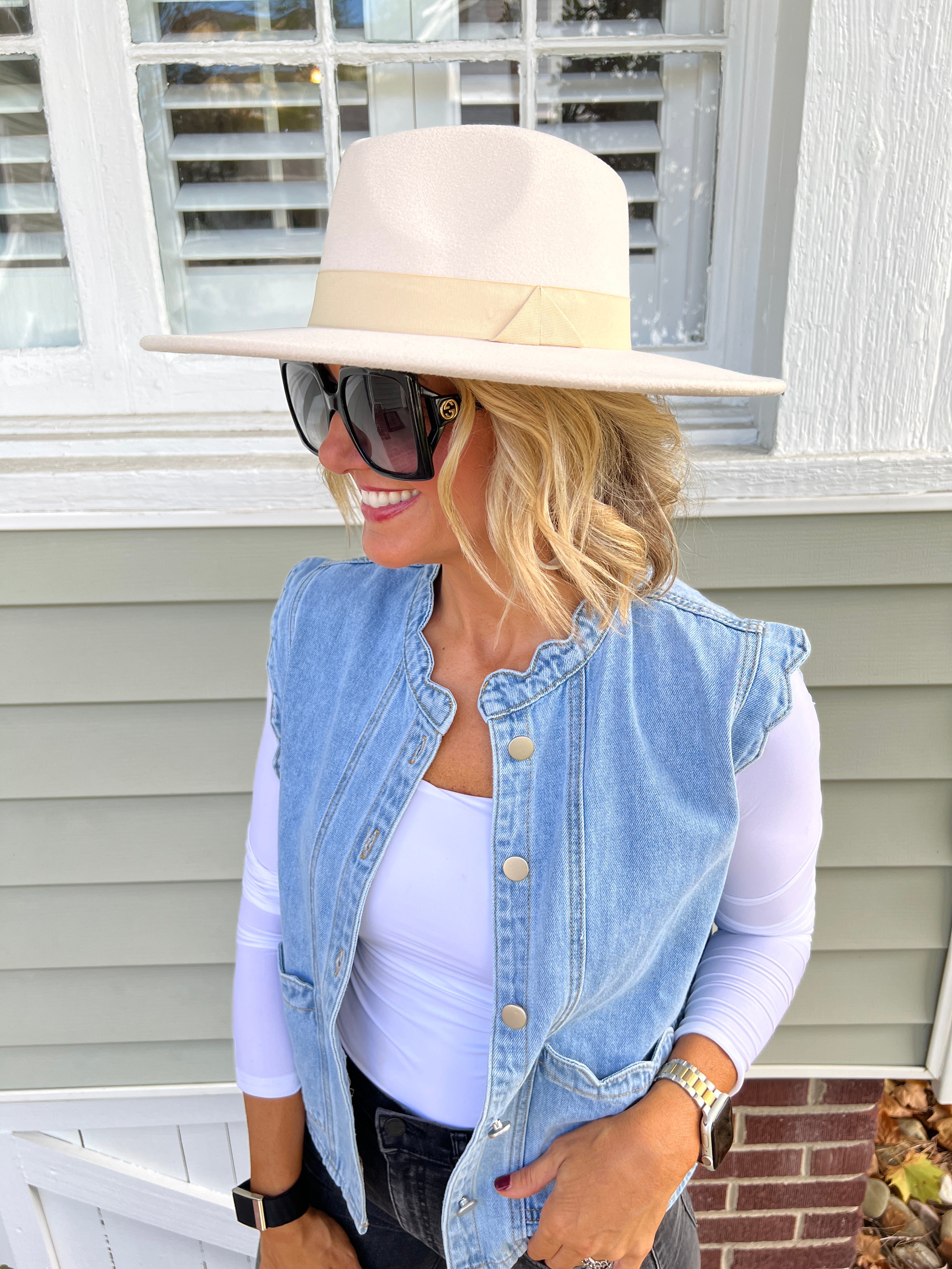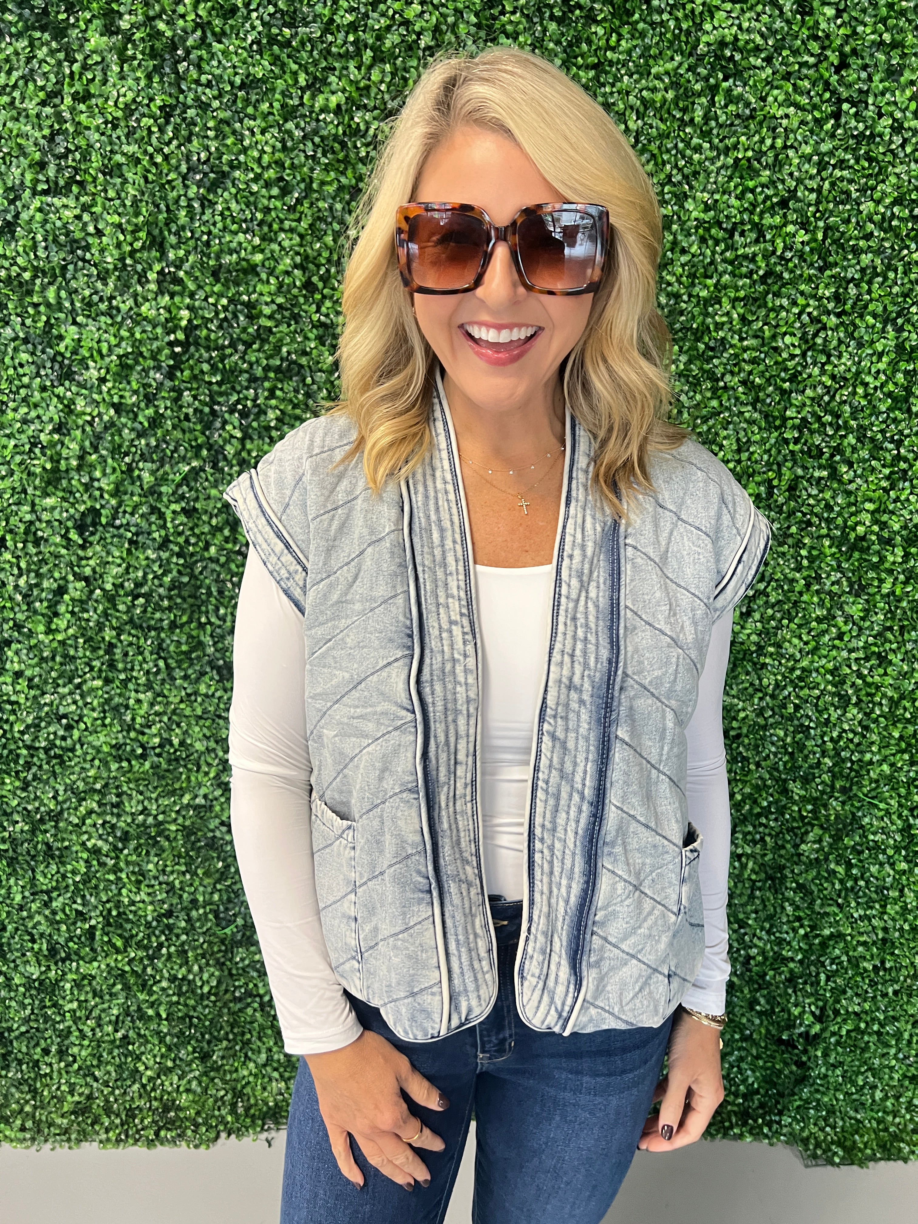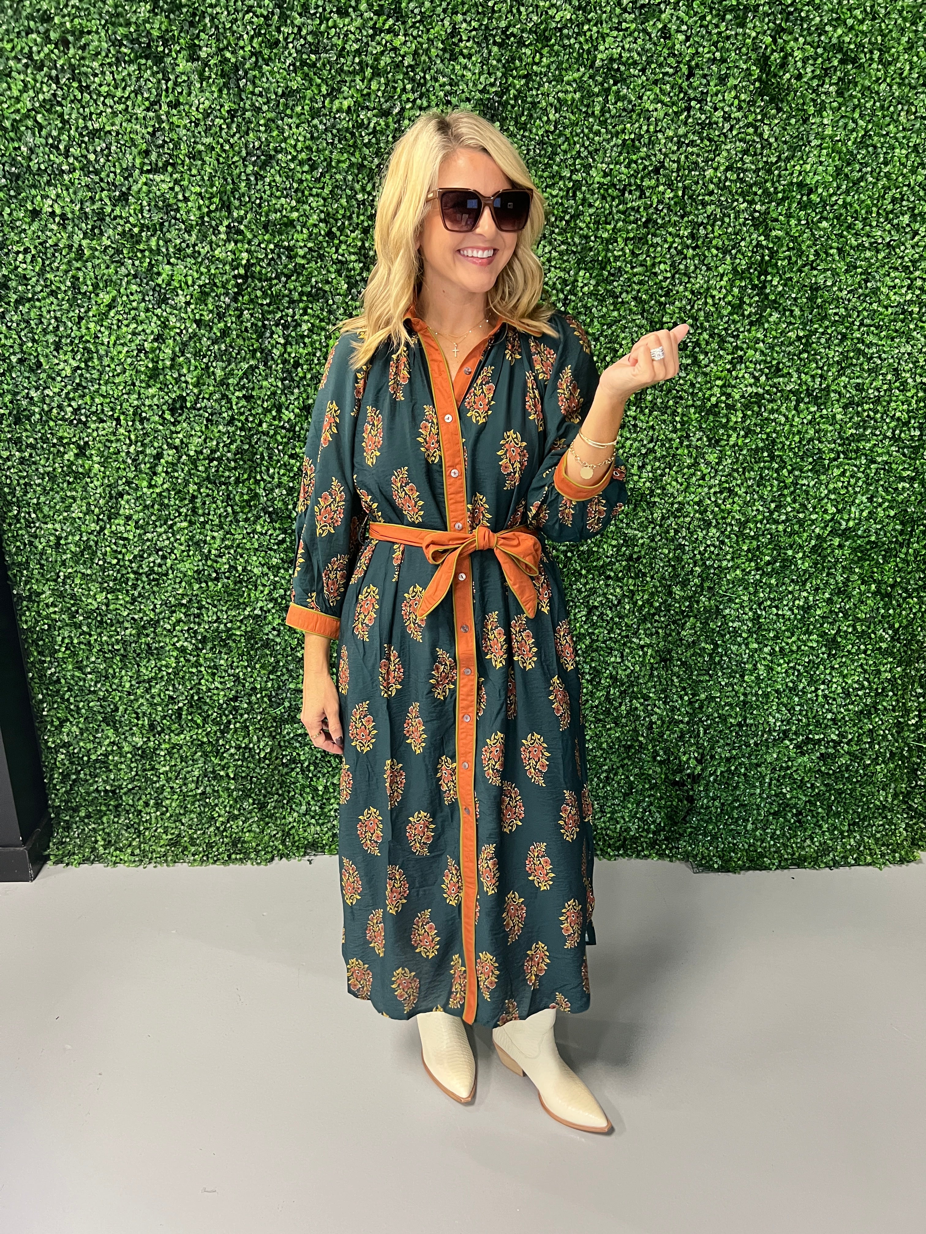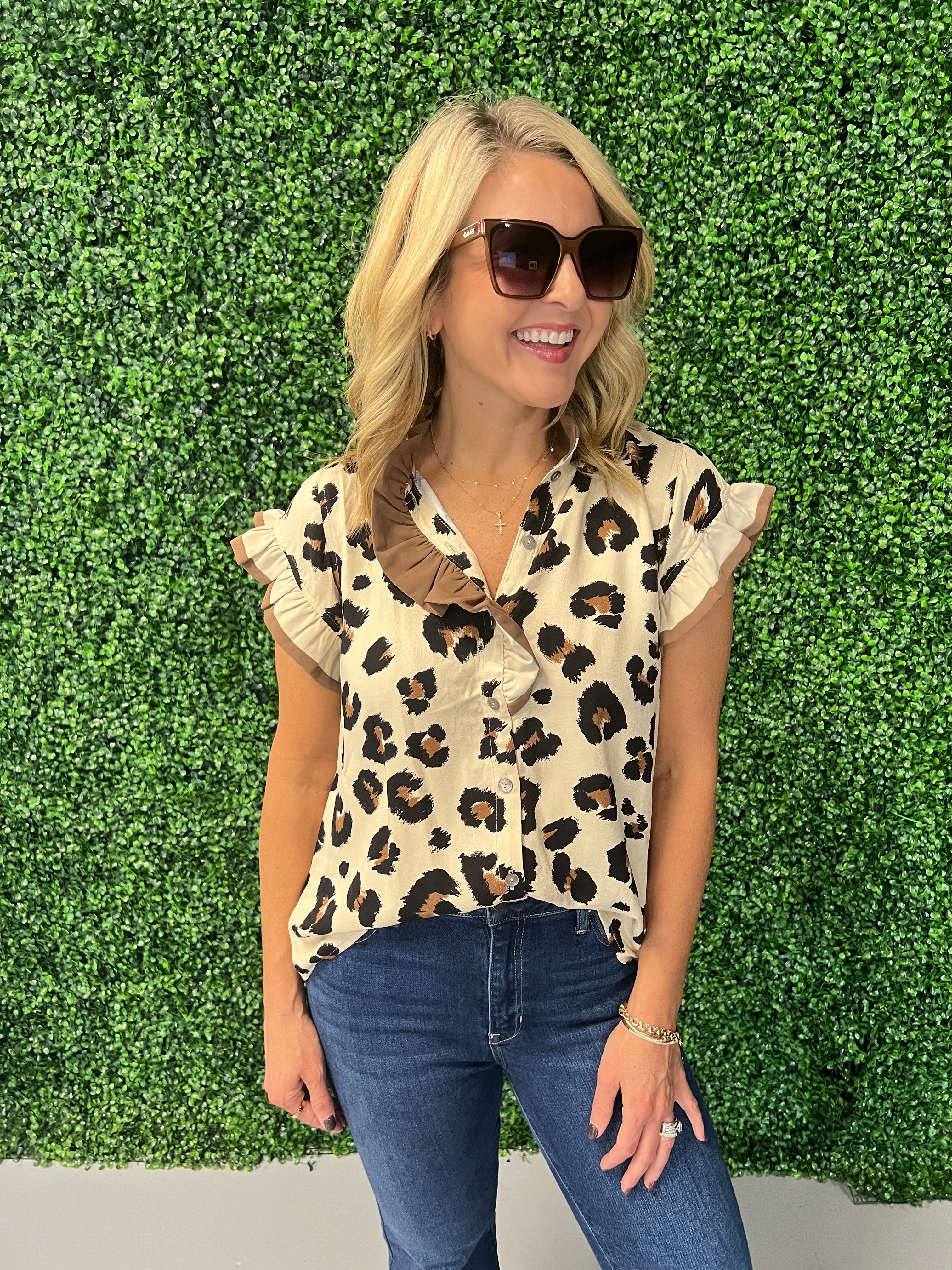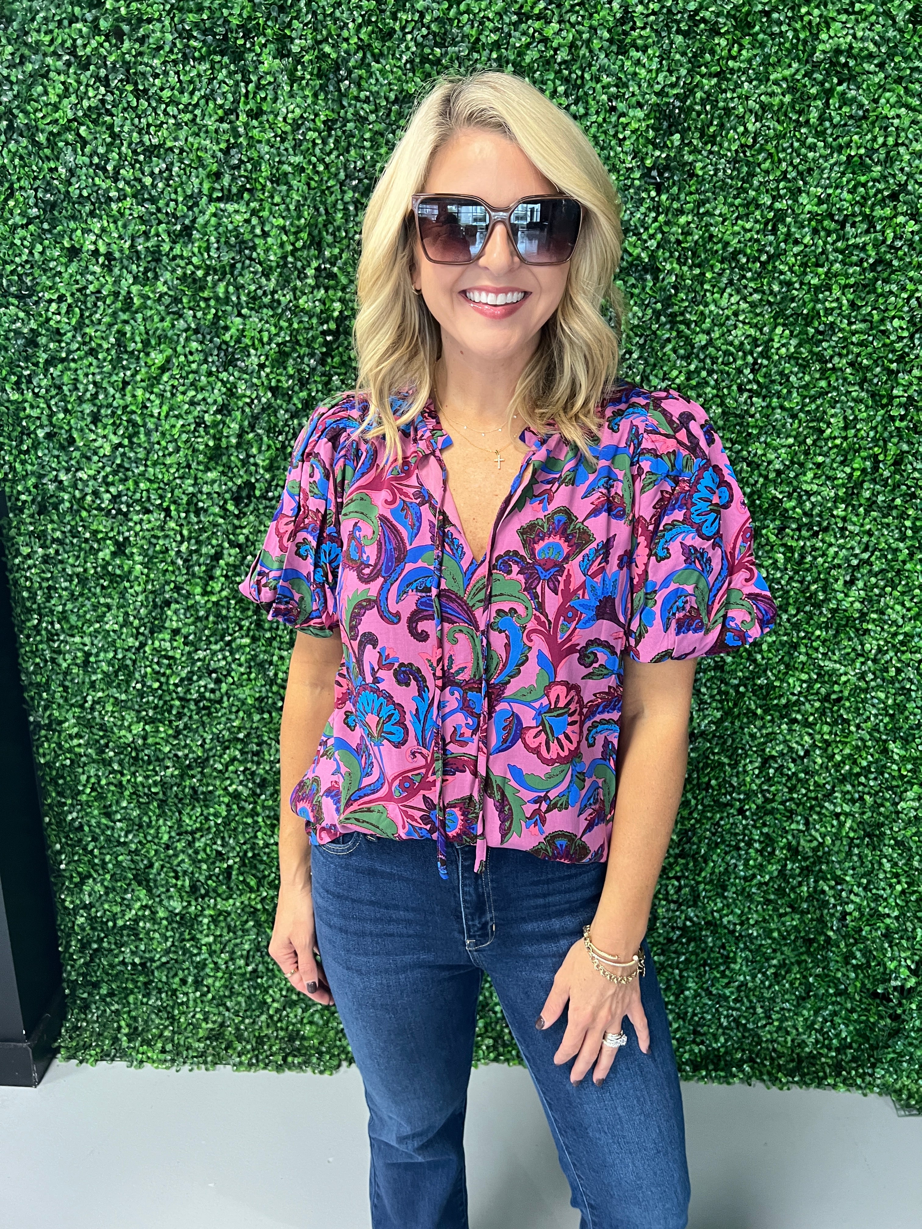 Brown & Blue Mock Neck Striped Cropped Sweater