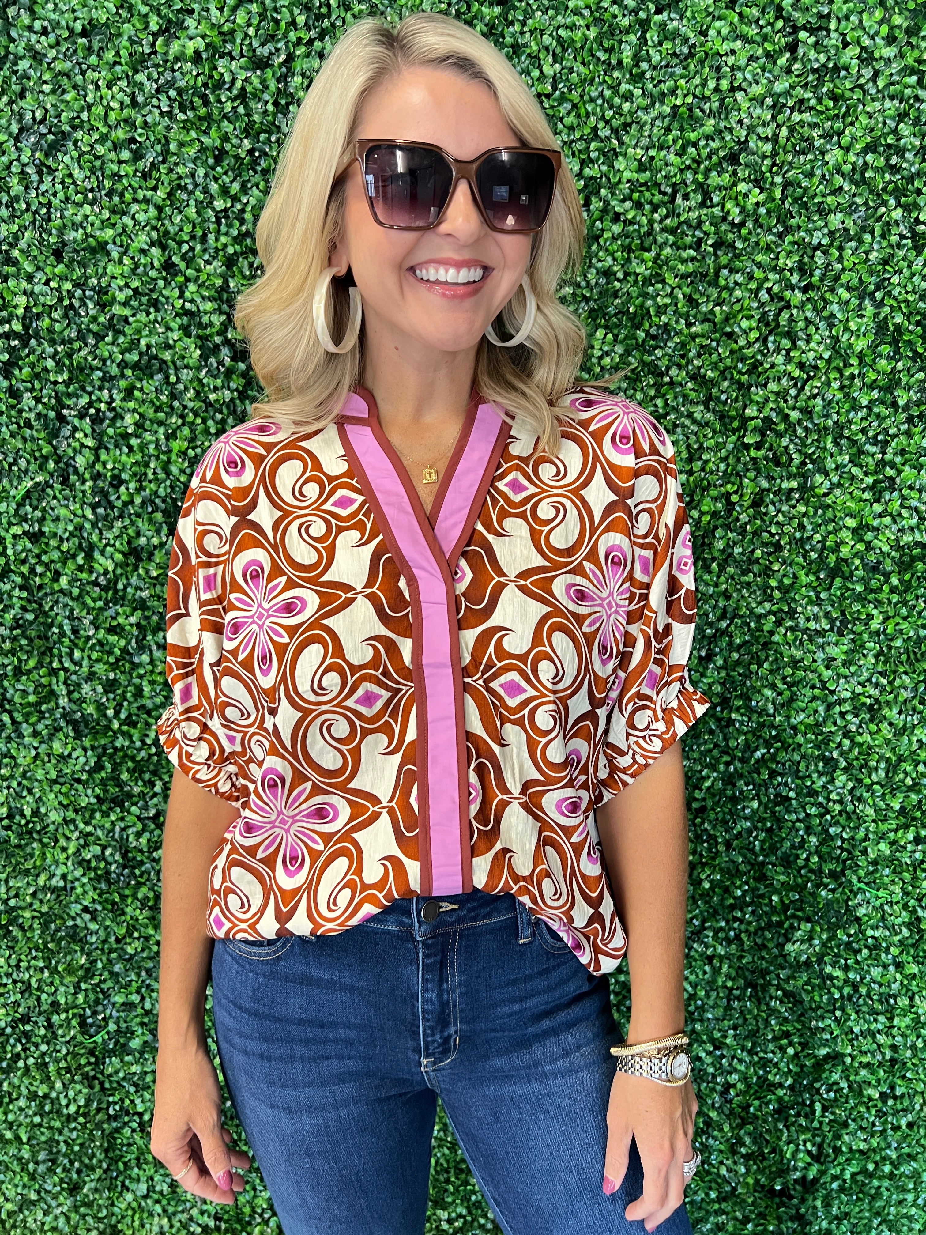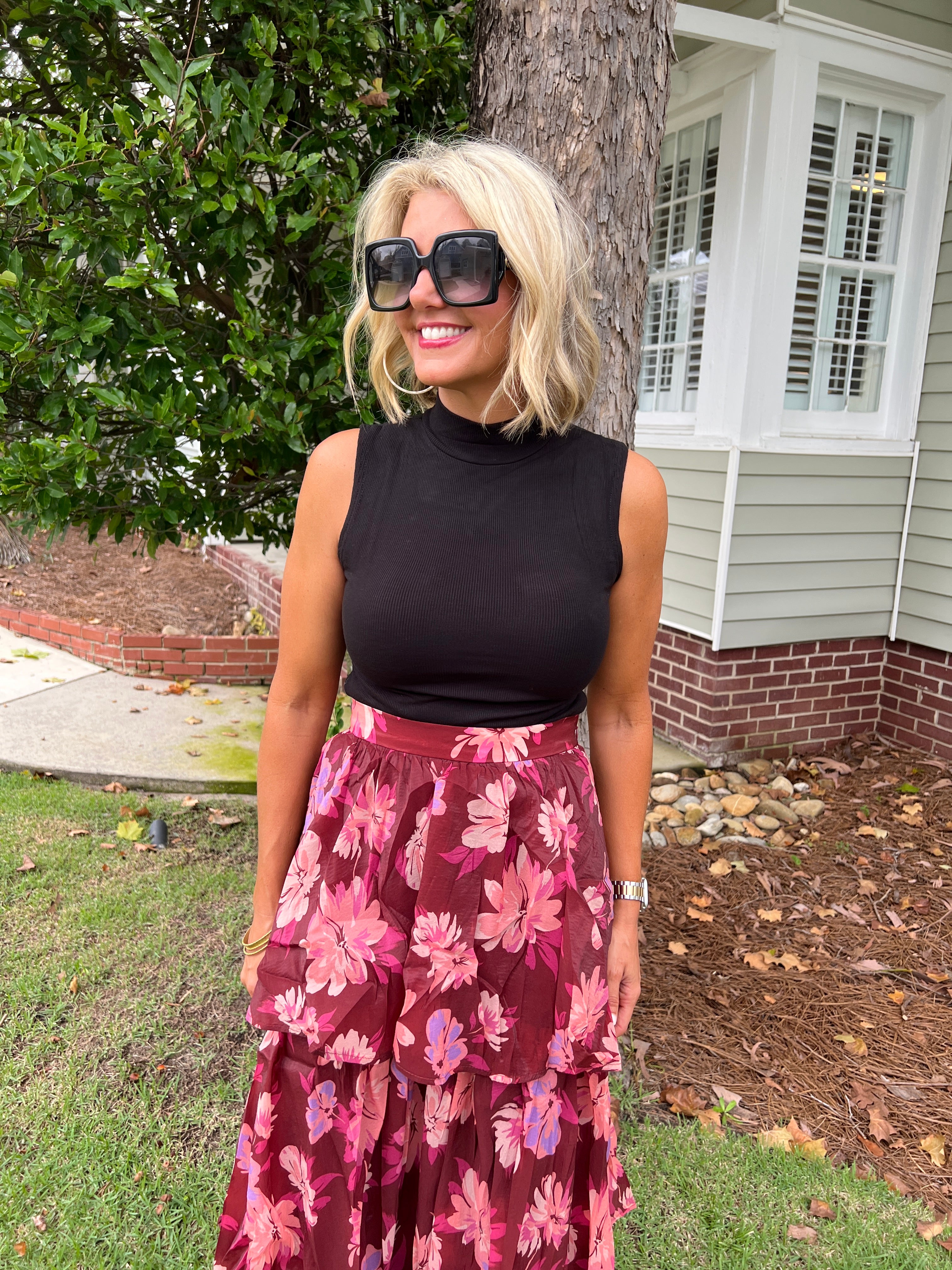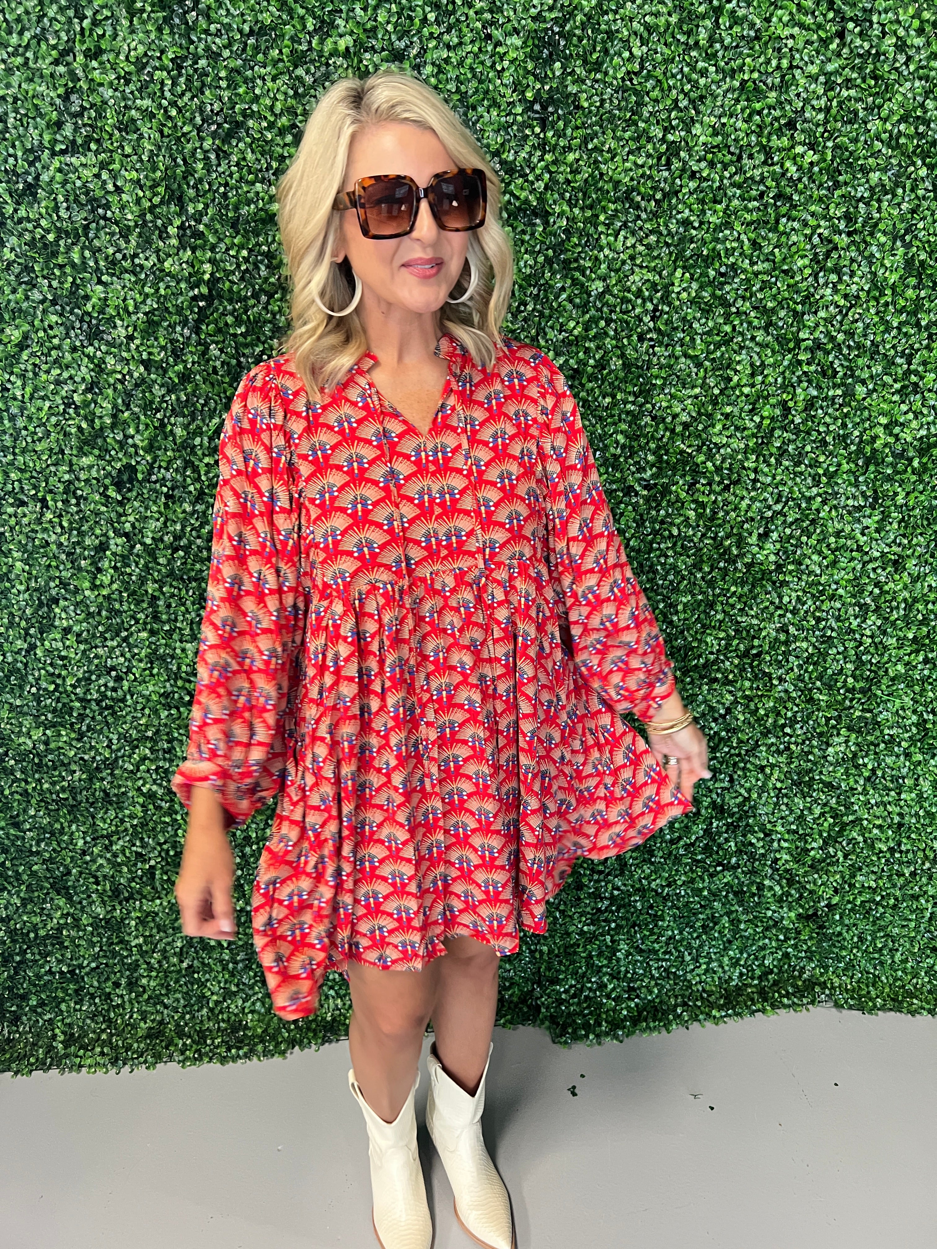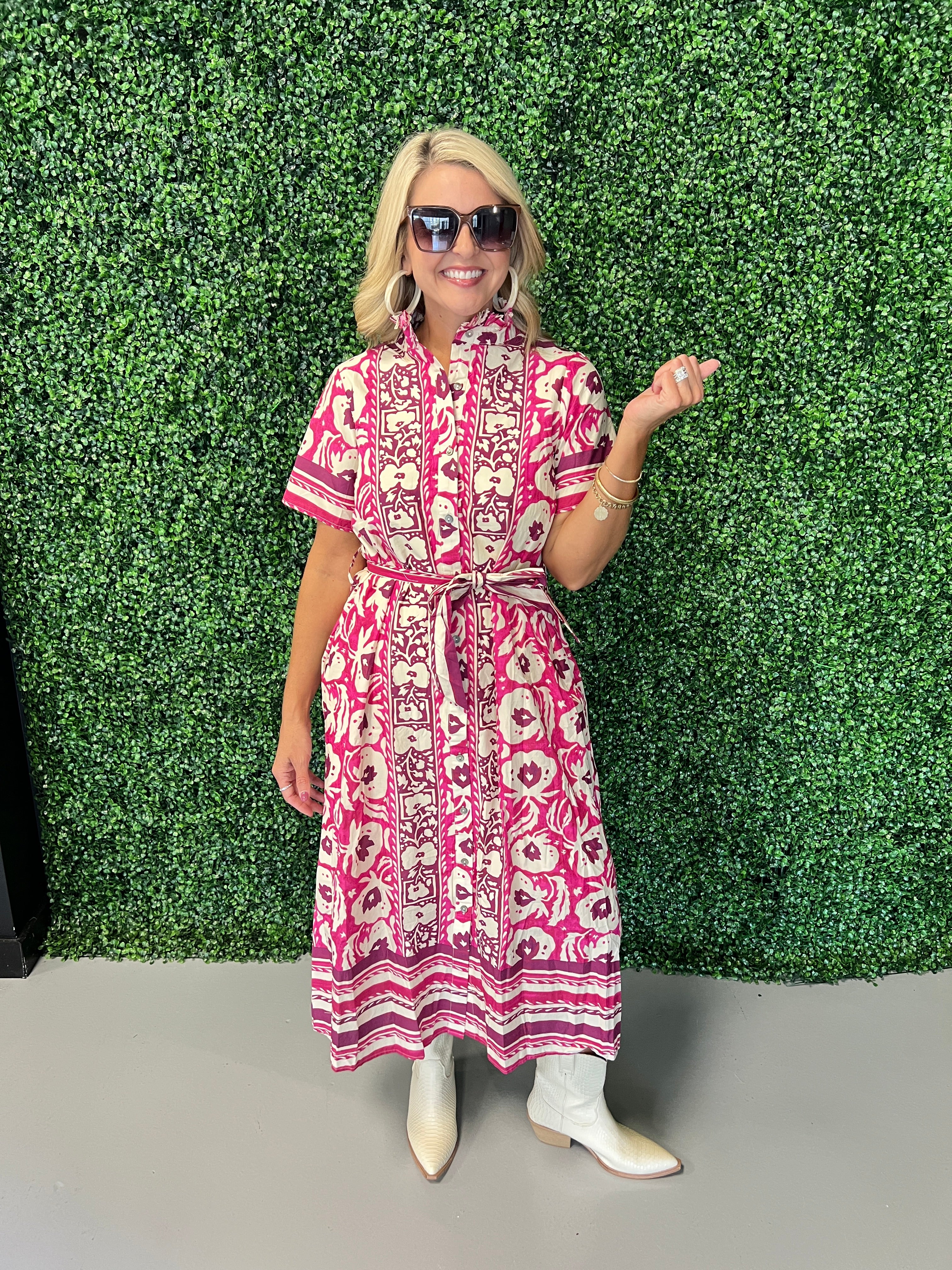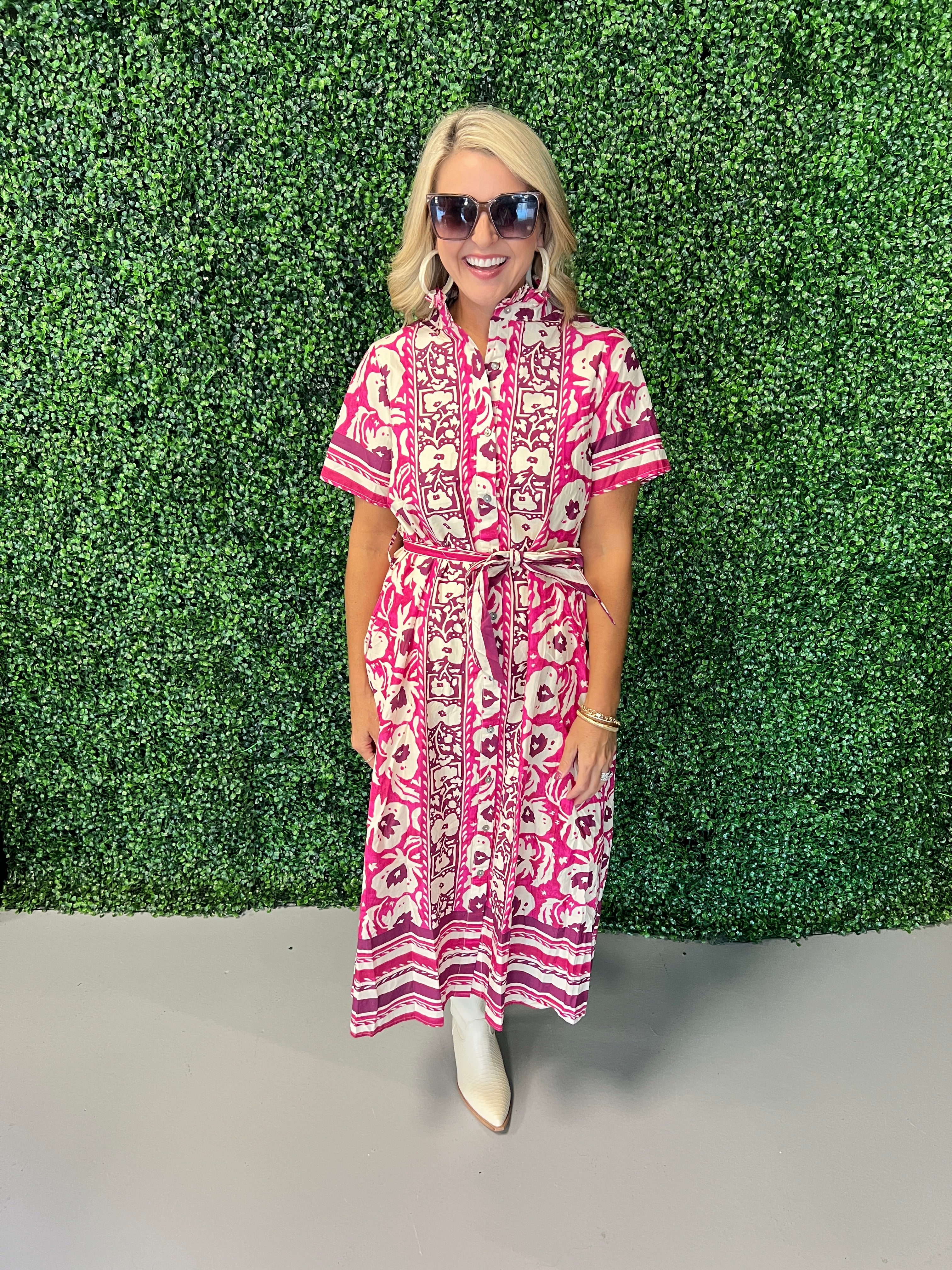 Coral Puff Sleeve Smocked Floral Midi Dress