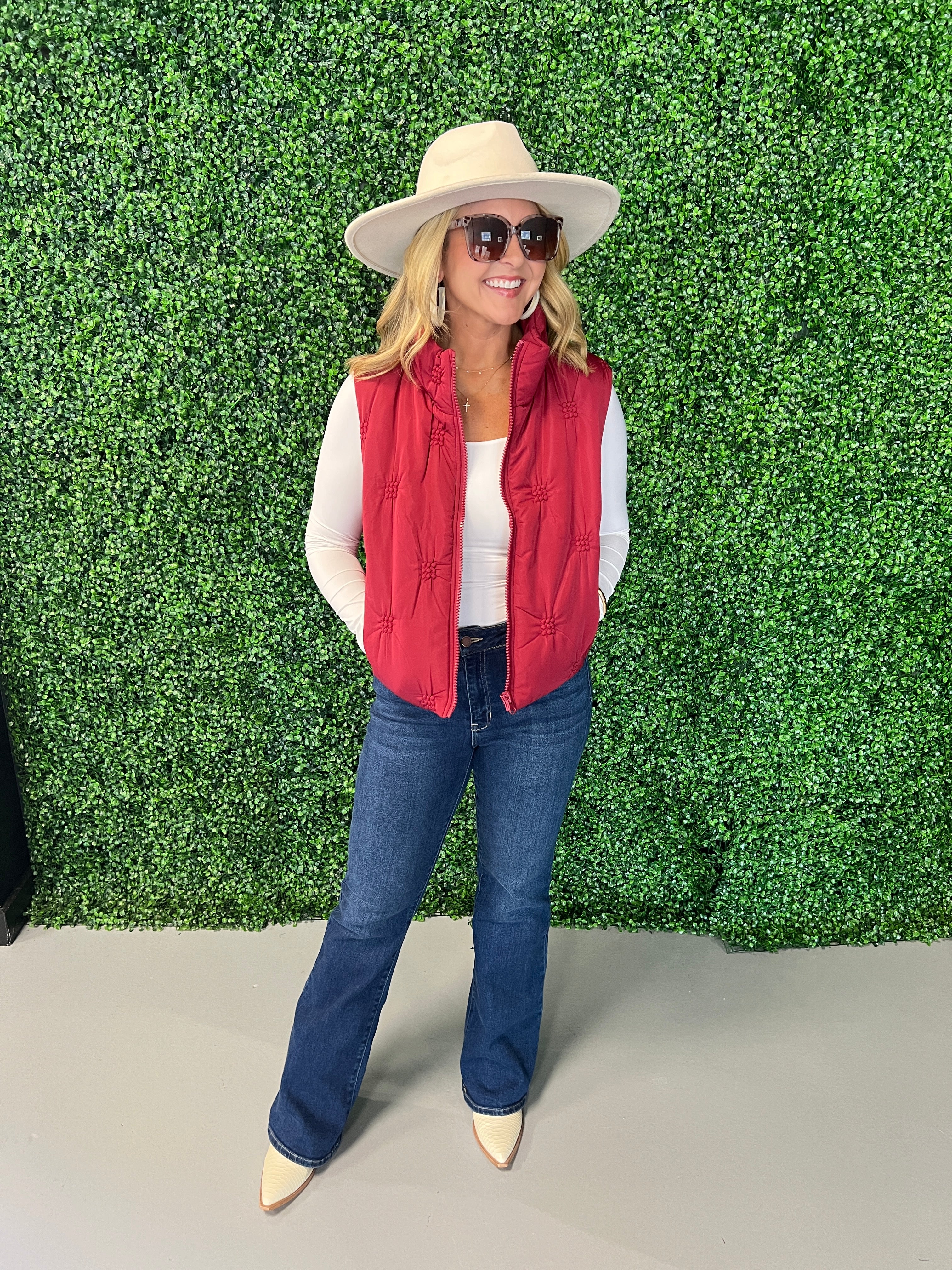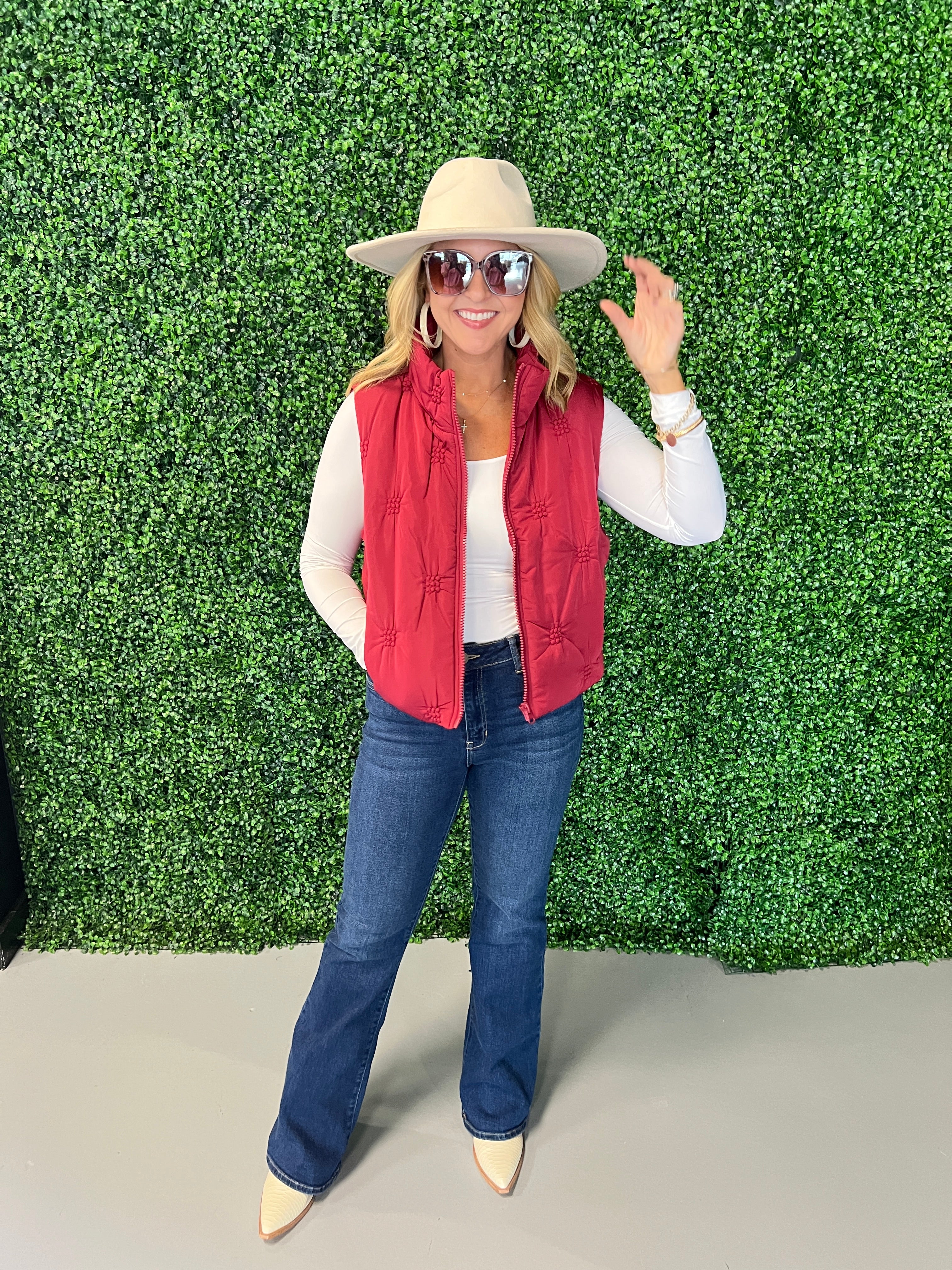 Red V-neck Buttoned Ribbed Long Sleeve Cardigan