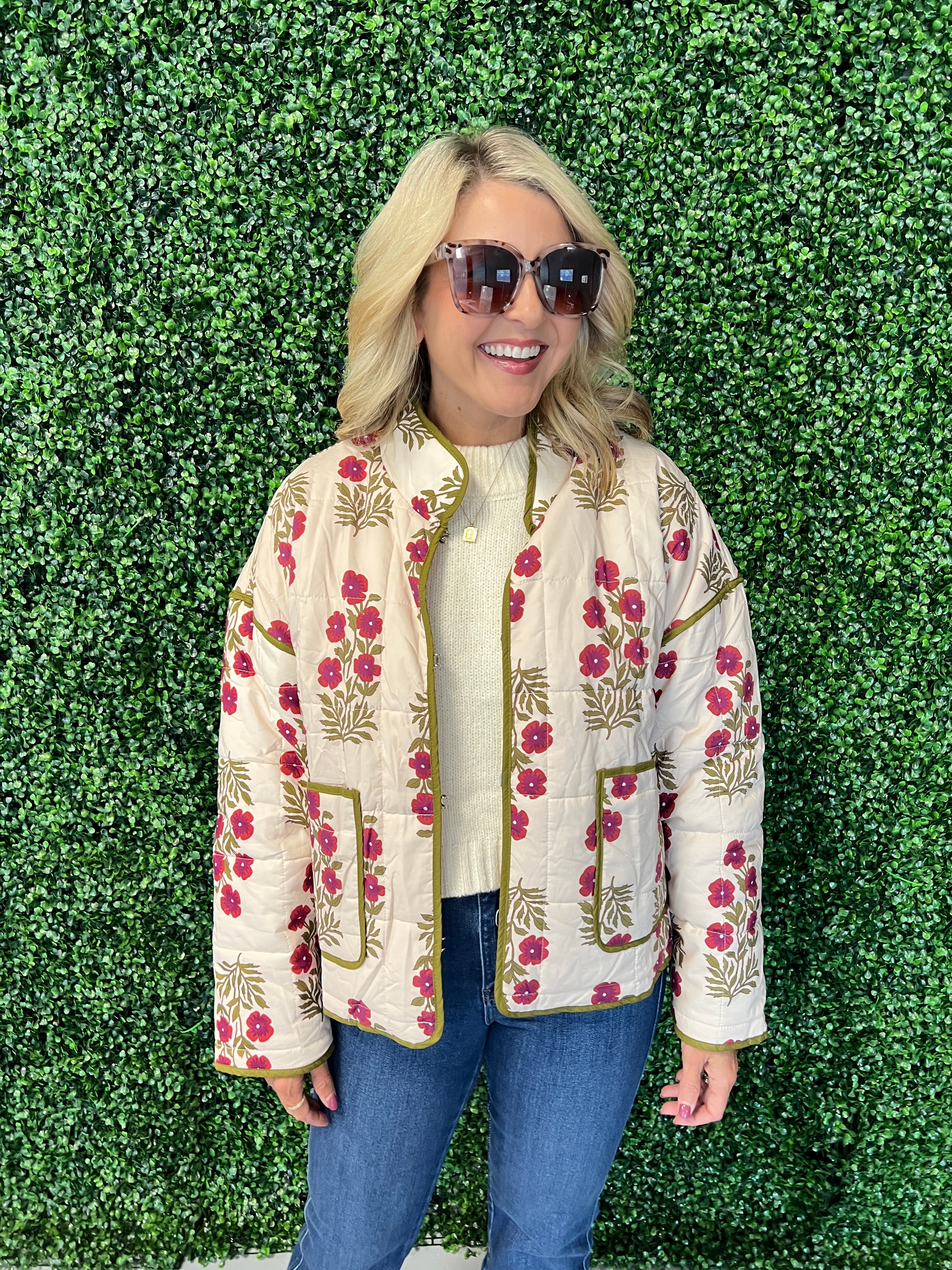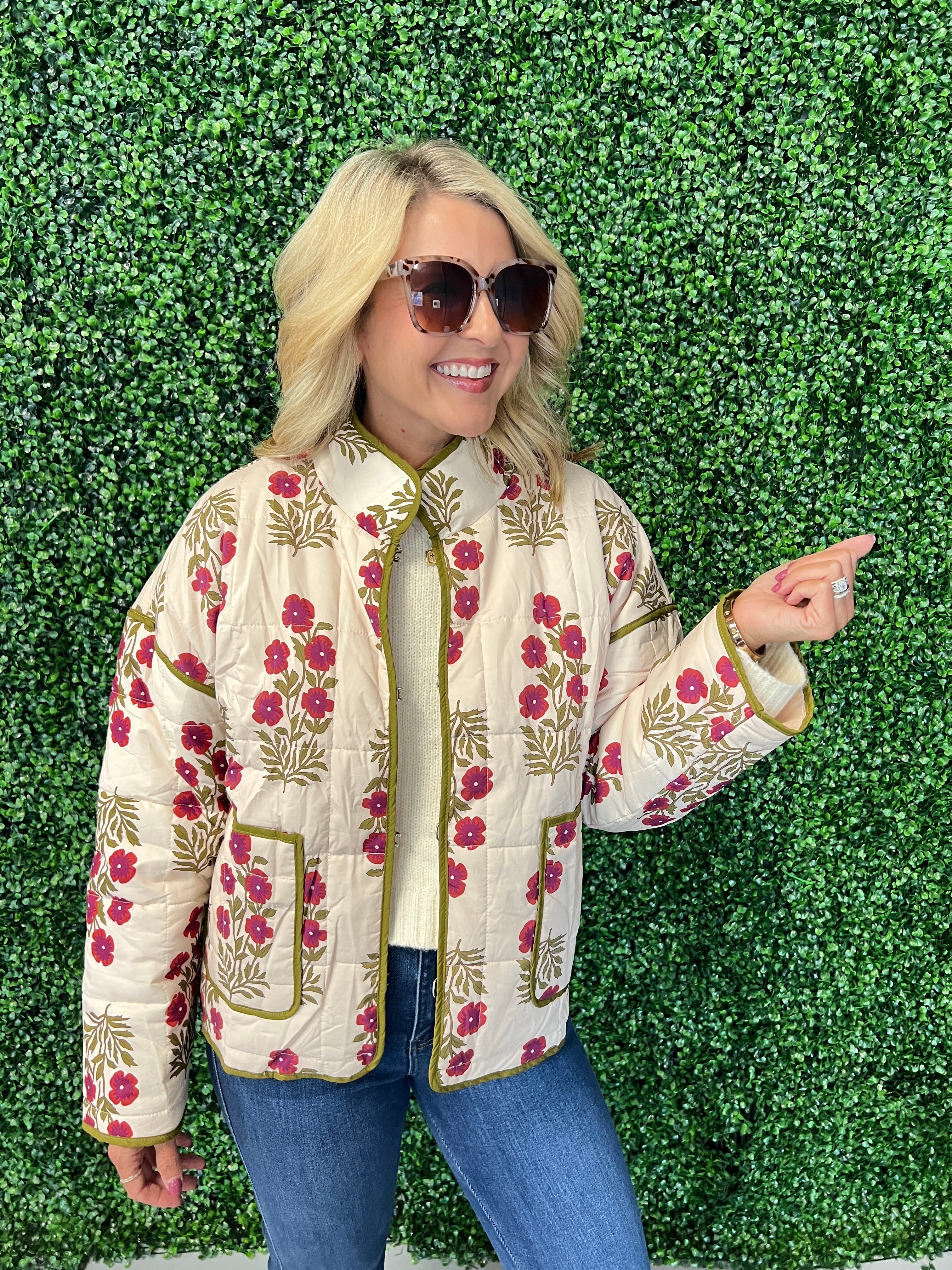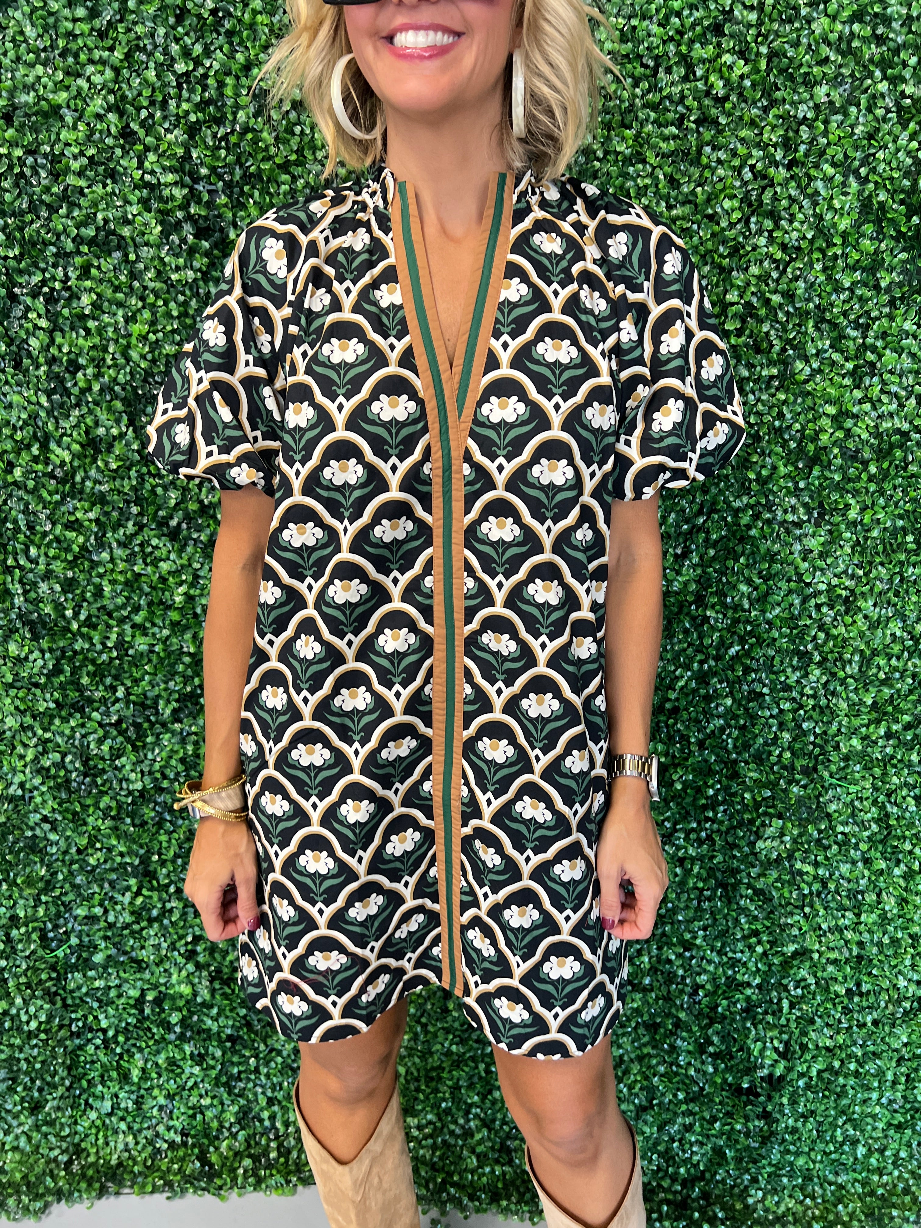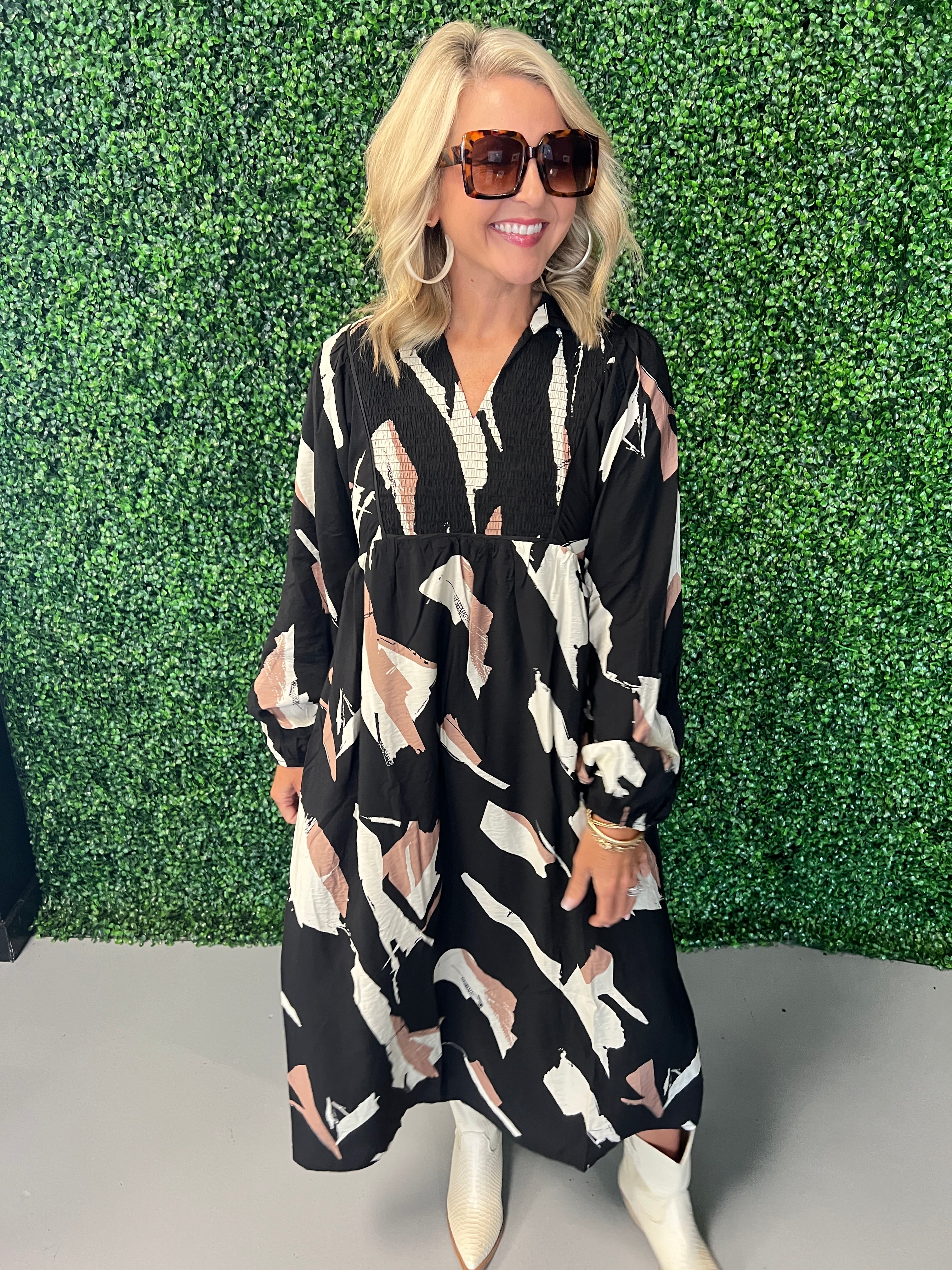 Sage Puff Sleeve Smocked Floral Midi Dress