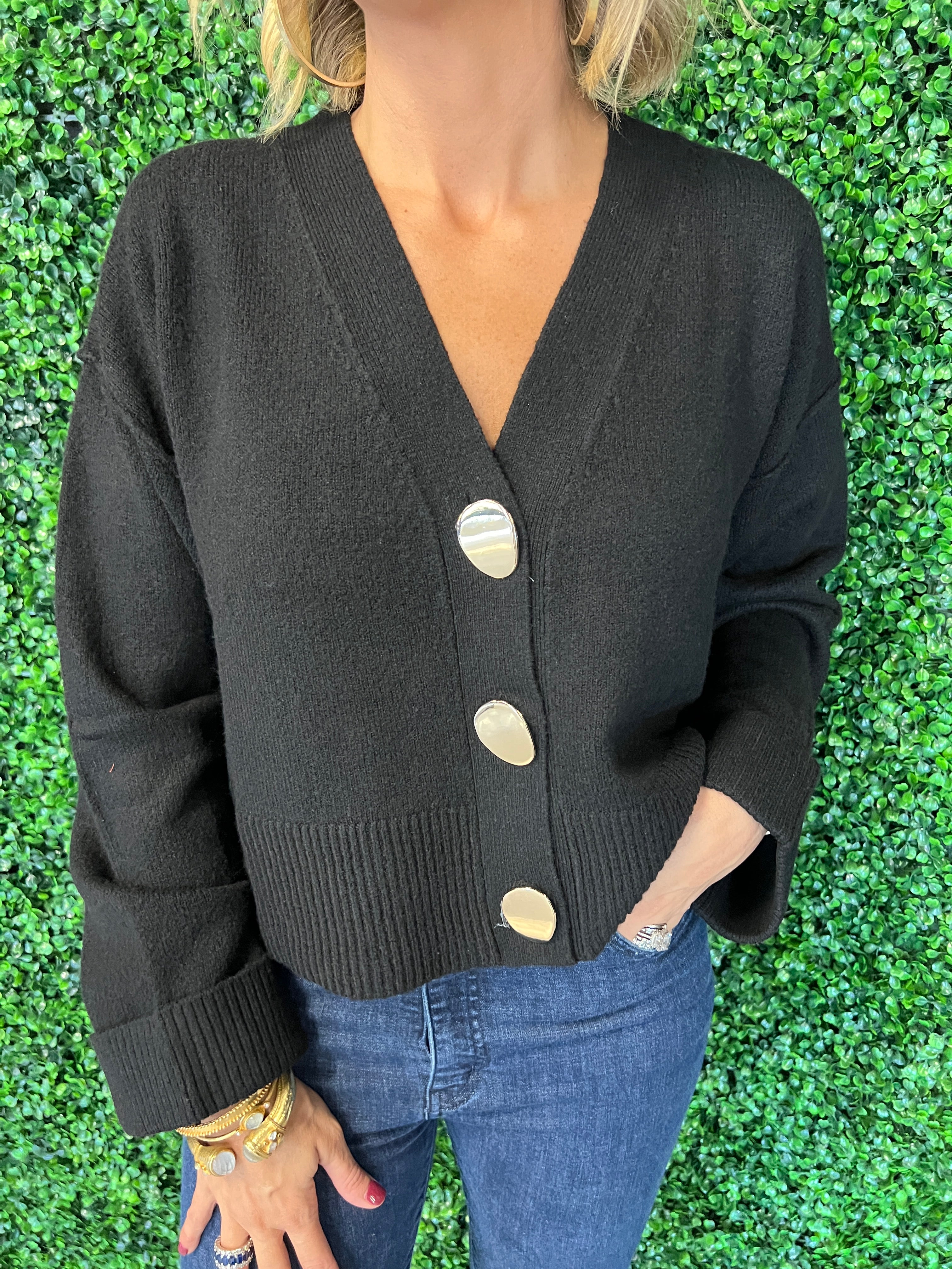 V-neck Buttoned Ribbed Long Sleeve Cardigan
