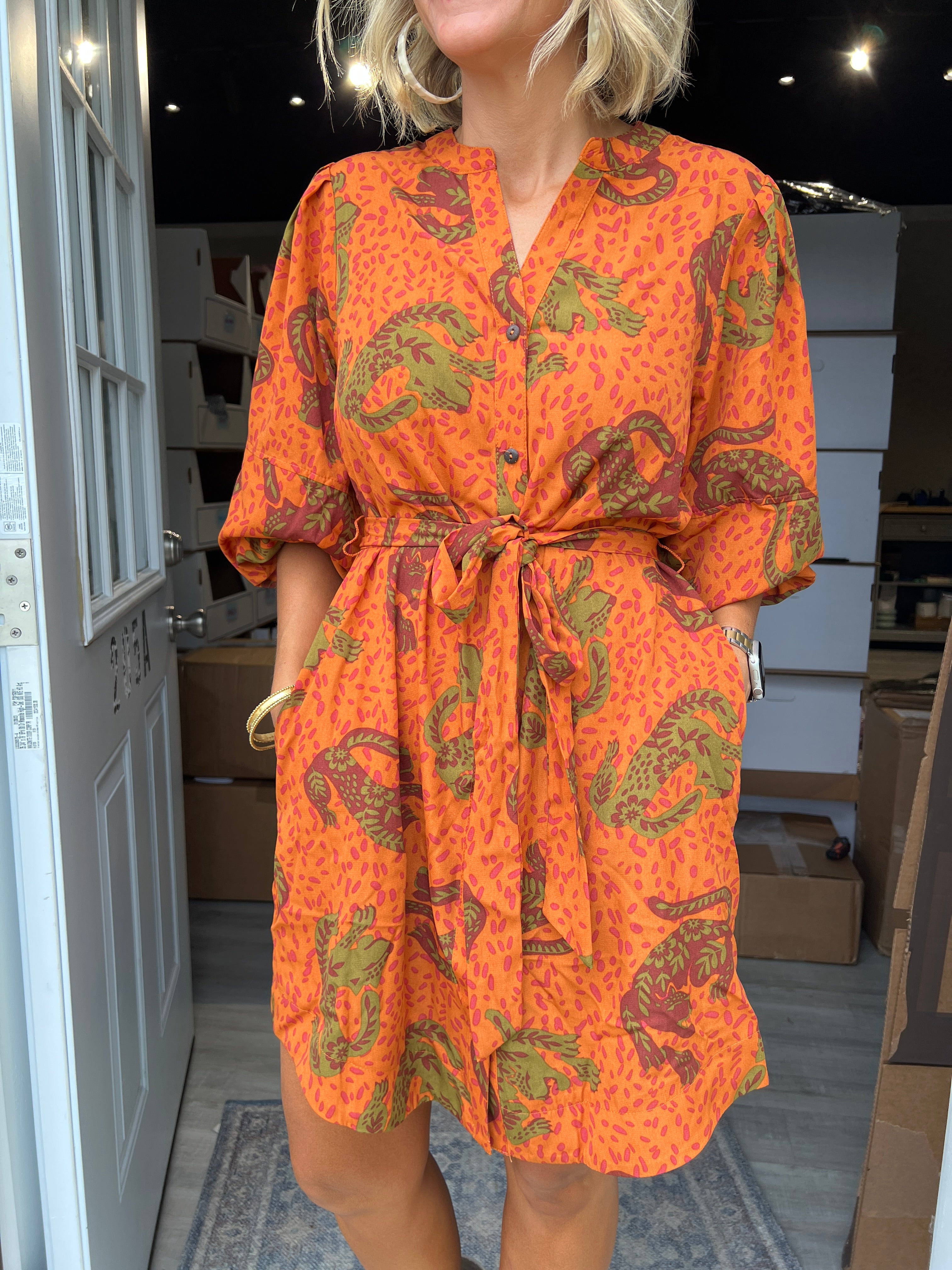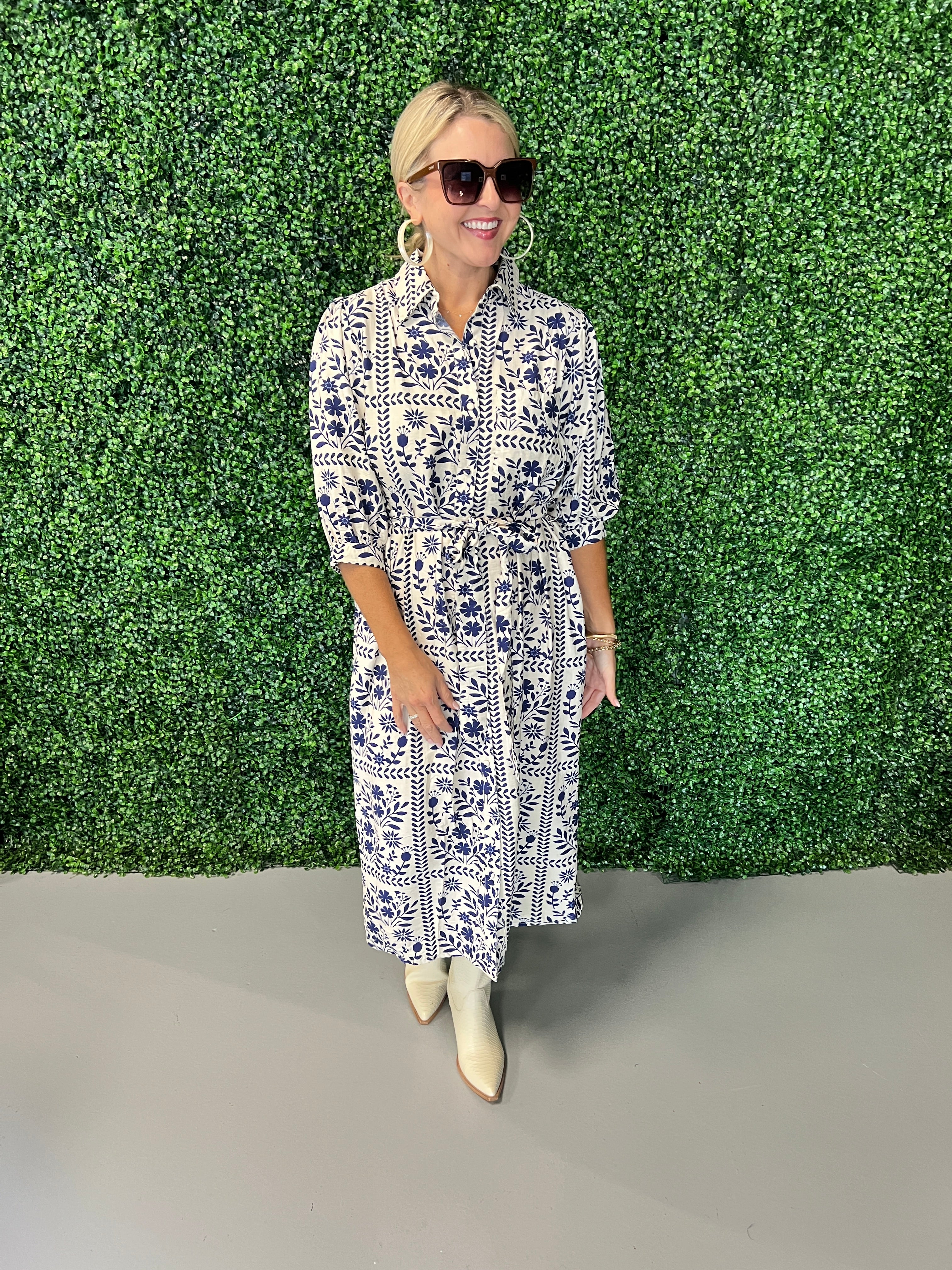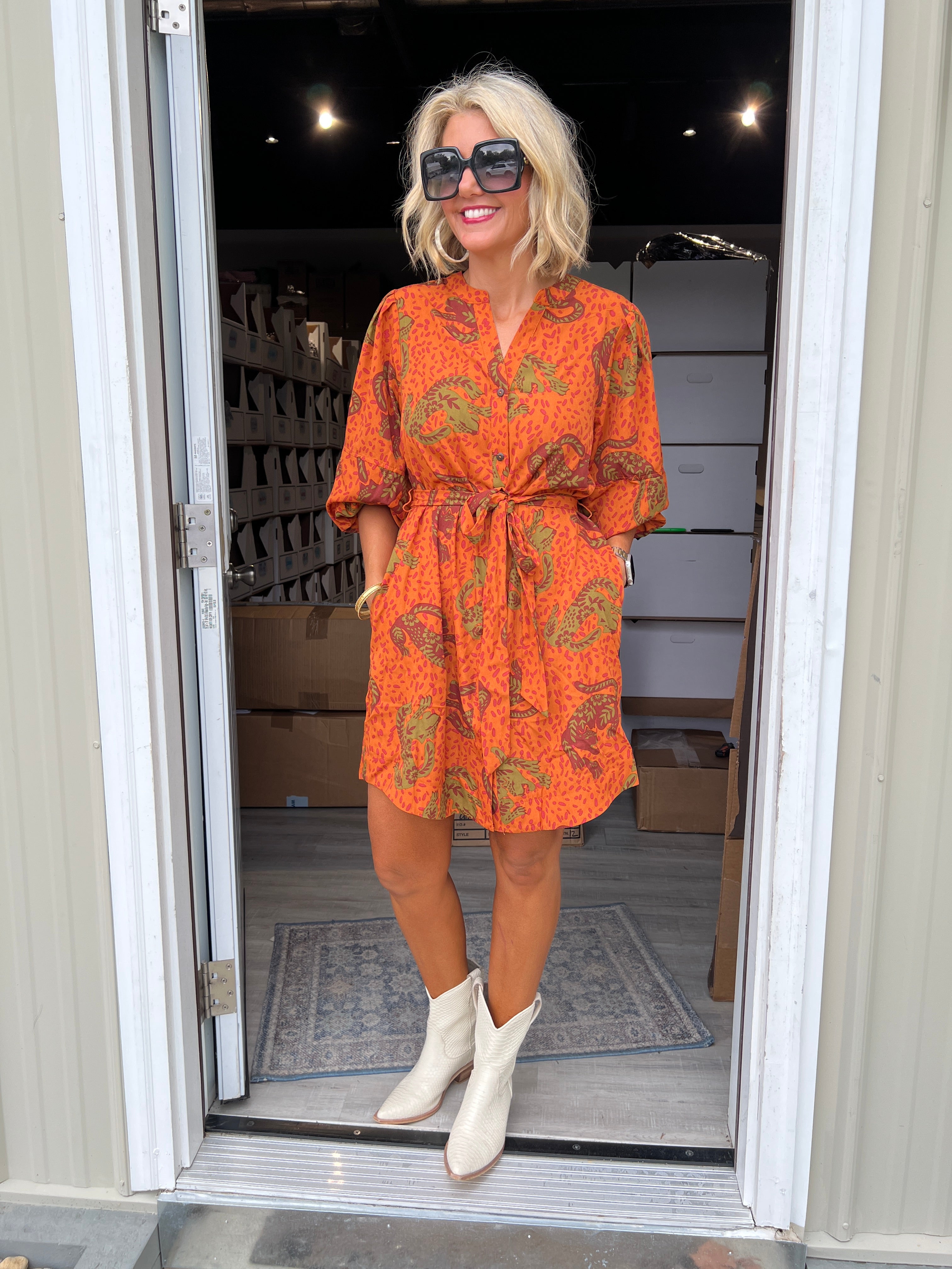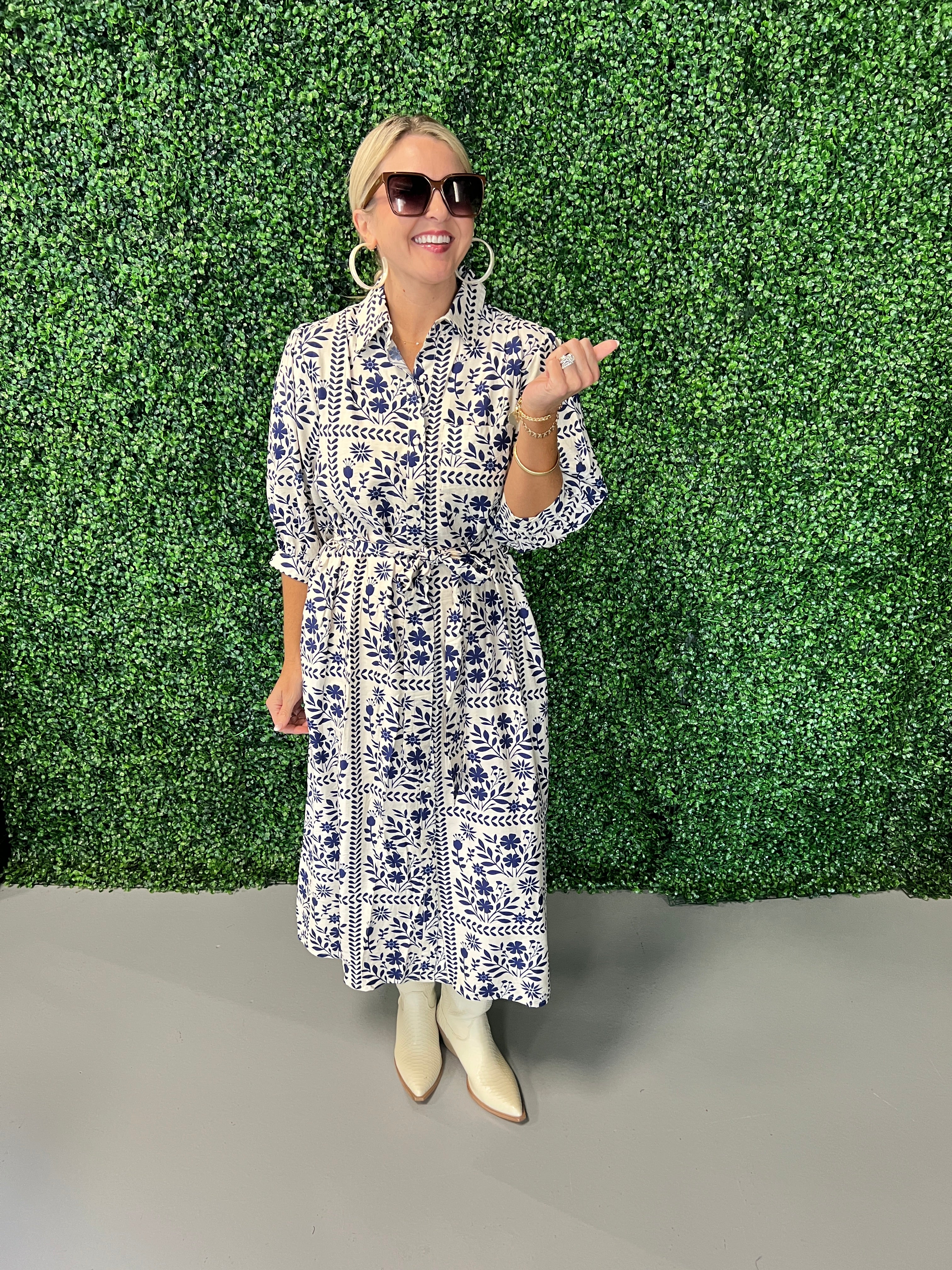 Geo Print Satin Tie Waist Button Down Shirt Dress