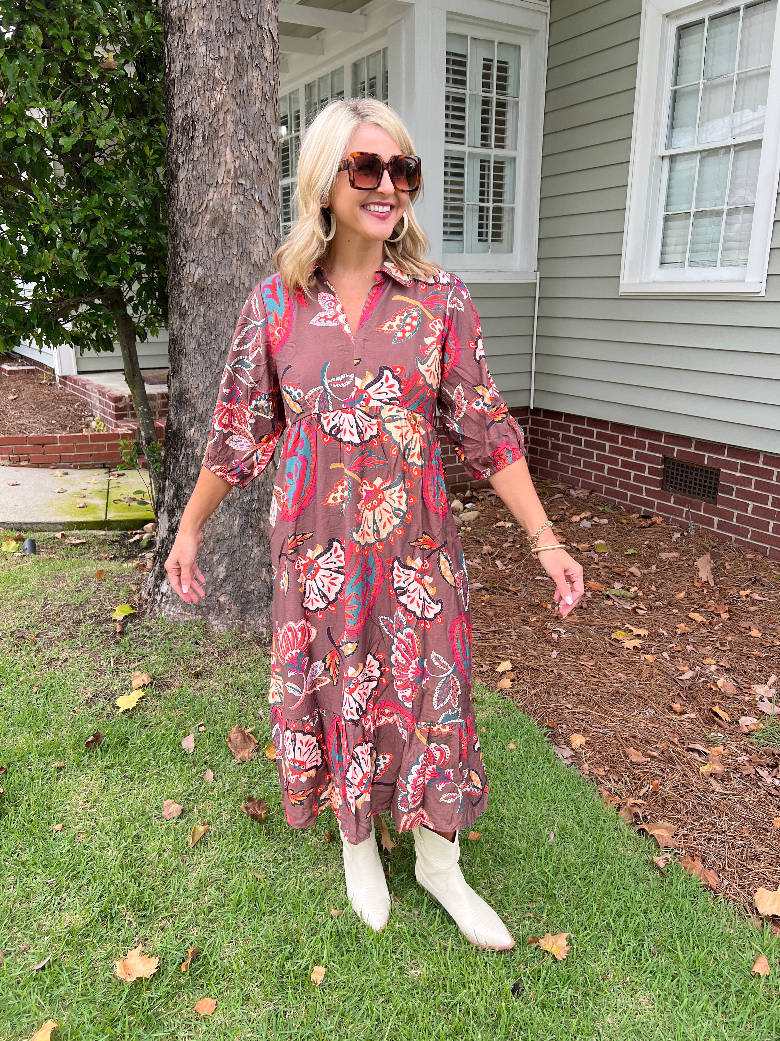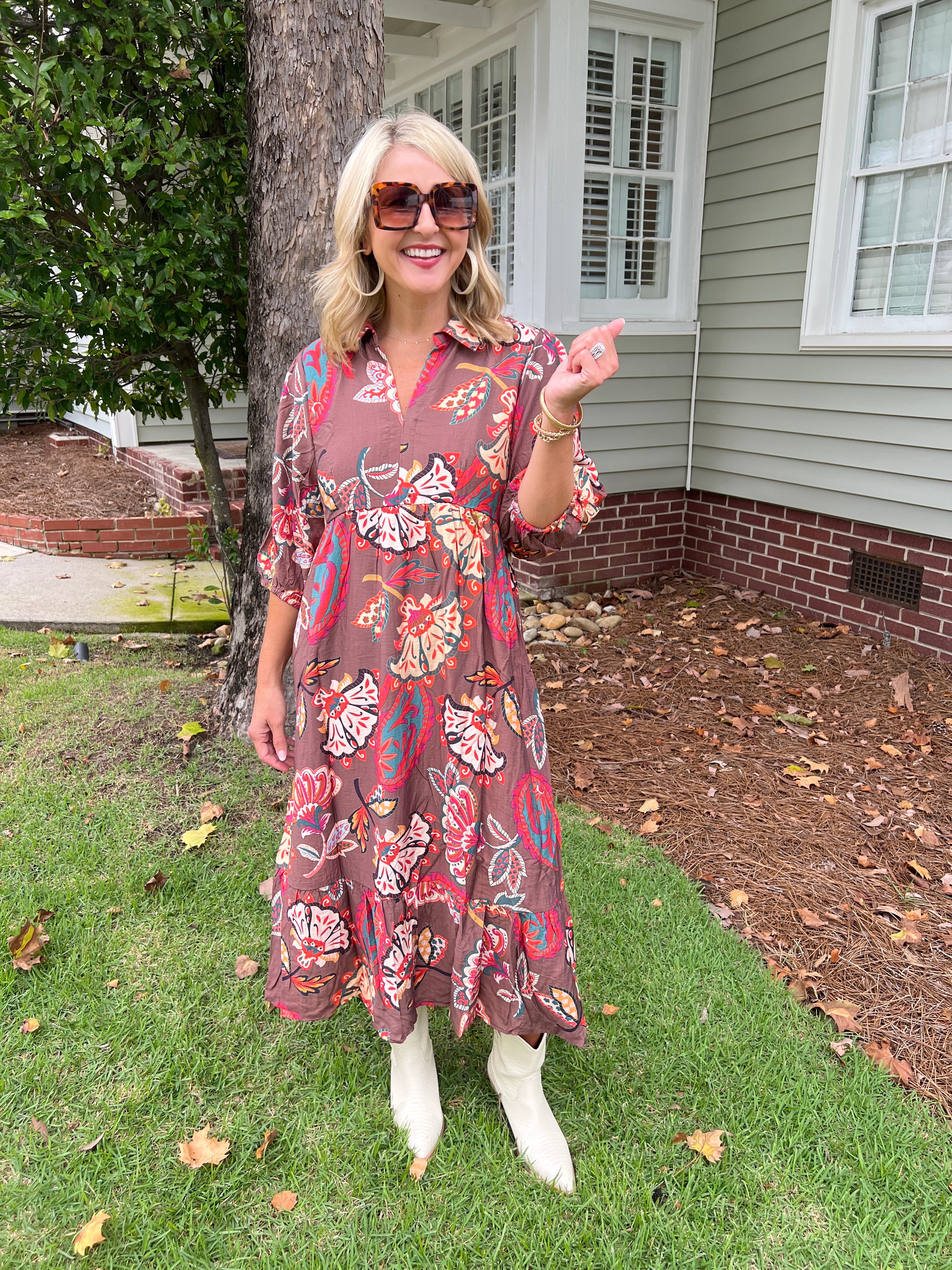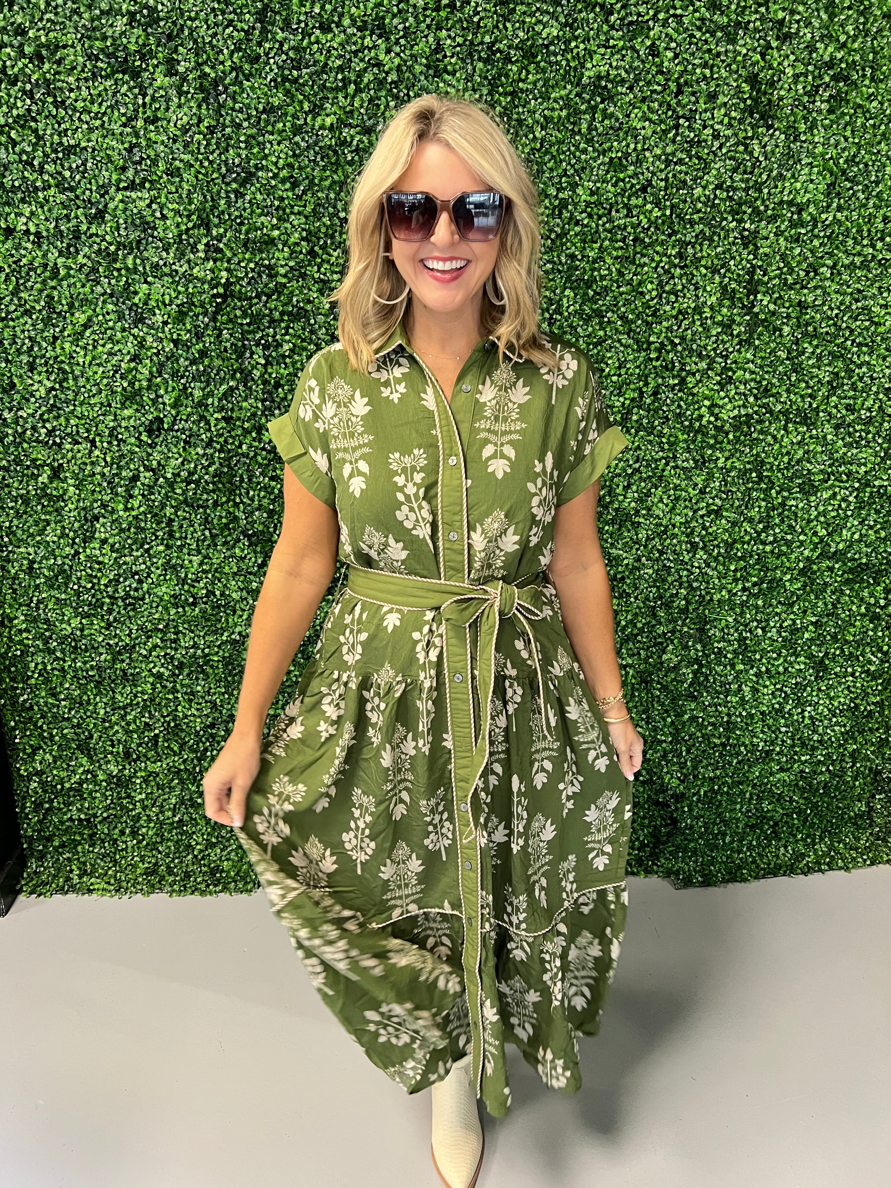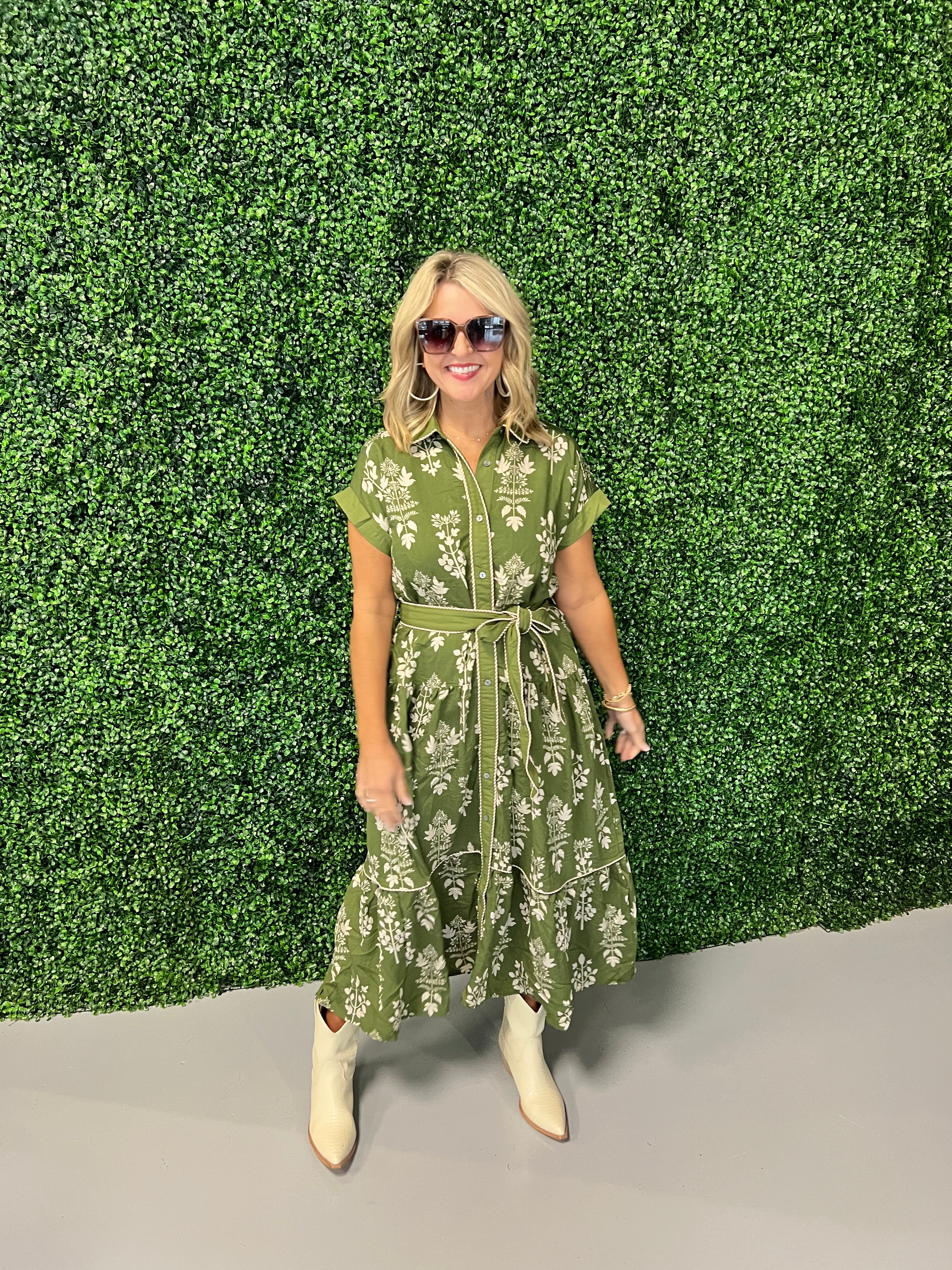 Geo Print Satin Tie Waist Button Down Shirt Dress