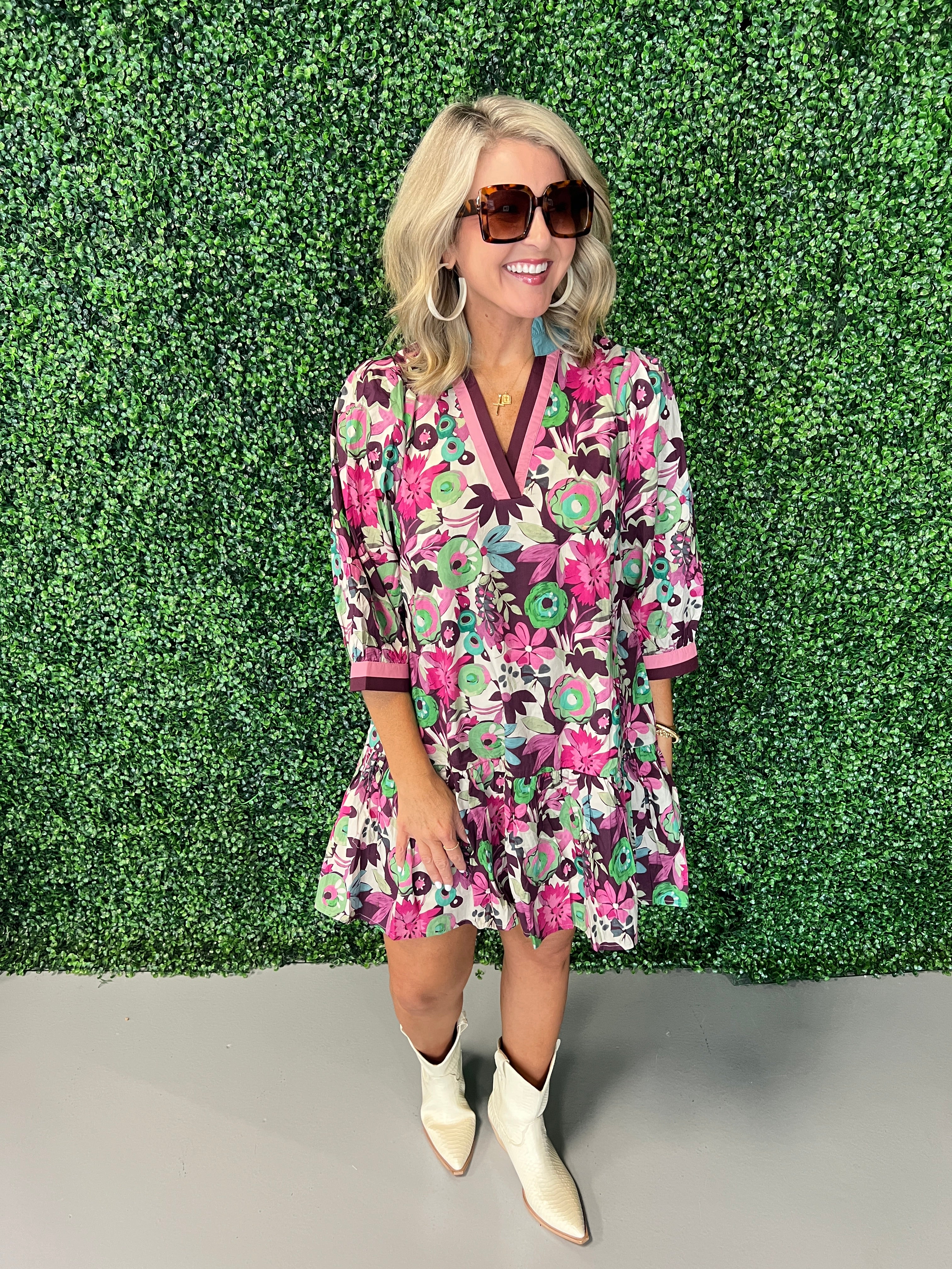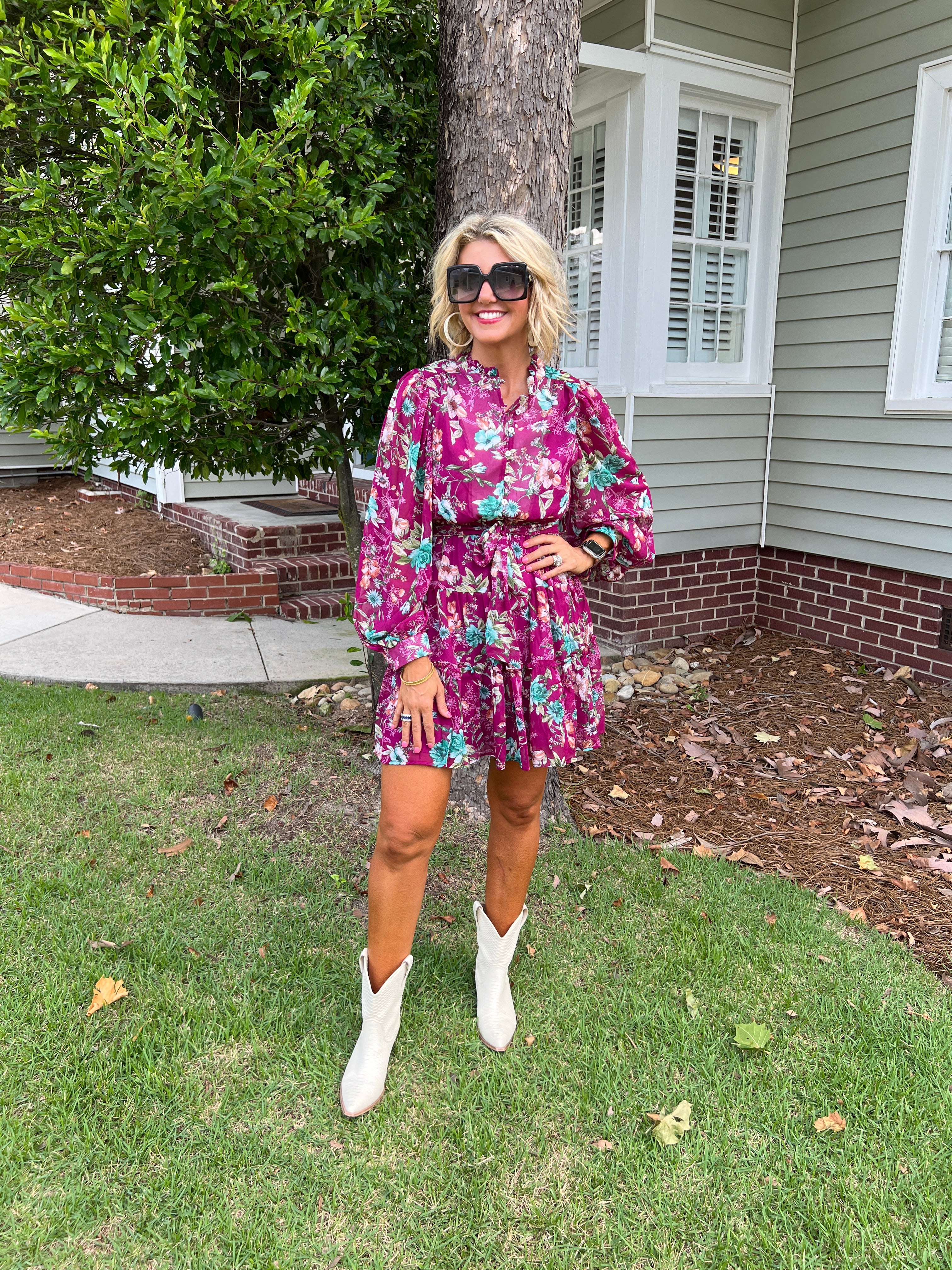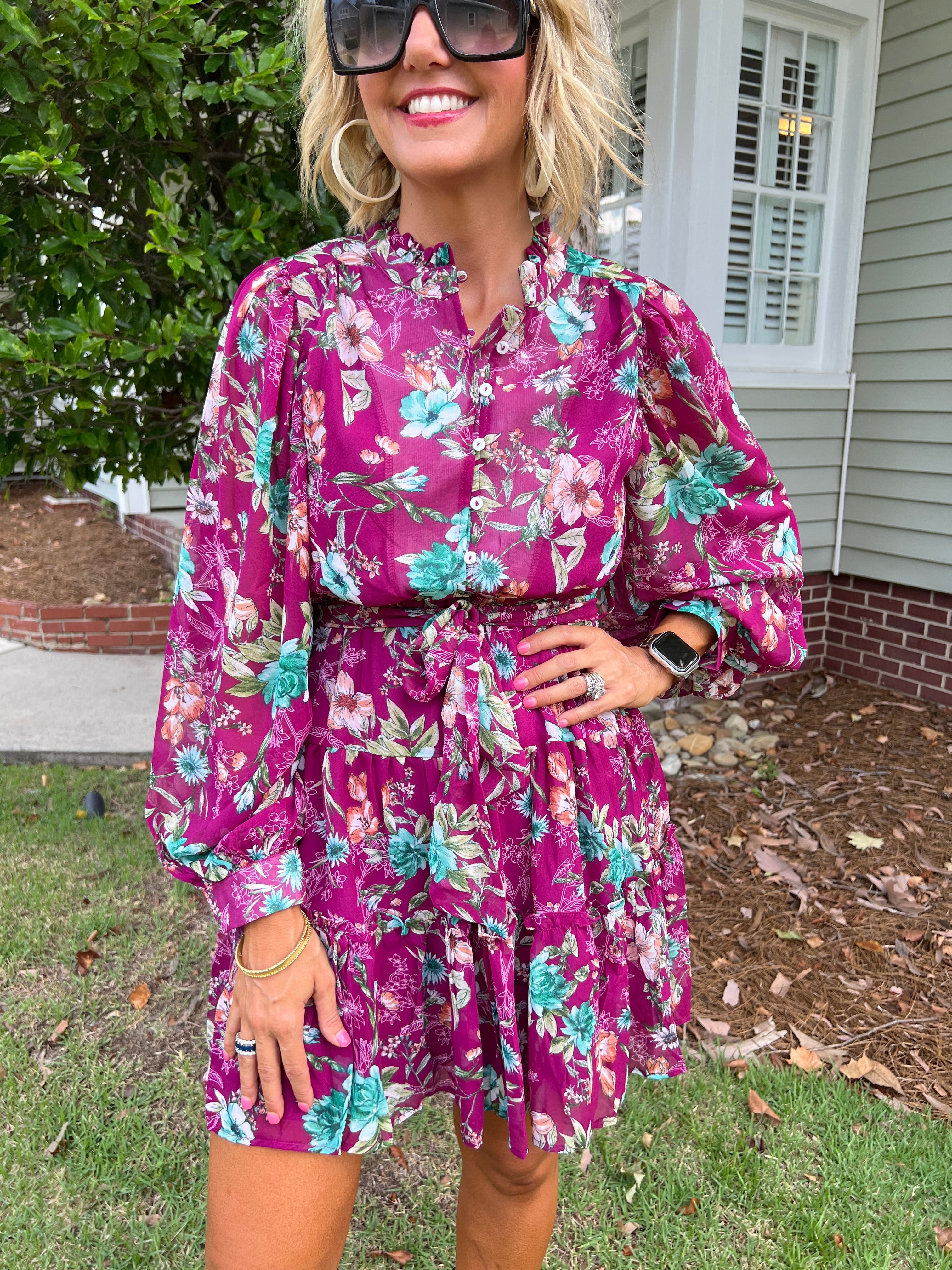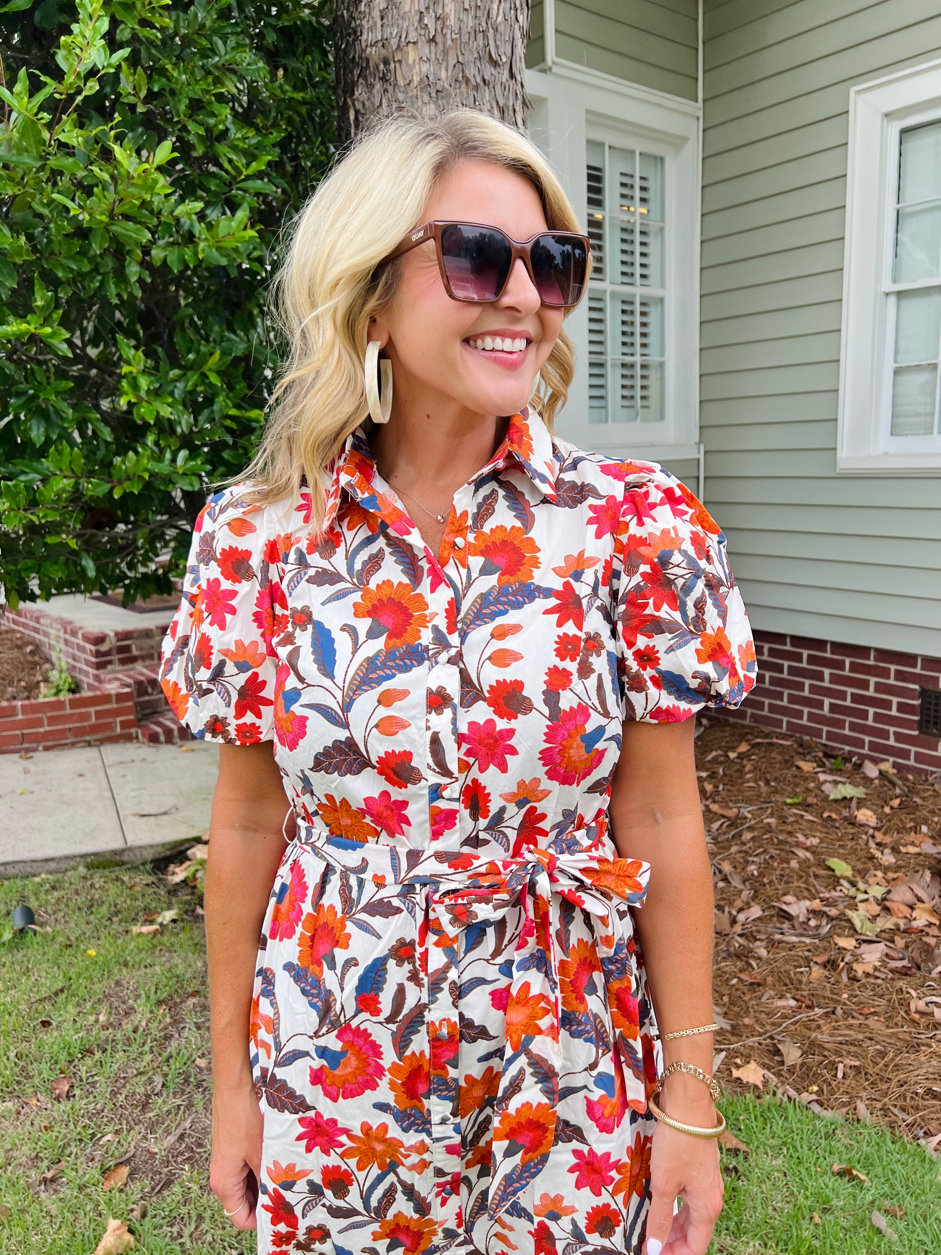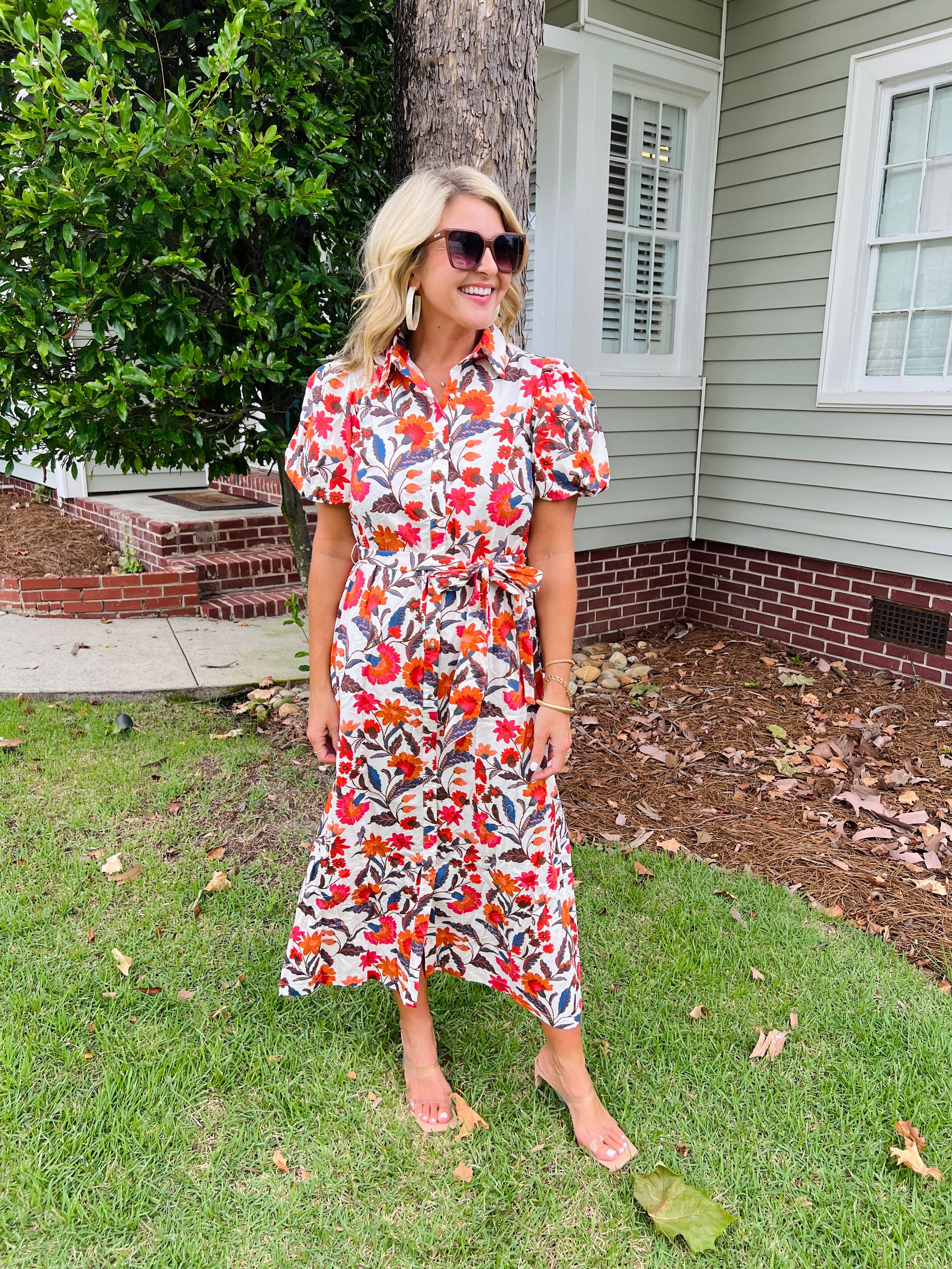 Floral Puff Sleeve Button Down Mini Dress