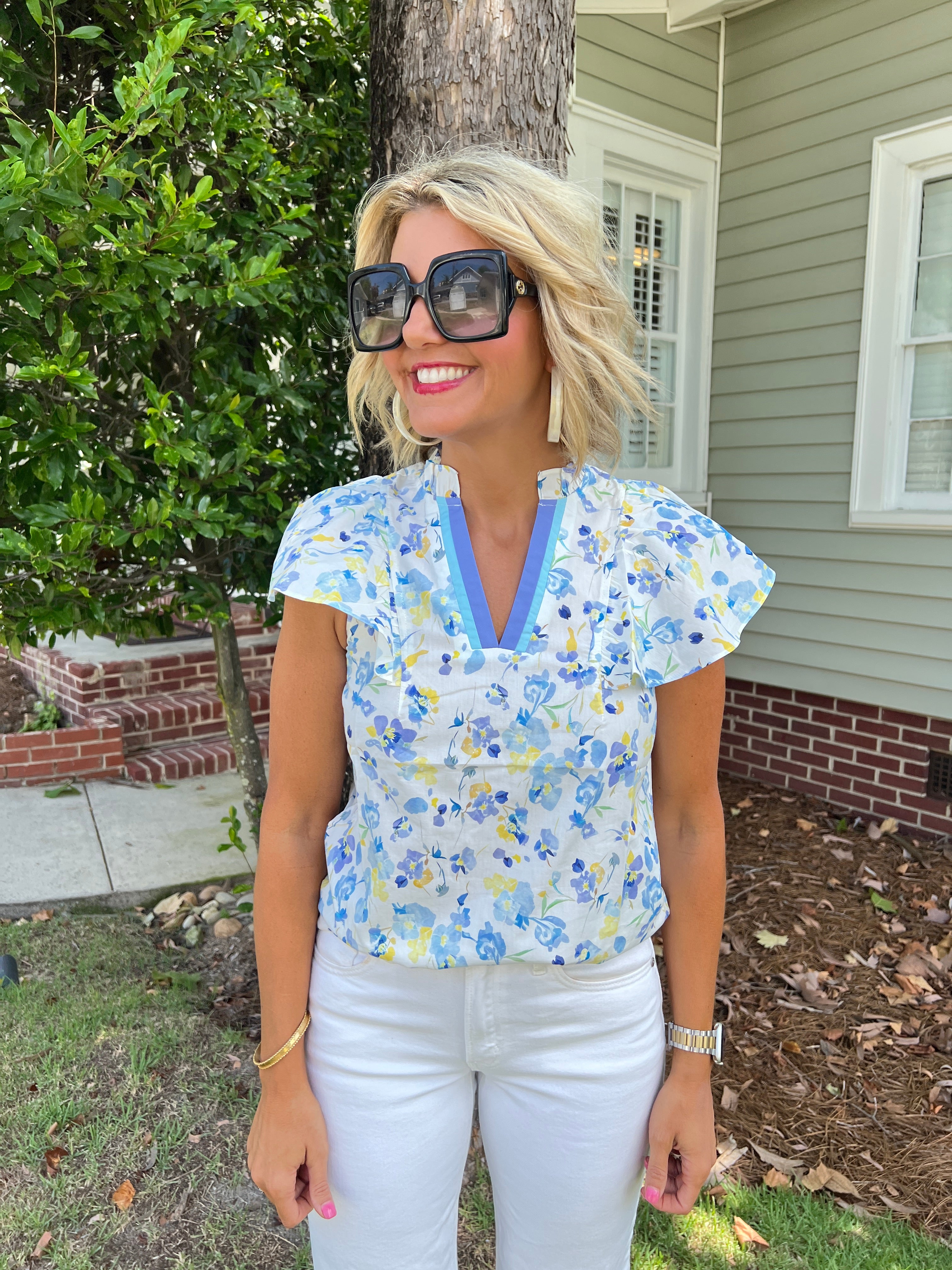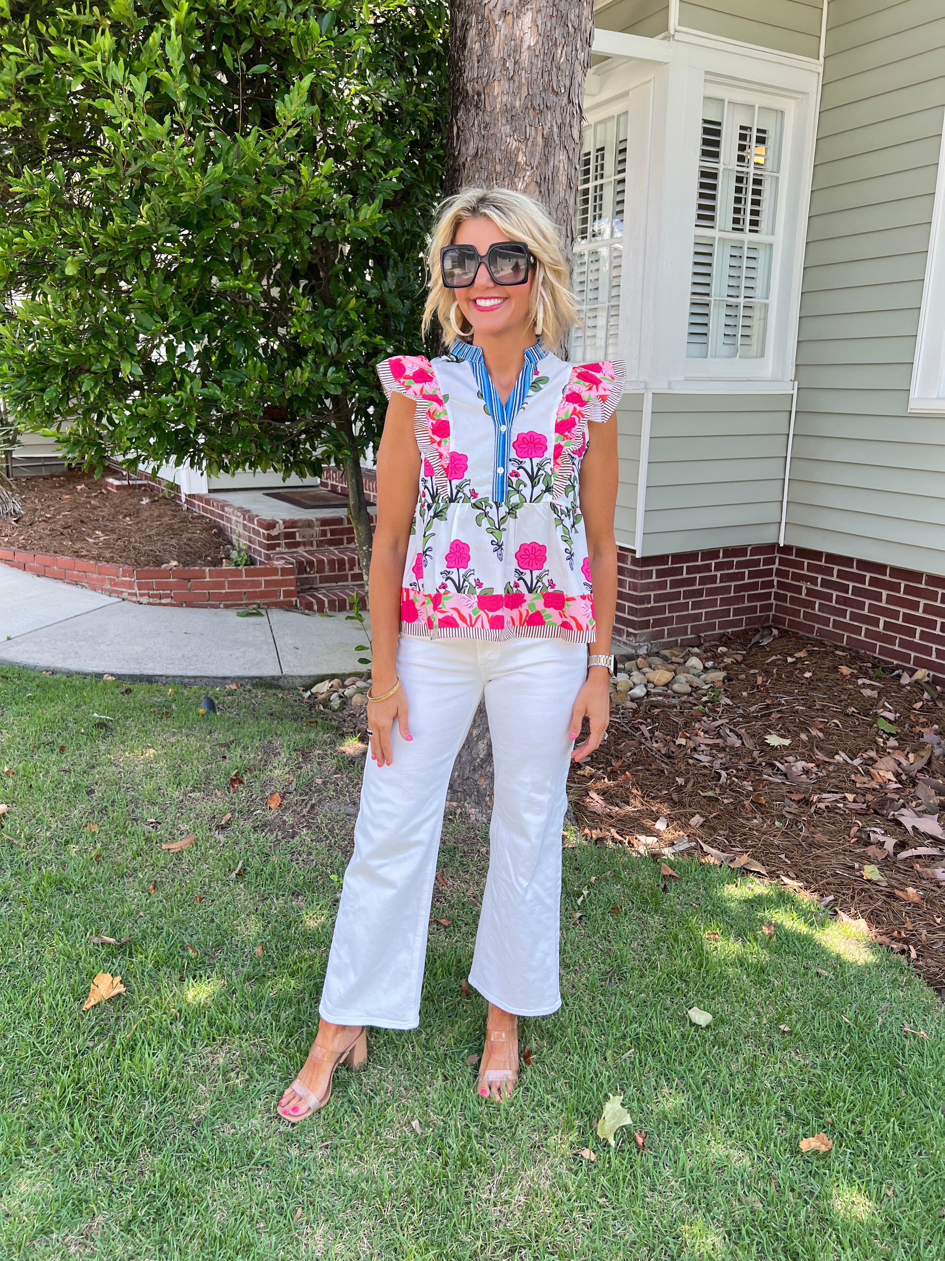 Multi-Floral Print Flutter Sleeve Top