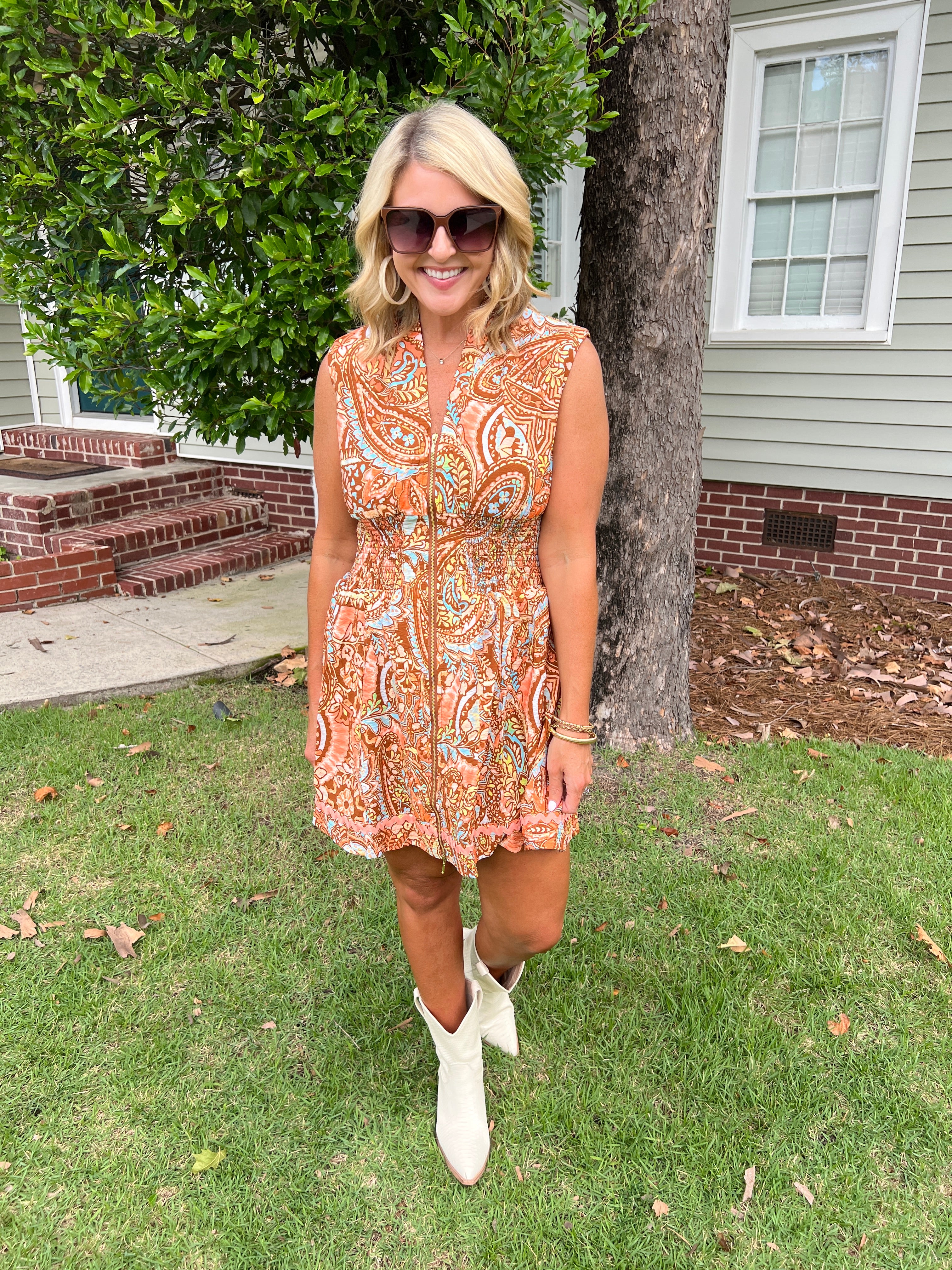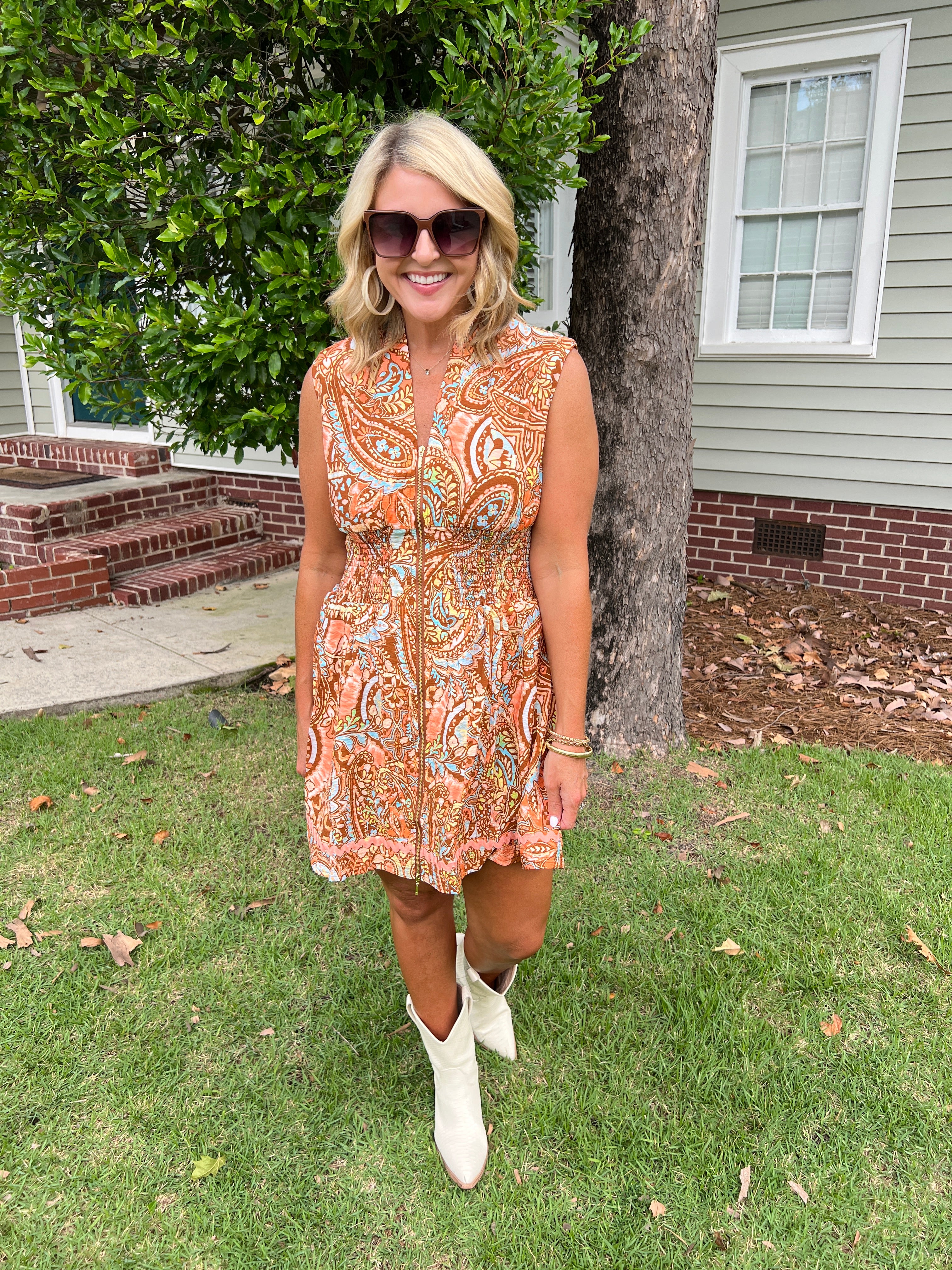 Front Zip Closure with Decorative Trim Dress