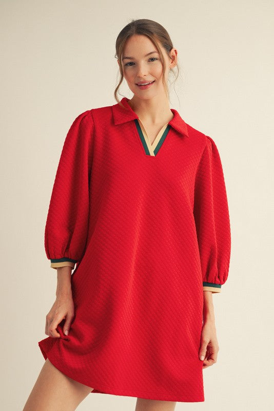 3/4 Sleeves Textured Casual Dress