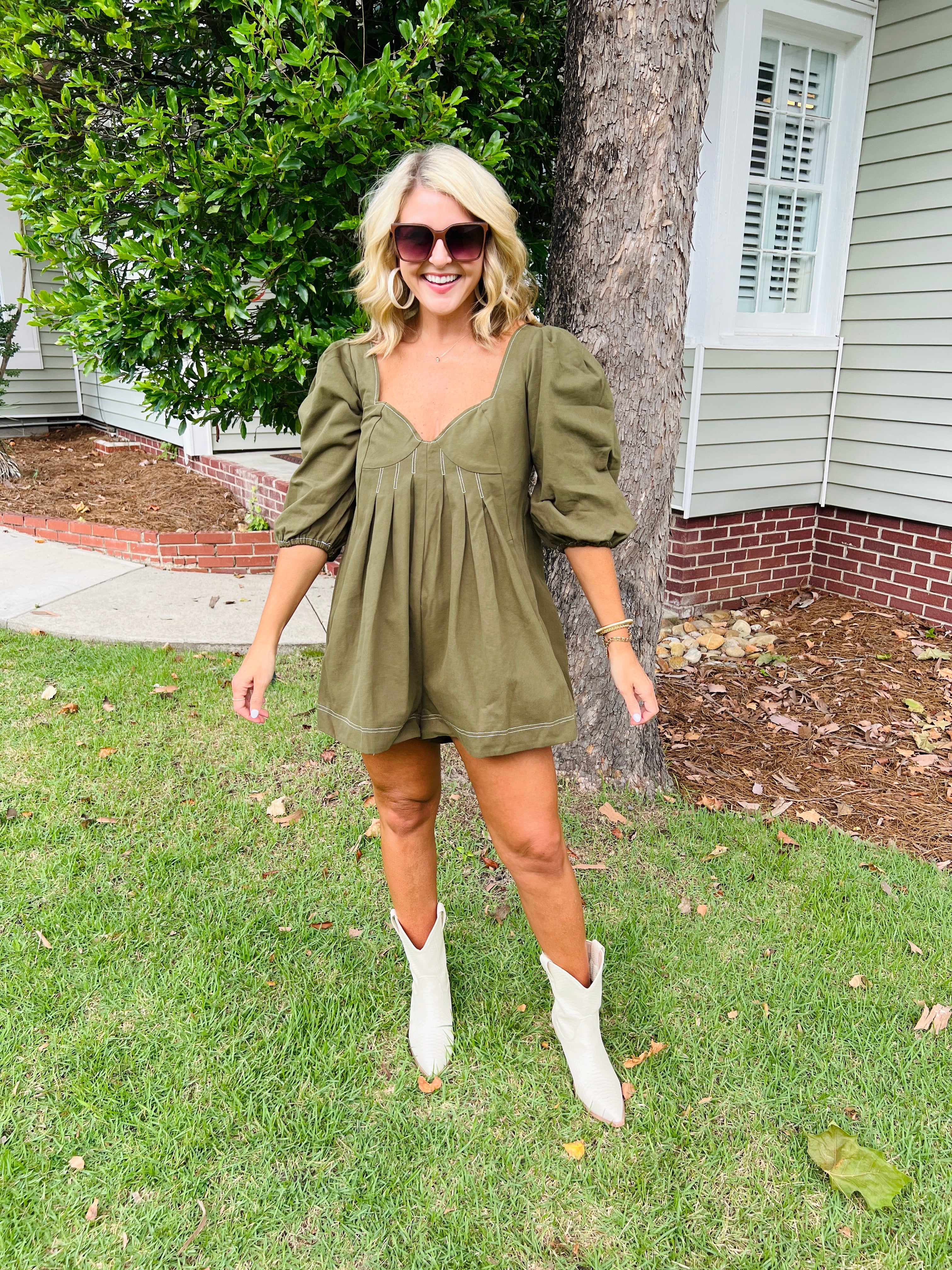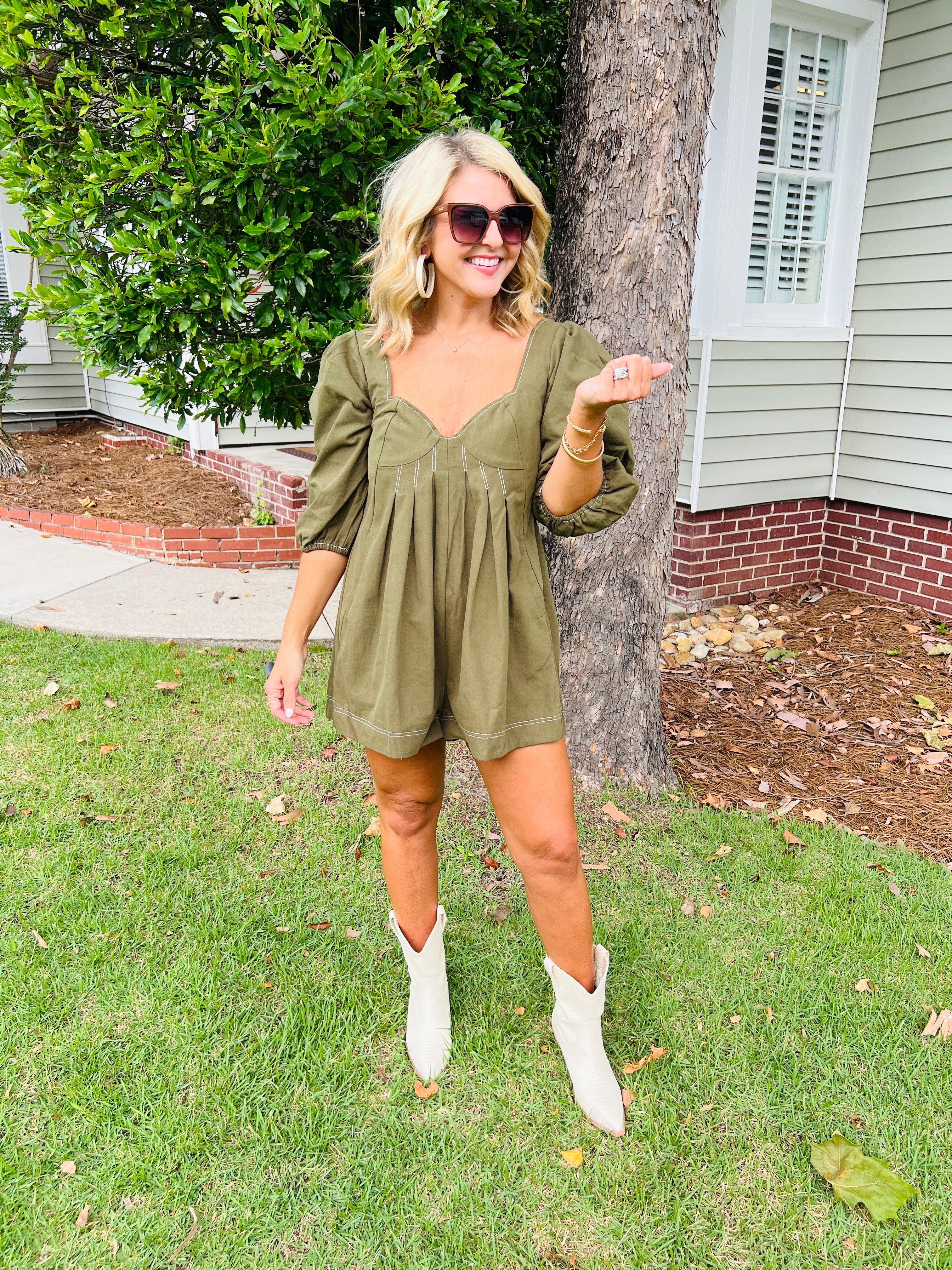 Olive Green Puff Sleeve Romper