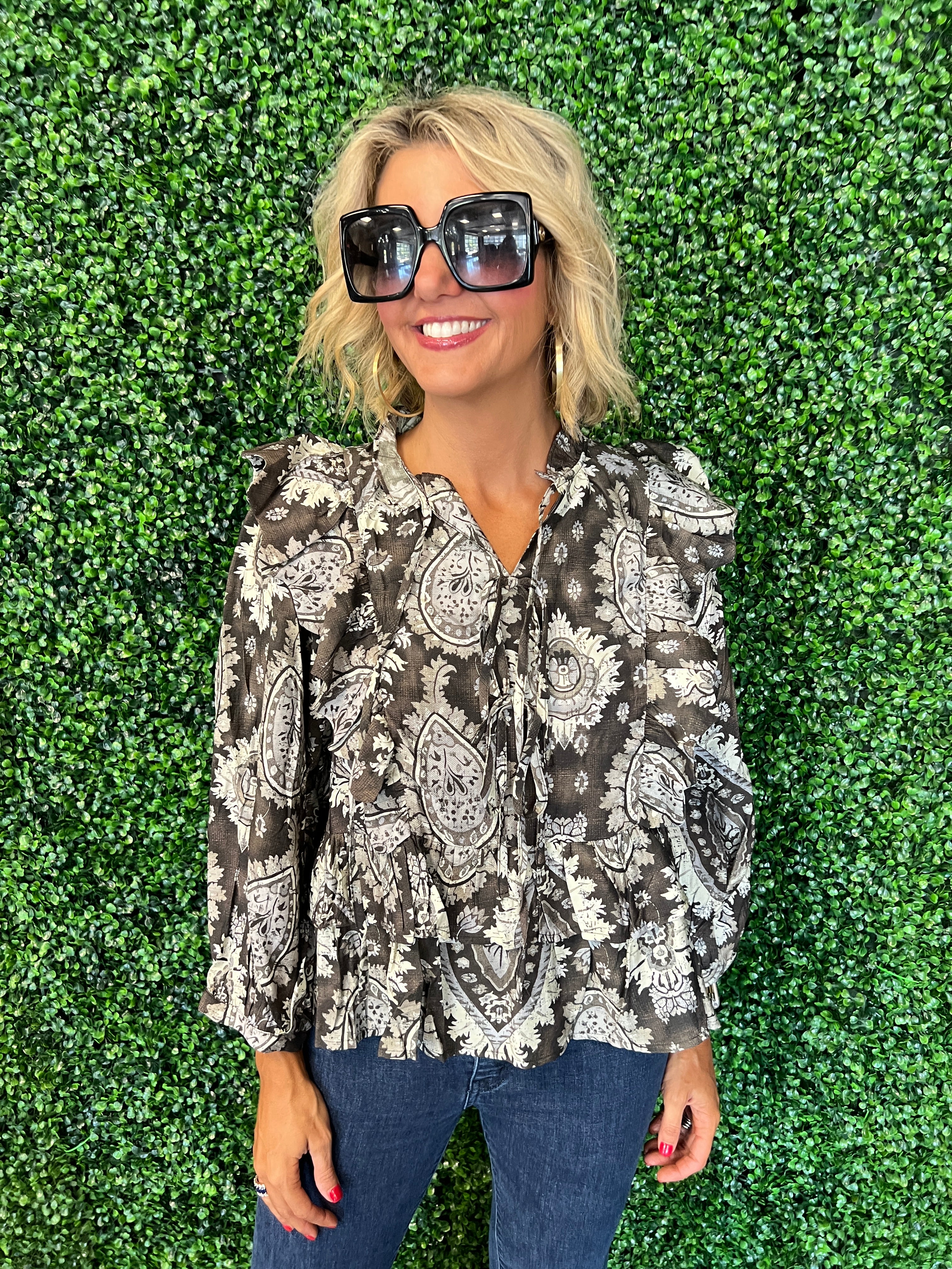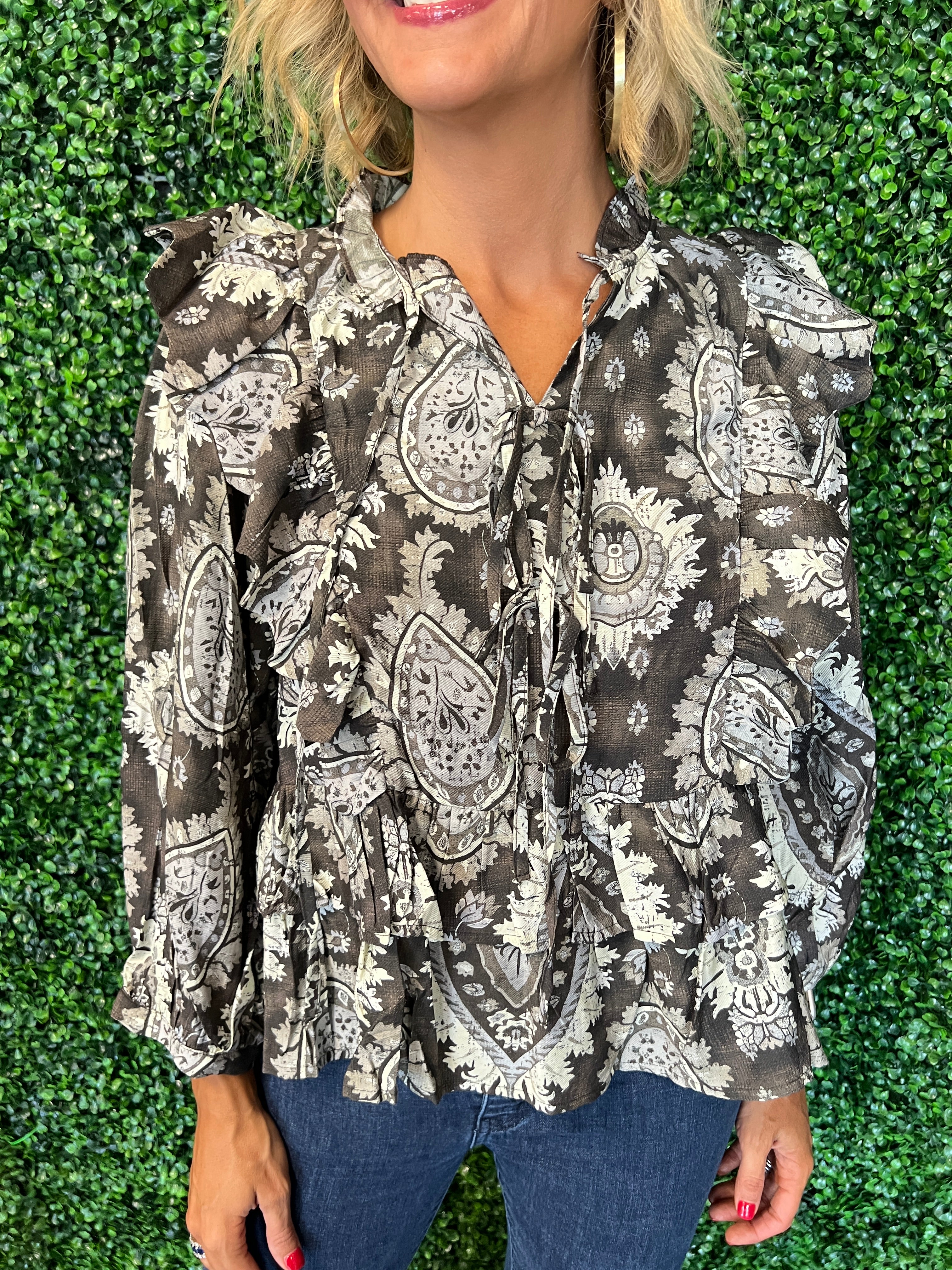 Vintage Paisley Tiered Ruffled Blouse