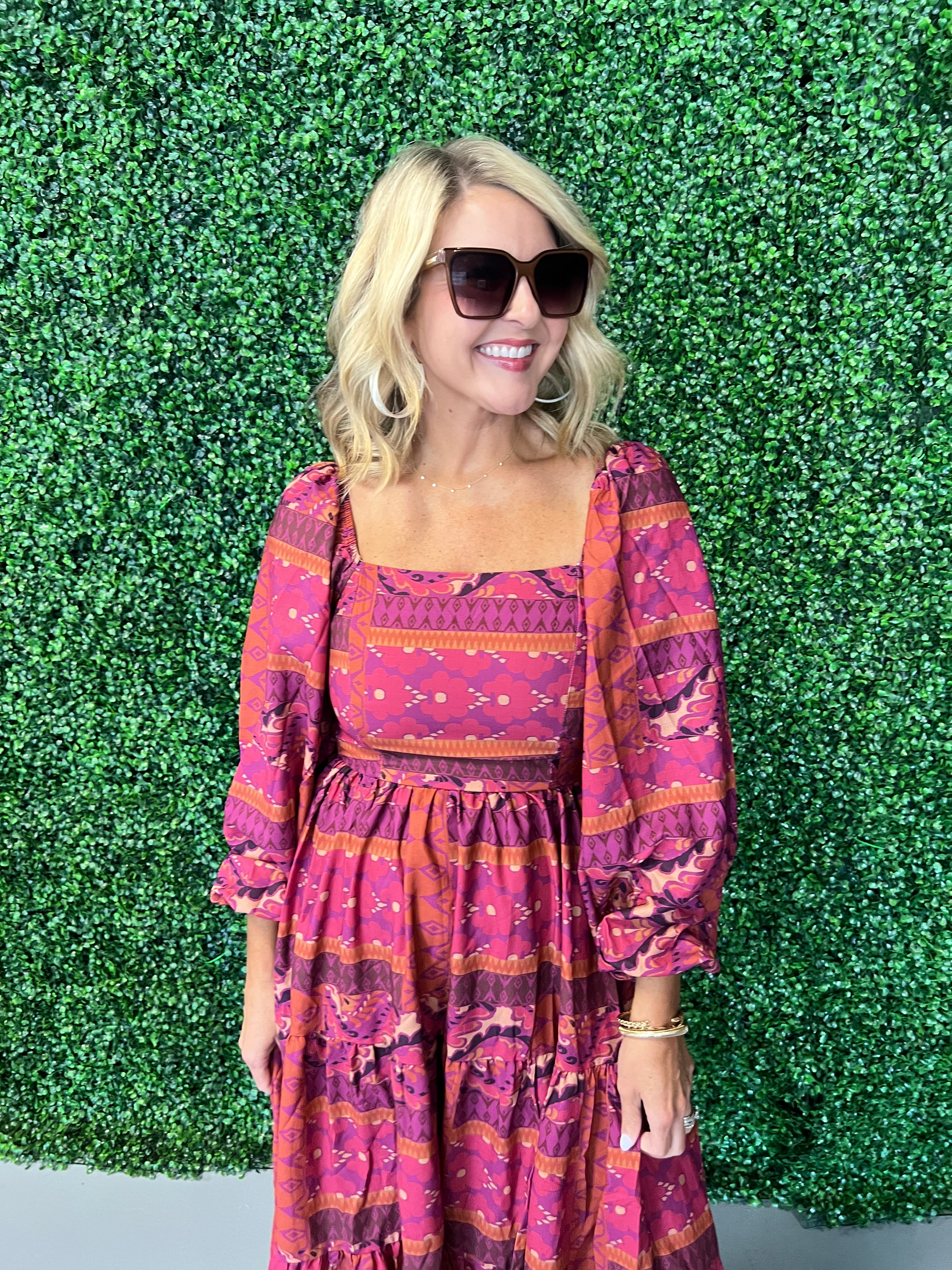 Magenta Abstract Midi Dress