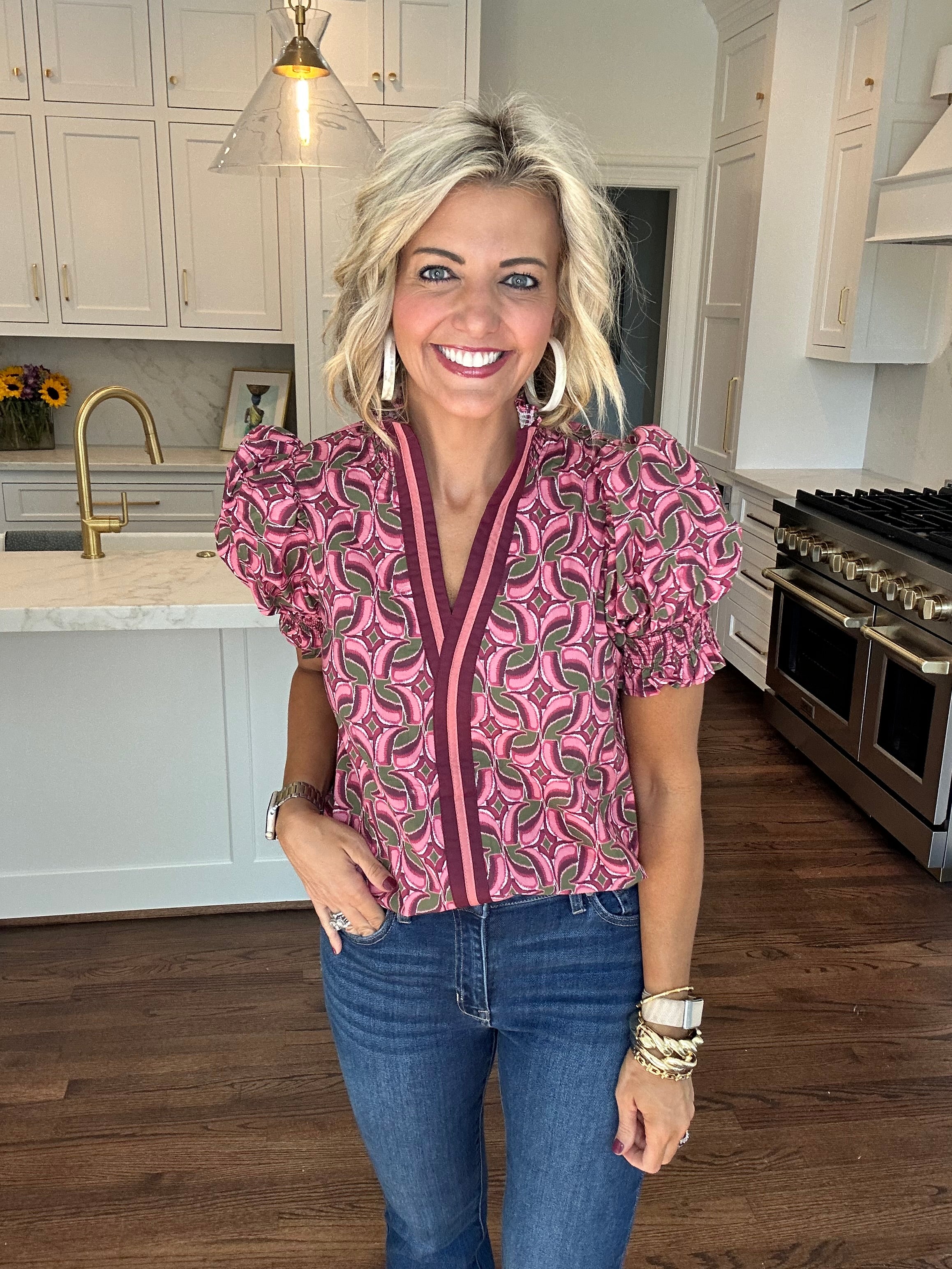 Elevate your style with the Abstract Pattern Puff Sleeve Top, designed to add a modern edge to any outfit. The unique abstract print paired with dramatic puff sleeves creates a standout look perfect for both casual days and special occasions. Crafted for comfort and visual appeal, this top effortlessly enhances your wardrobe with a trendy silhouette that draws attention and expresses individuality.