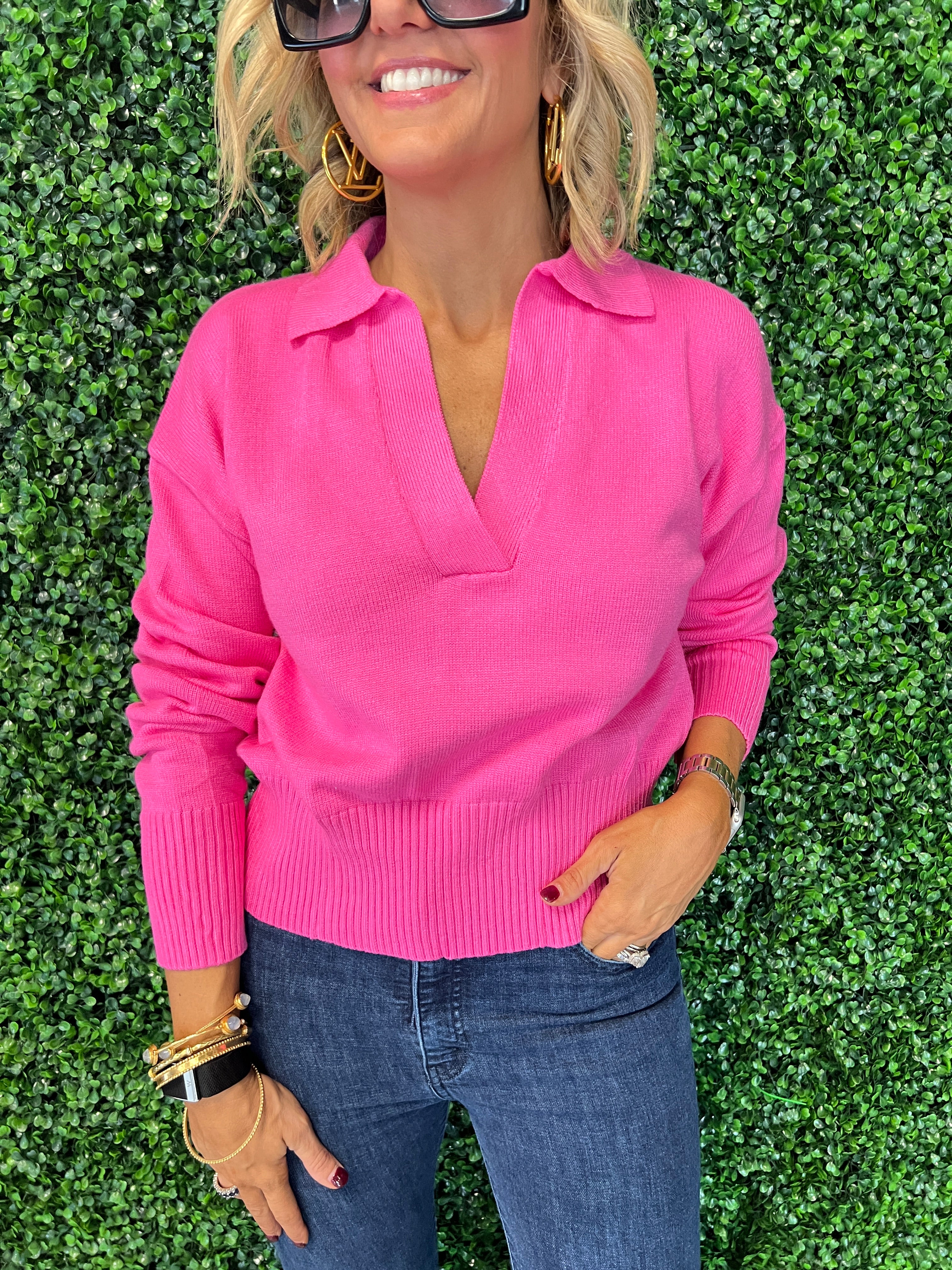 Elevate your wardrobe with this Pink V-Neck Knit Sweater, designed for both comfort and style. The soft knit fabric offers a cozy feel, while the flattering V-neckline adds a touch of elegance. Perfect for layering or wearing on its own, this sweater effortlessly blends casual charm with a polished look, making it a versatile addition to any outfit.