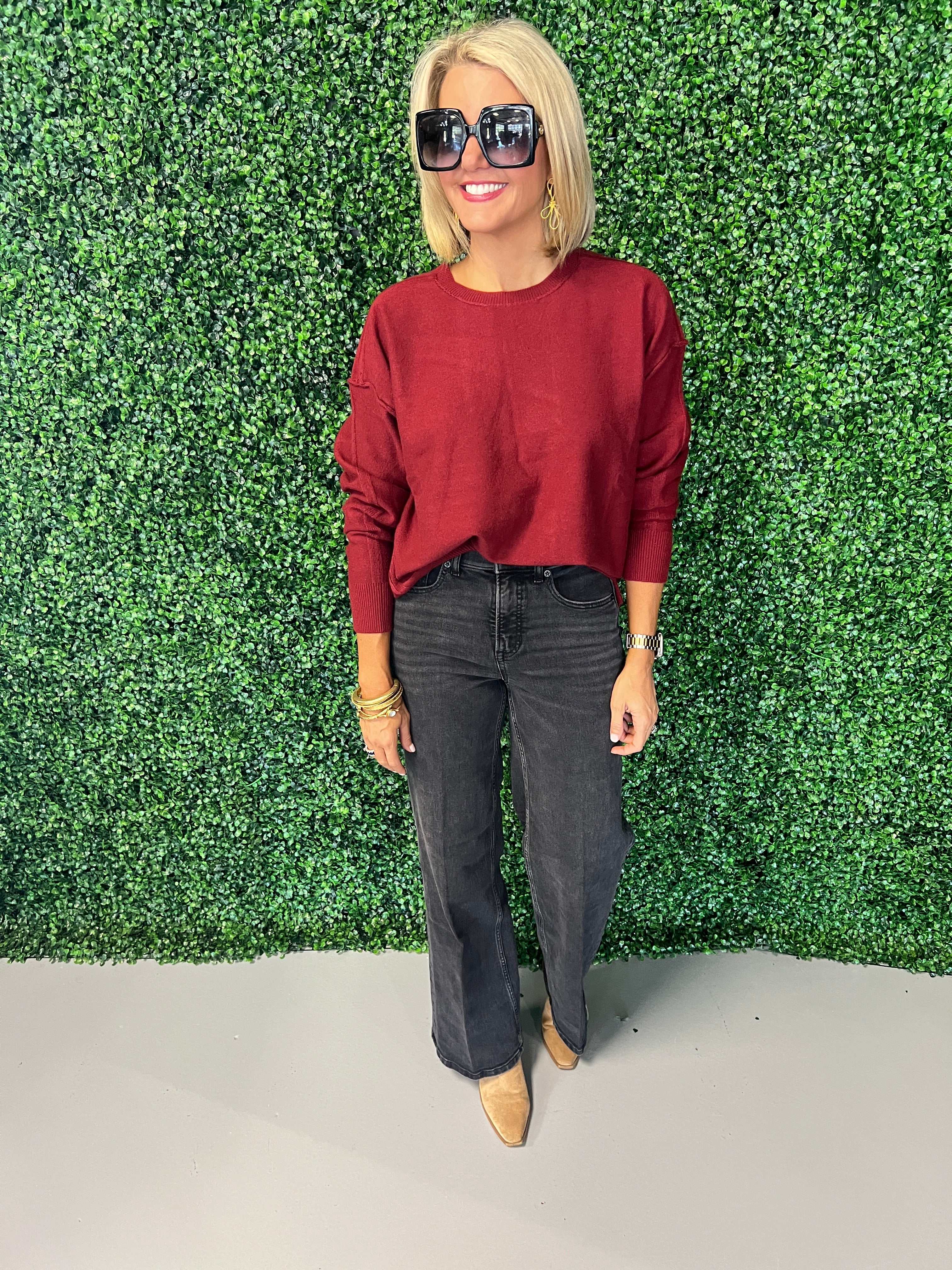 Experience comfort and style with this Solid Long Sleeve Sweater. Crafted for a flattering fit, its soft fabric keeps you cozy all day while the versatile solid color pairs effortlessly with any outfit. Perfect for layering or wearing on its own, this sweater is your go-to piece for both casual and polished looks. Elevate your wardrobe with a timeless essential designed to suit every season.